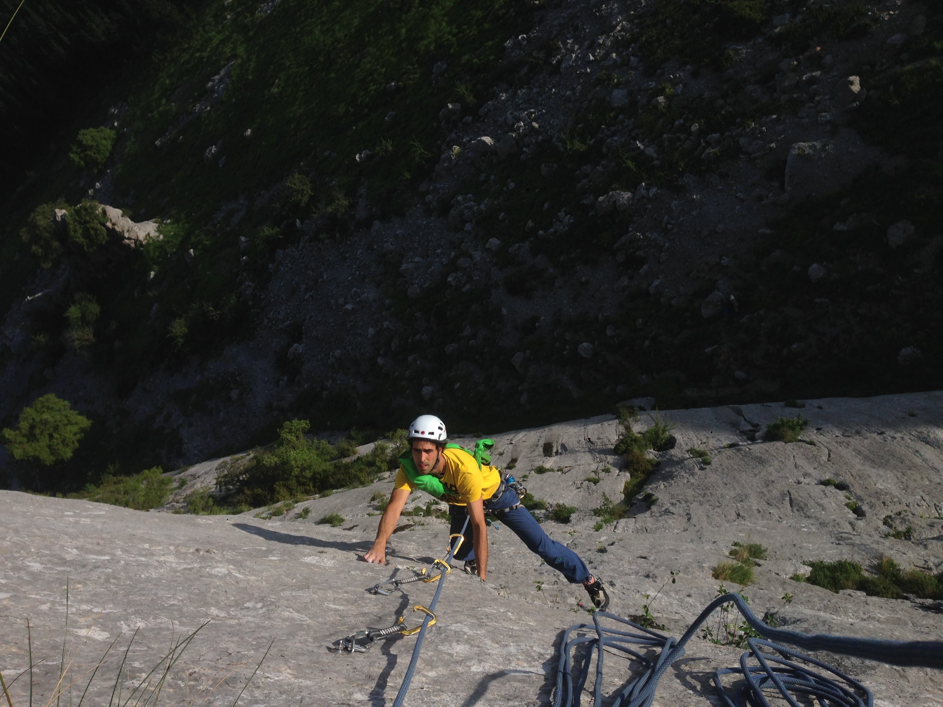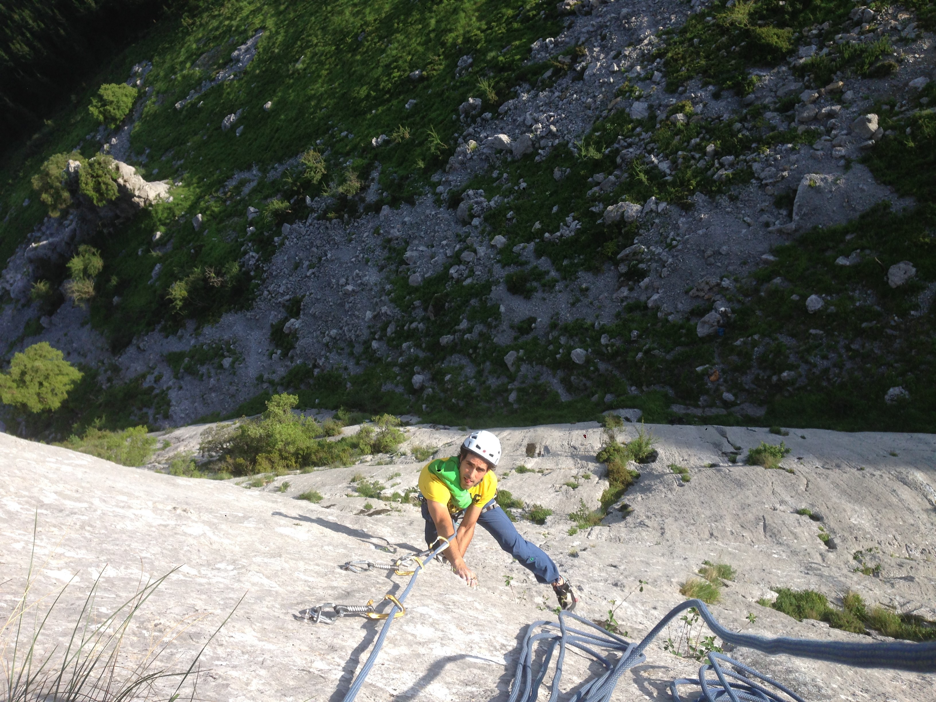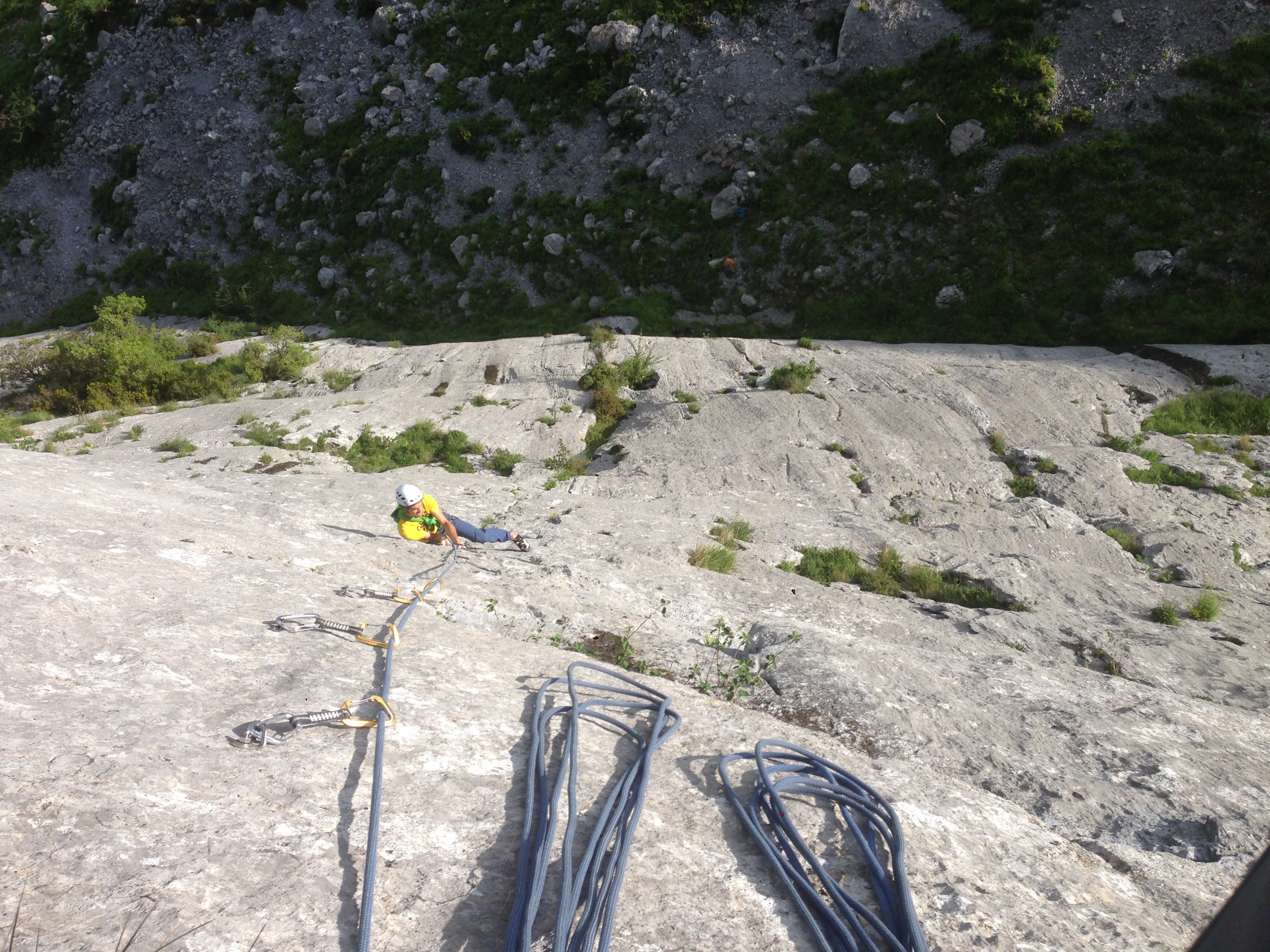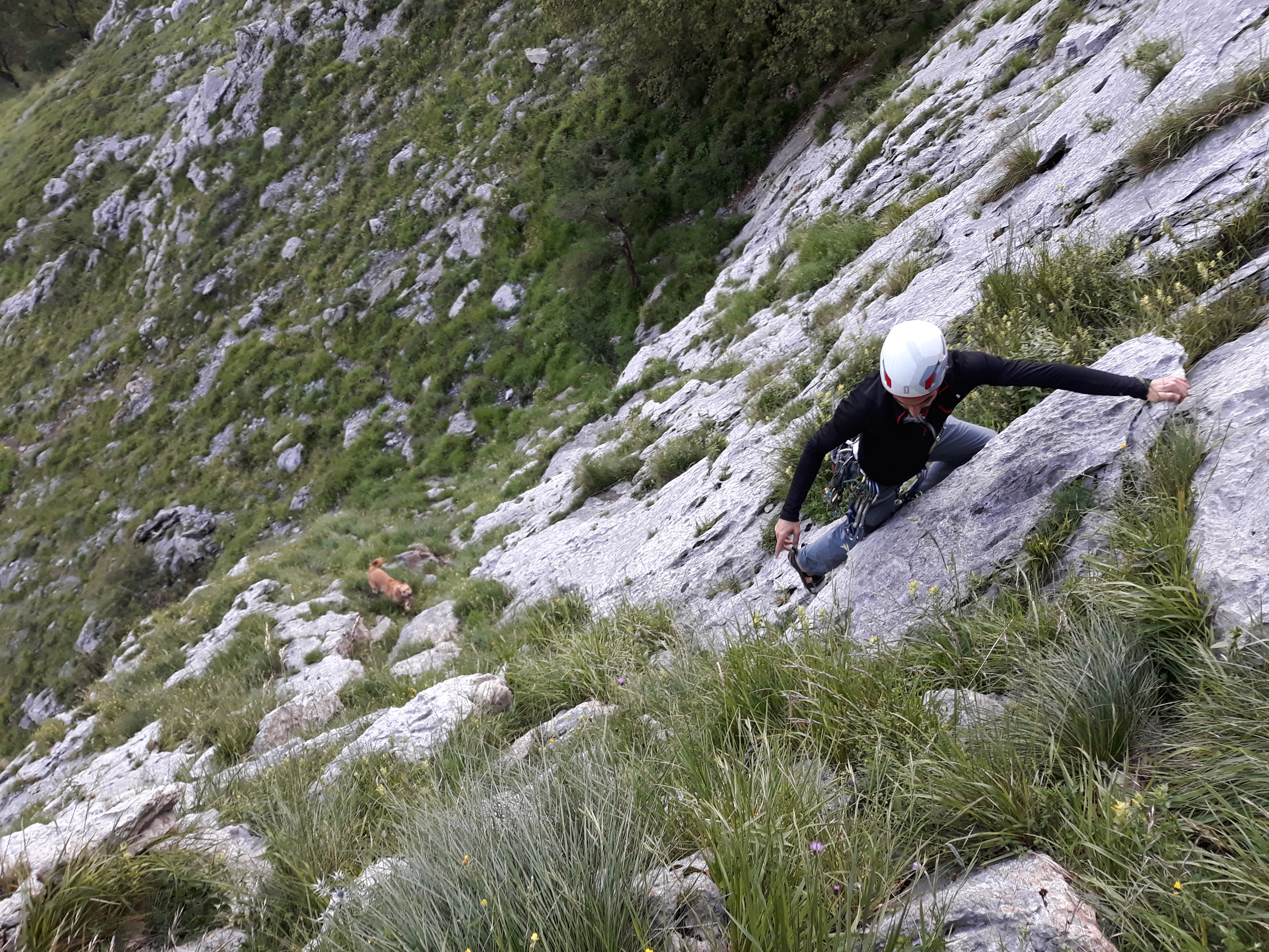 Material necesario: Vía equipada con parabolts y clavos antiguos. Aleja en las zonas fáciles. Juego de fisureros para complementar.