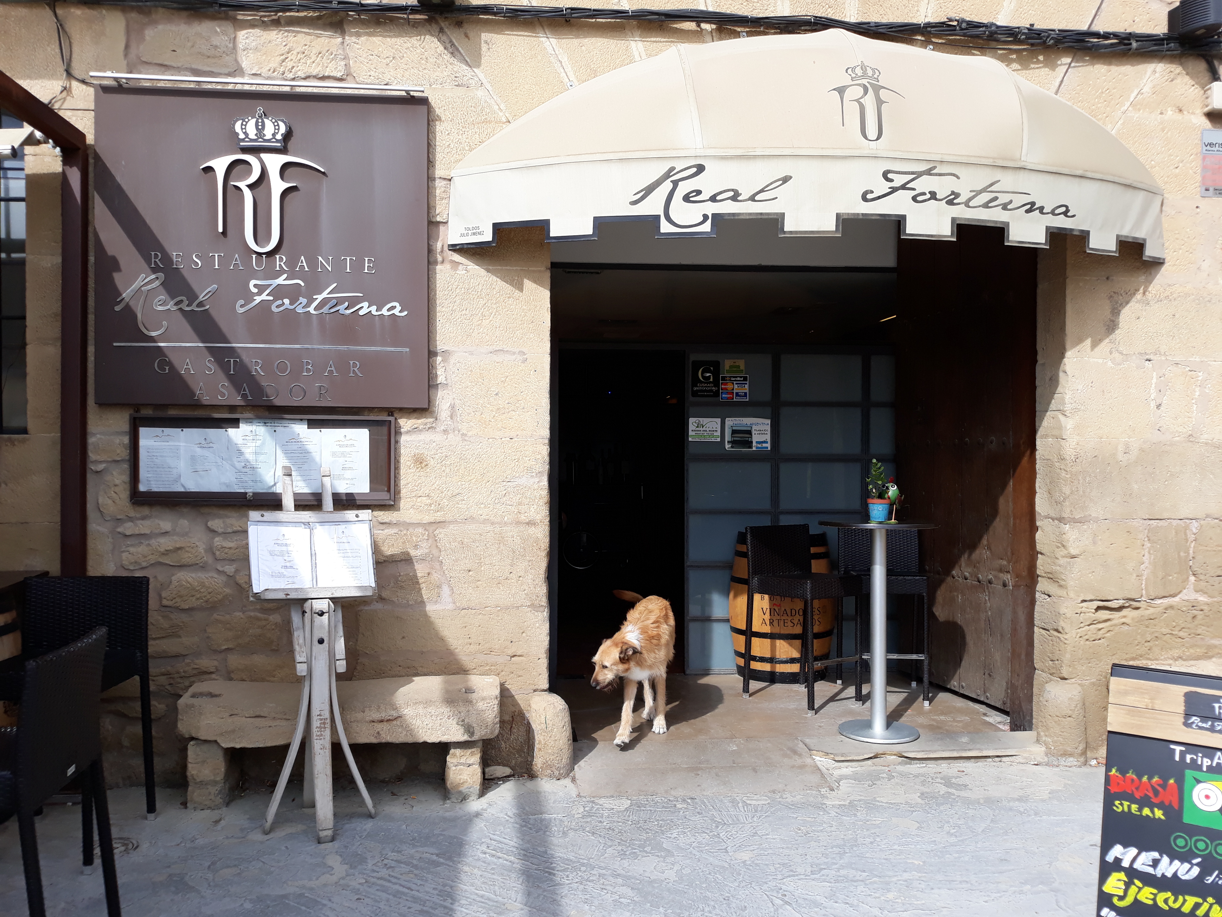 Este restaurante es «amigo de los perros», nos dejaron meter a Rast en el patio interior y le sacaron hueso de chuleta así que todos contentos !