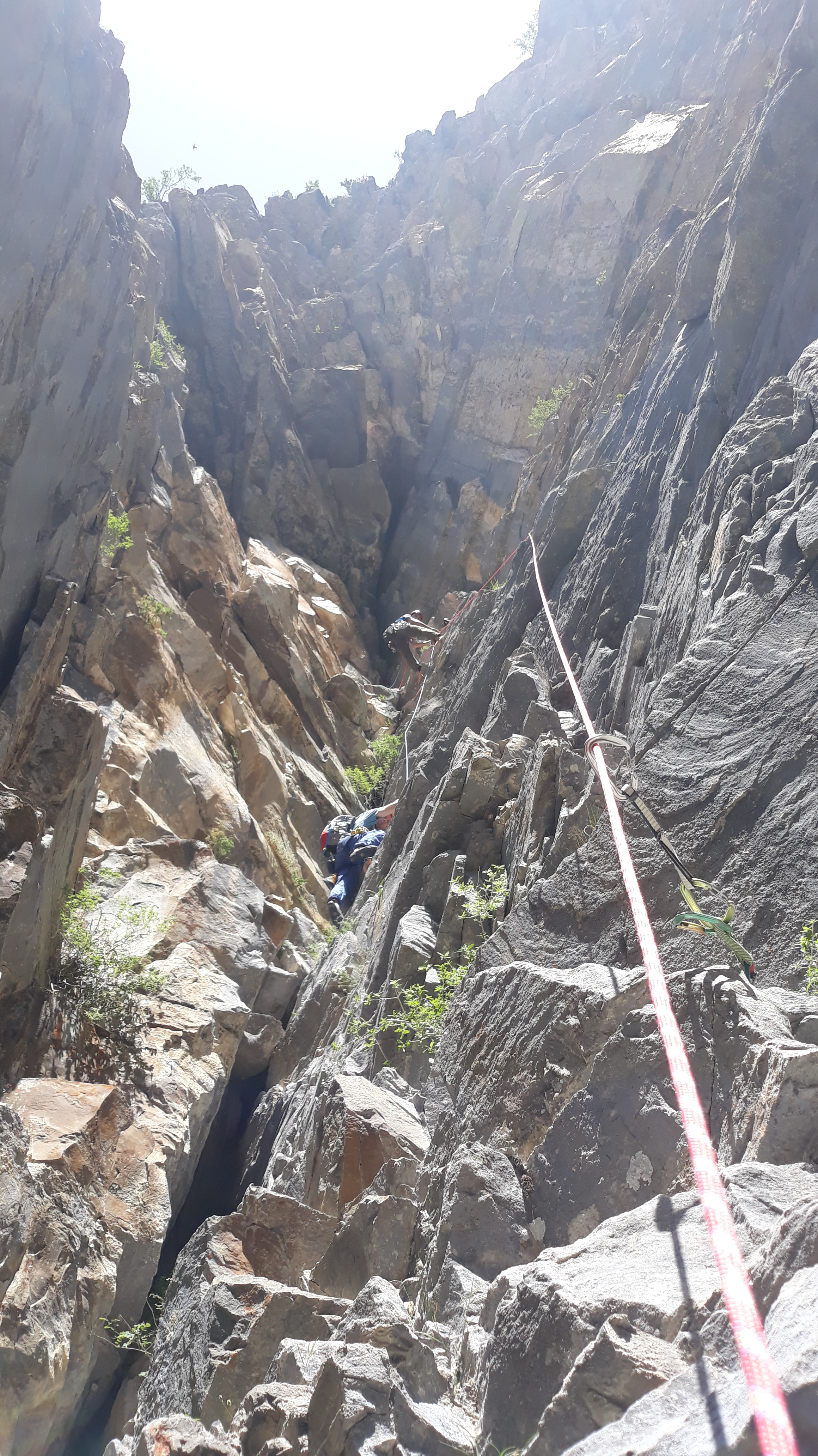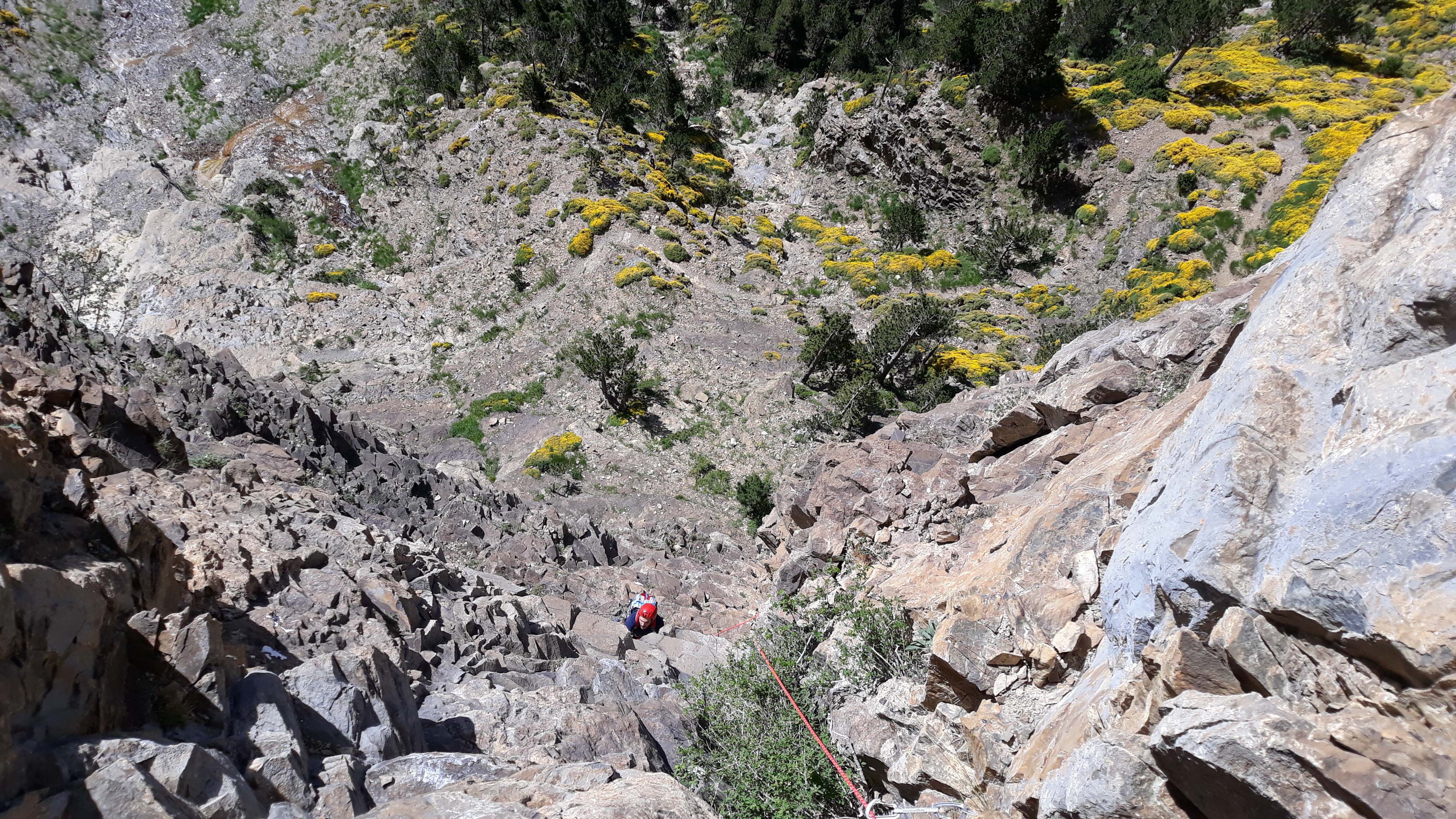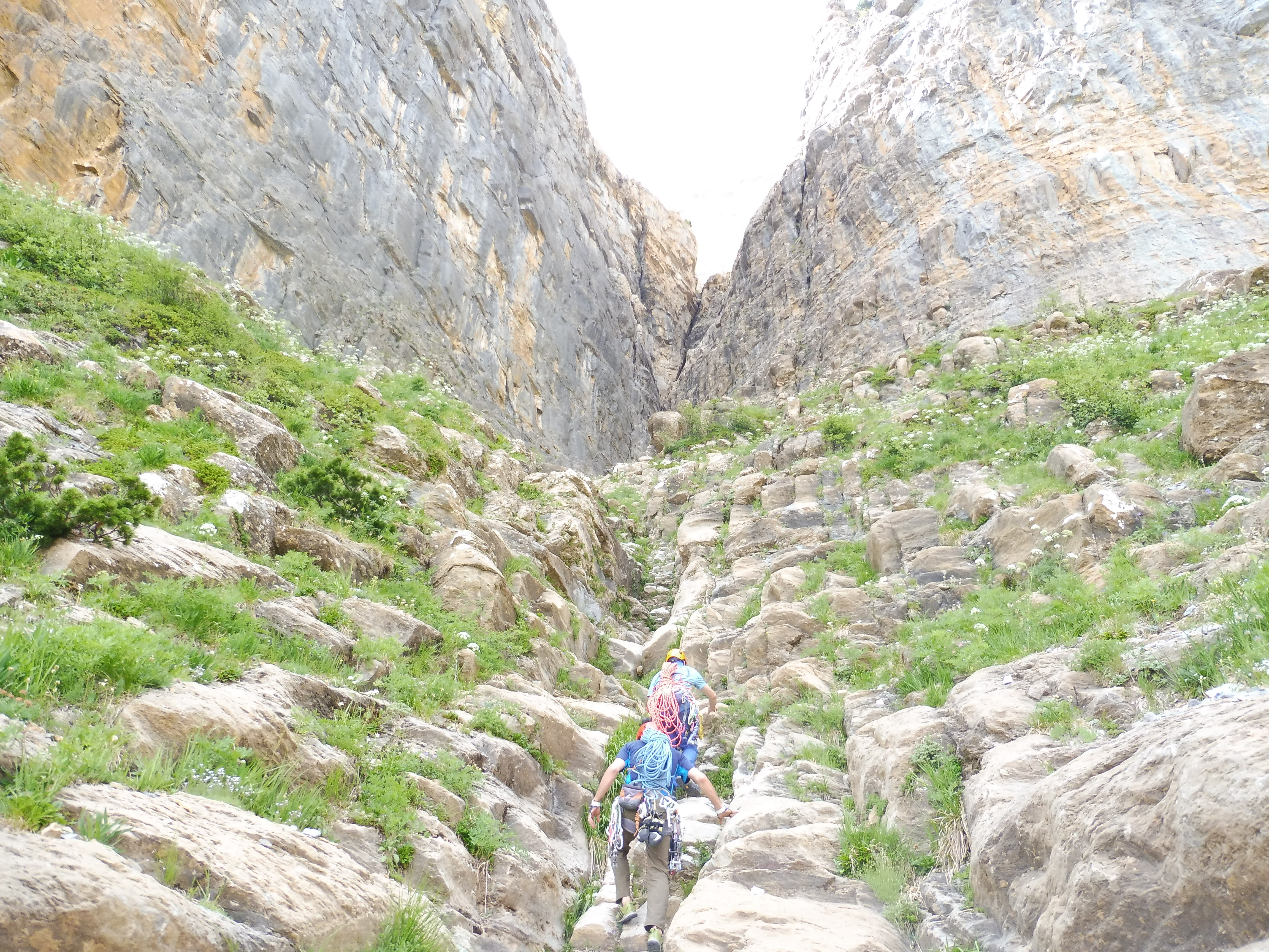 Trepando hacia la vía de escape, que se encuentra en el canalón del jardín. La vía son 3 largos y tiene algún parabolt: