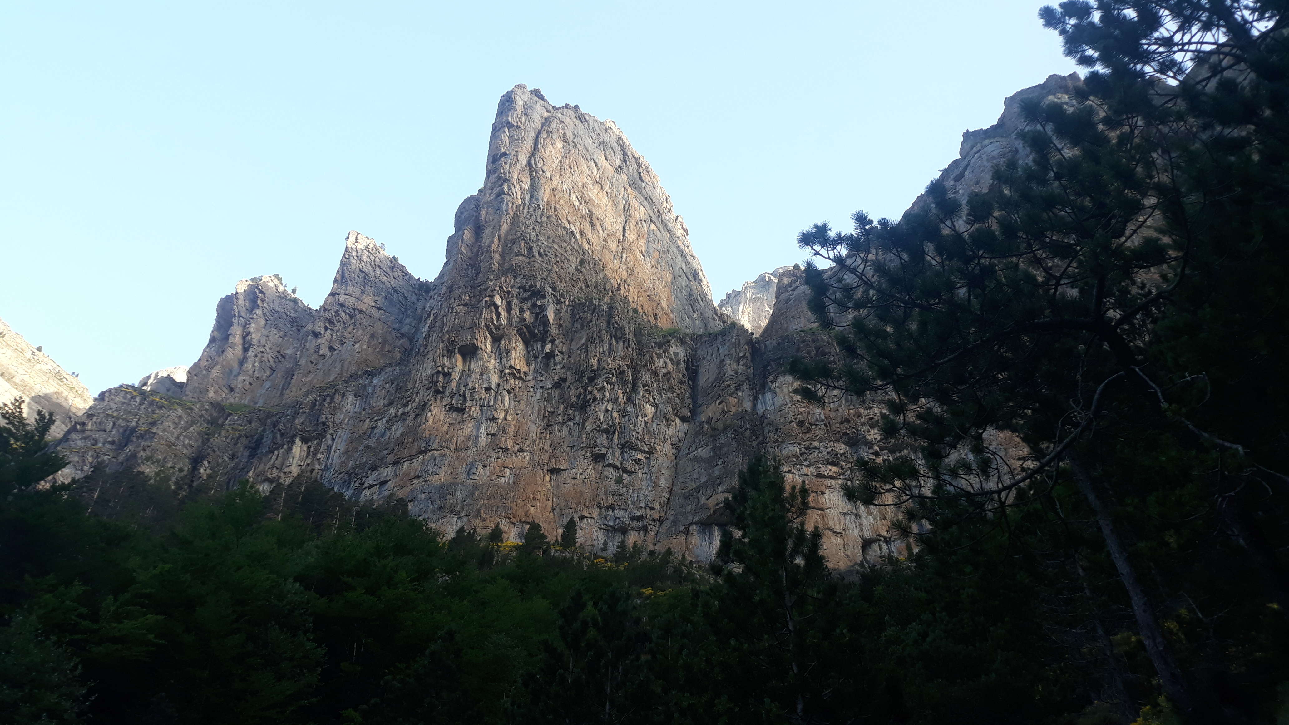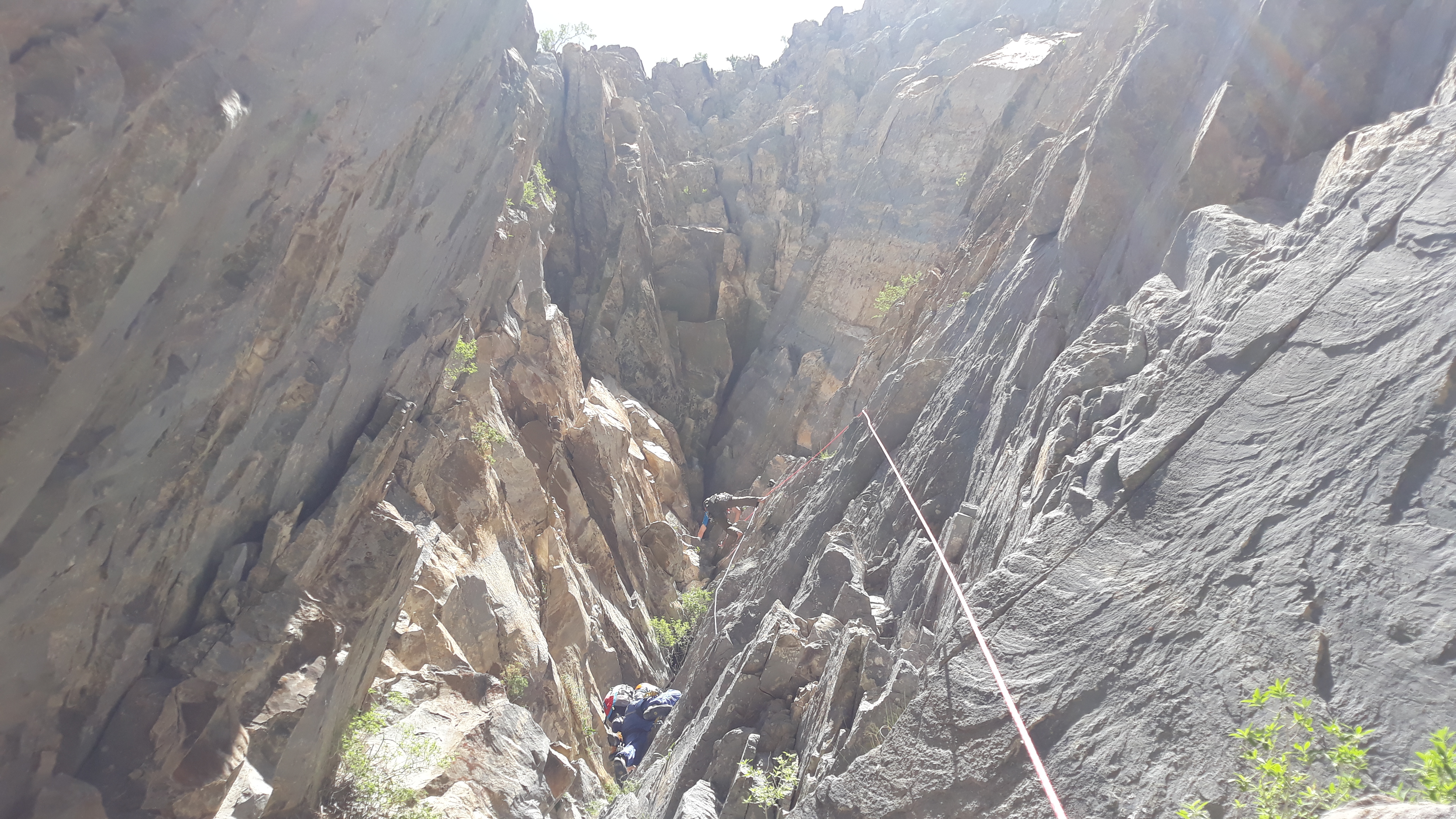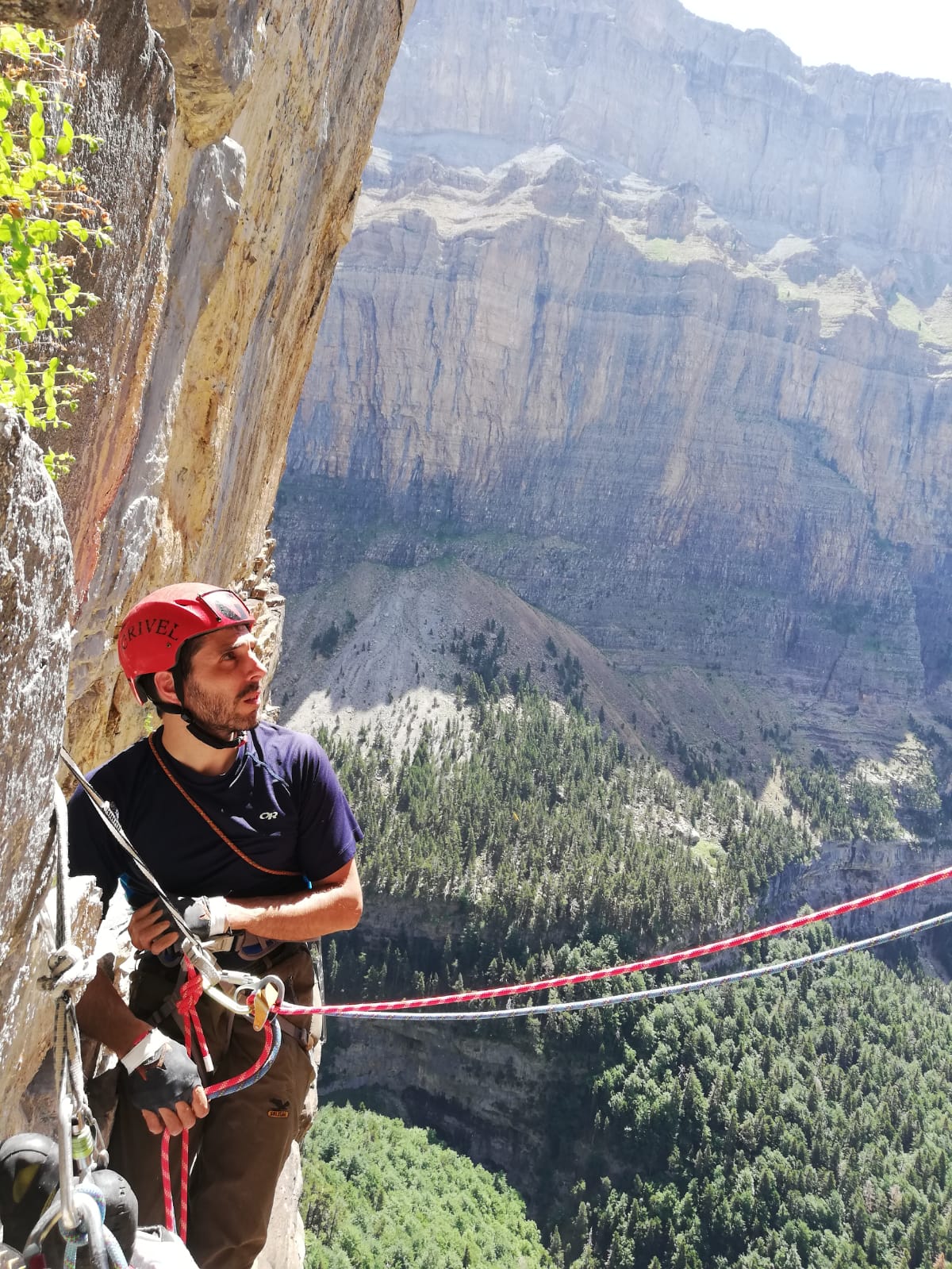 Trepando hacia la vía de escape, que se encuentra en el canalón del jardín. La vía son 3 largos y tiene algún parabolt: