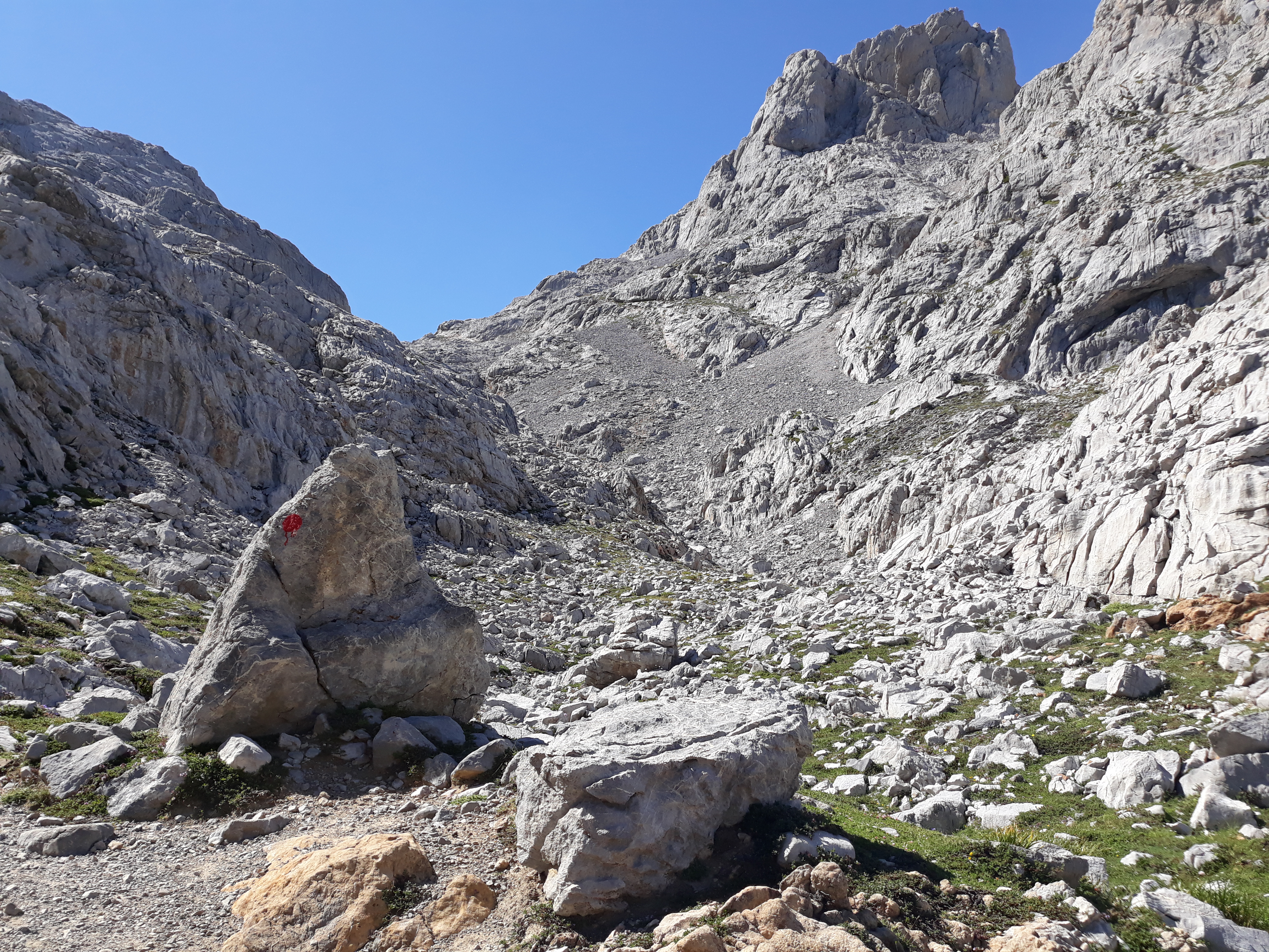 Cuando llegamos a esta roca, torcemos a la izquierda en lugar de meternos por la pedrera: