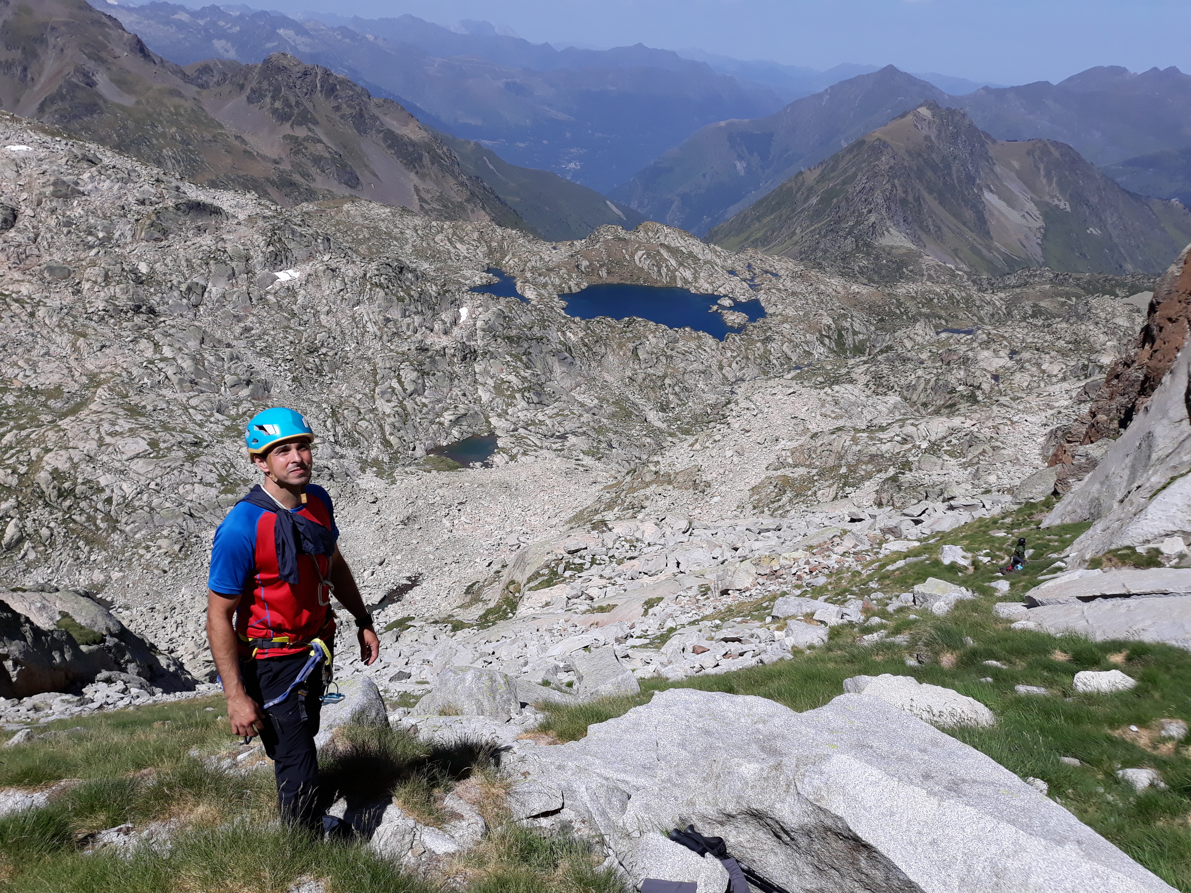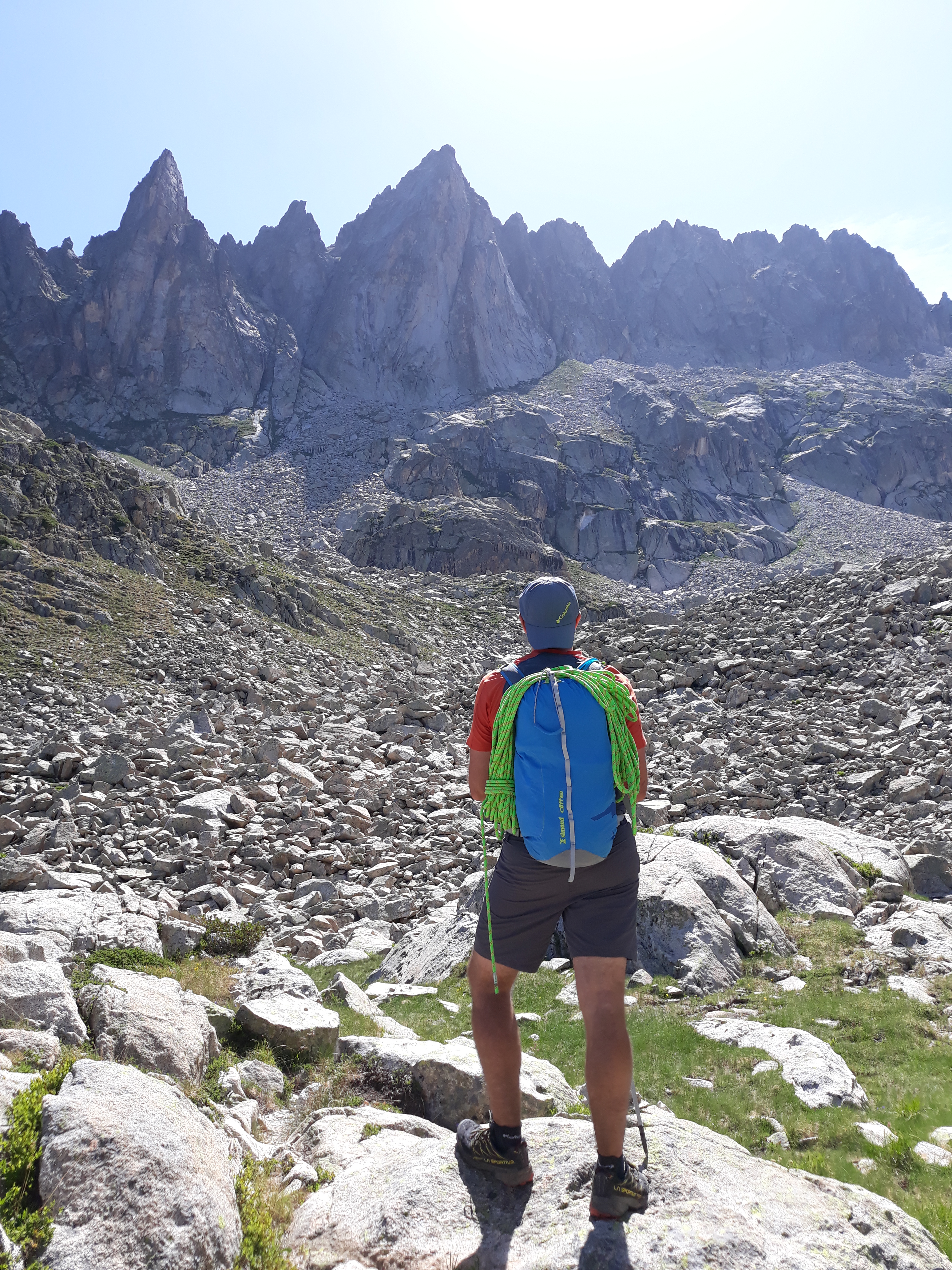 A medida que nos acercamos se identifican las siluetas del Petit y del Gran Pic, ya solo nos quedan la caótica pedrera para llegar a pie de vía. Hay un sendero marcado.