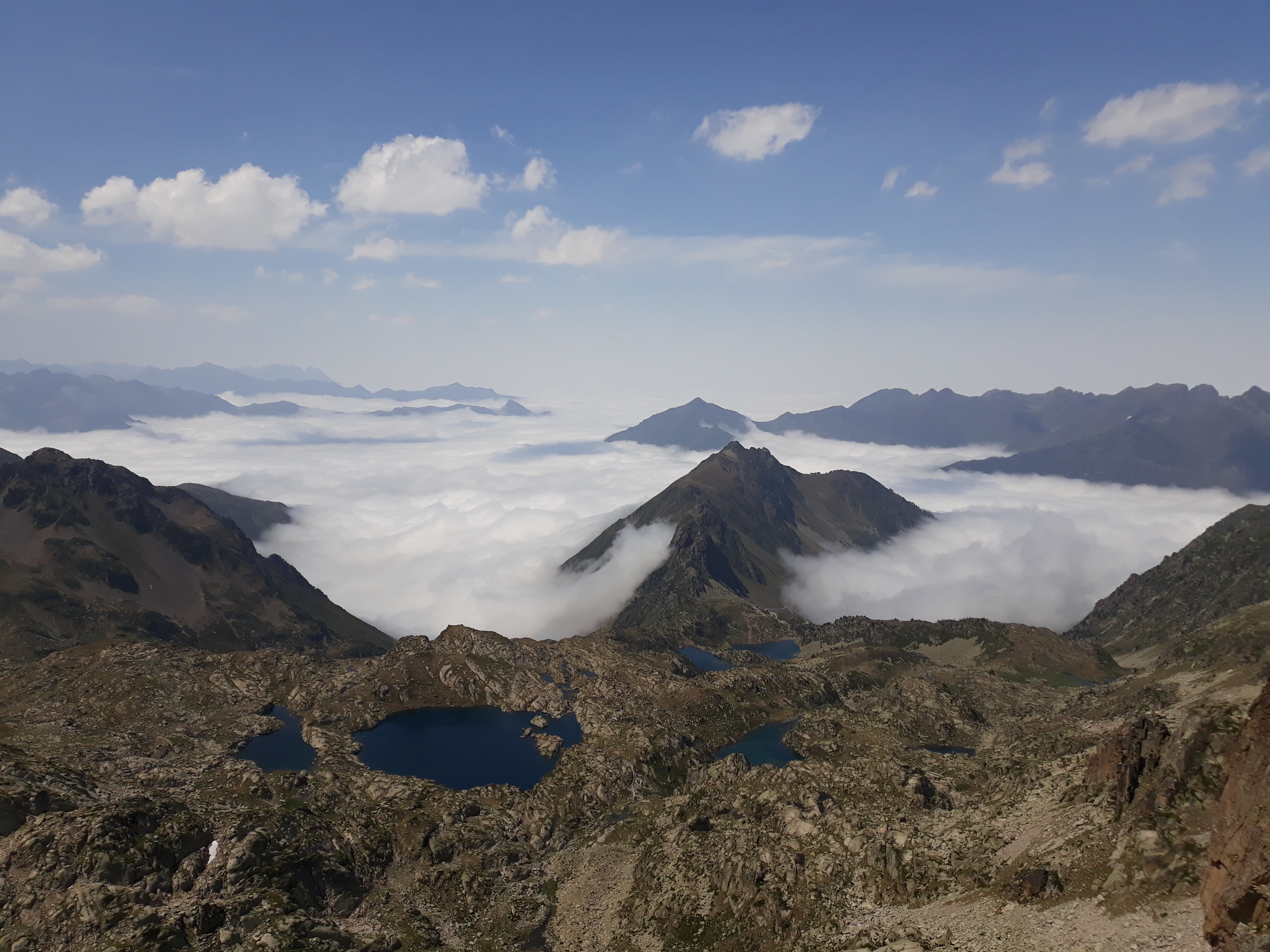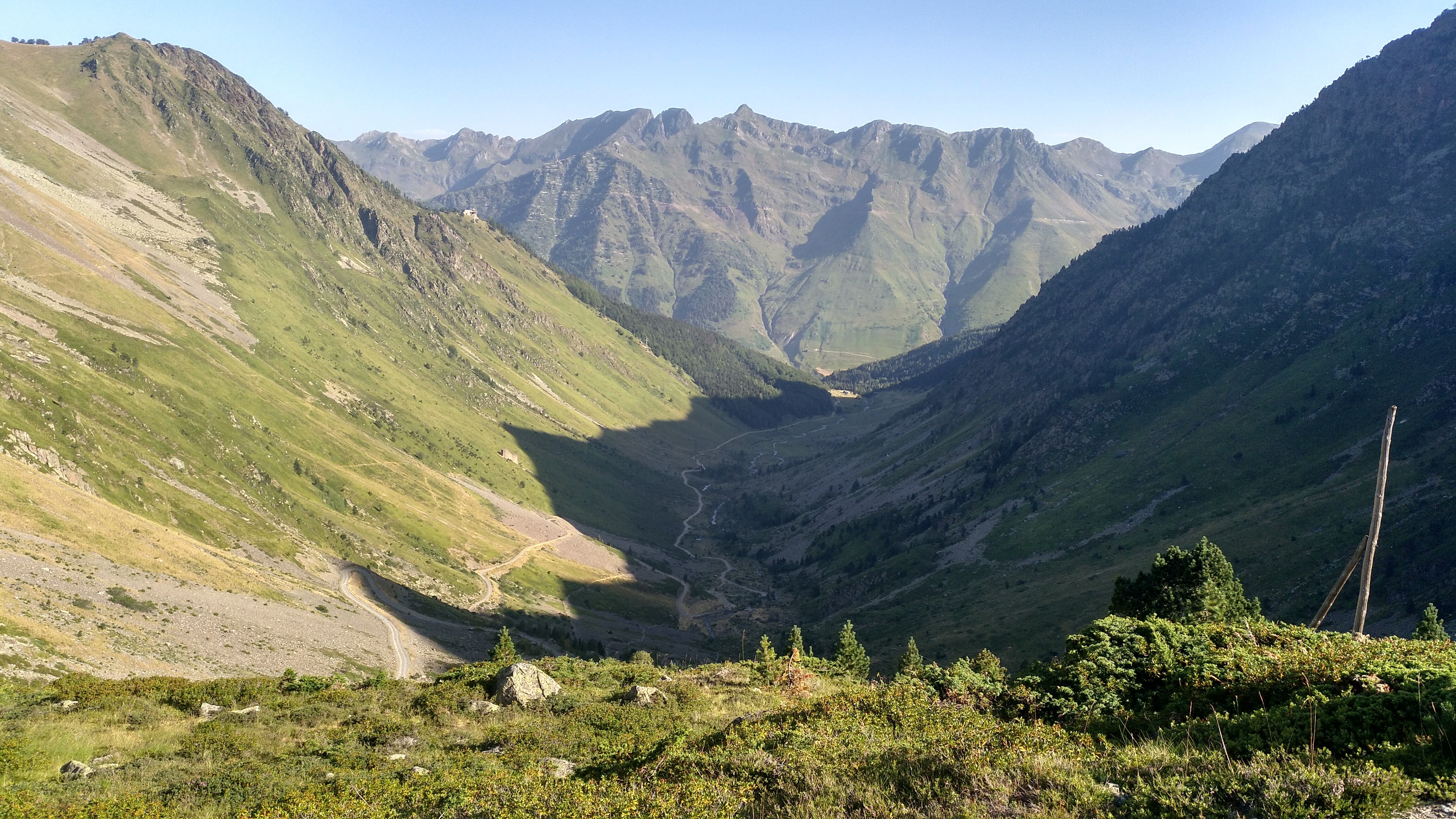 En mitad de la foto, el Neouville, a su izquierda están el Gran Pic D´Espade y el Petit Pic D´Espade, aunque sus esbeltas siluetas no se verán recortadas hasta que nos acerquemos.