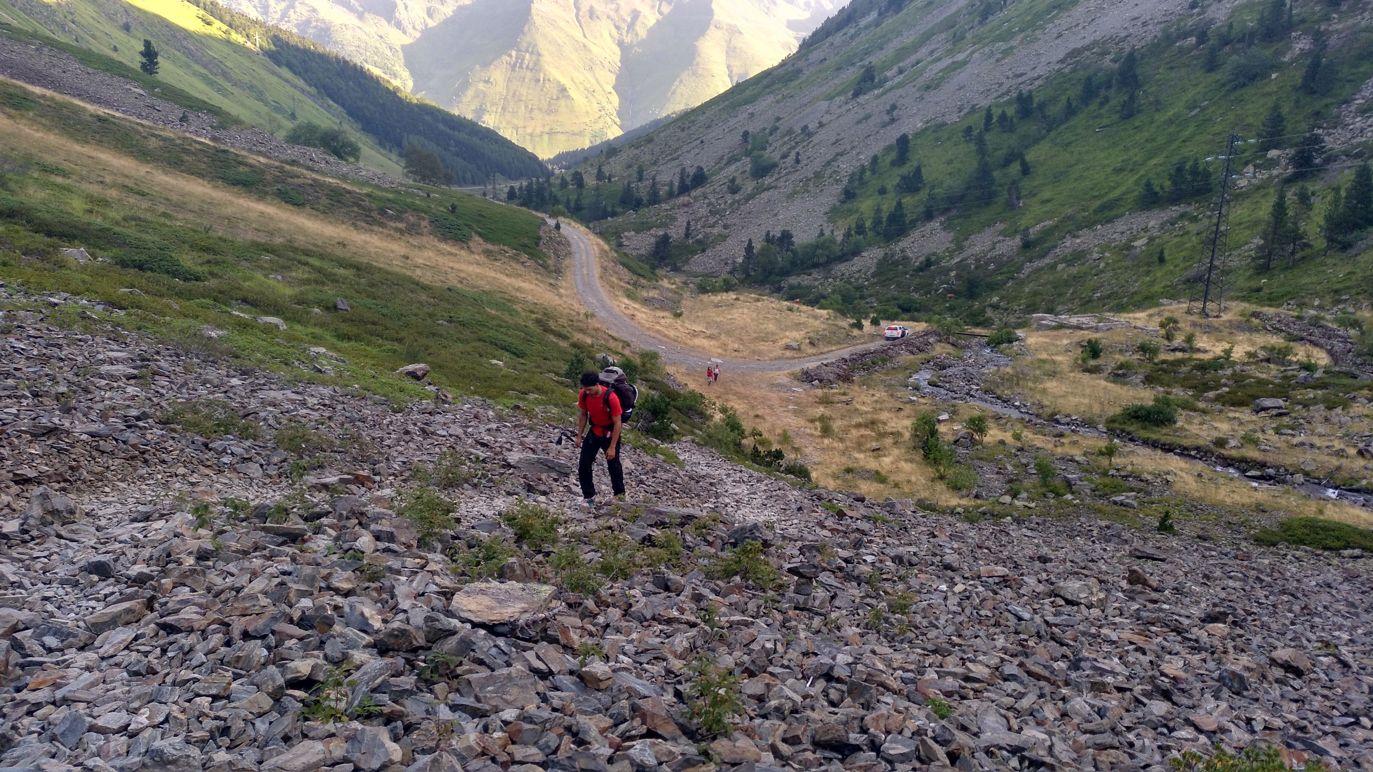 Aproximación: Pasando el pueblo de Bageres, a 1,3 Km hay que tomar un desvío a la derecha (Chezz Luissette , Plateau de Lienz). Carretera asfaltada hasta este centro con restaurante y alquiler de caballos, donde hay una mini estación de esquí. Cuando acaba el asfalto seguir por la pista que no está mal, pasando por unas instalaciones mineras. Aquí veremos el único indicador al Refugio de la Glere. Seguimos por esa pista casi casi hasta el final, hasta que el coche nos dice «basta». Una vez allí aparcamos en una curva que tiene un hueco para aparcar y plantar la tienda.
