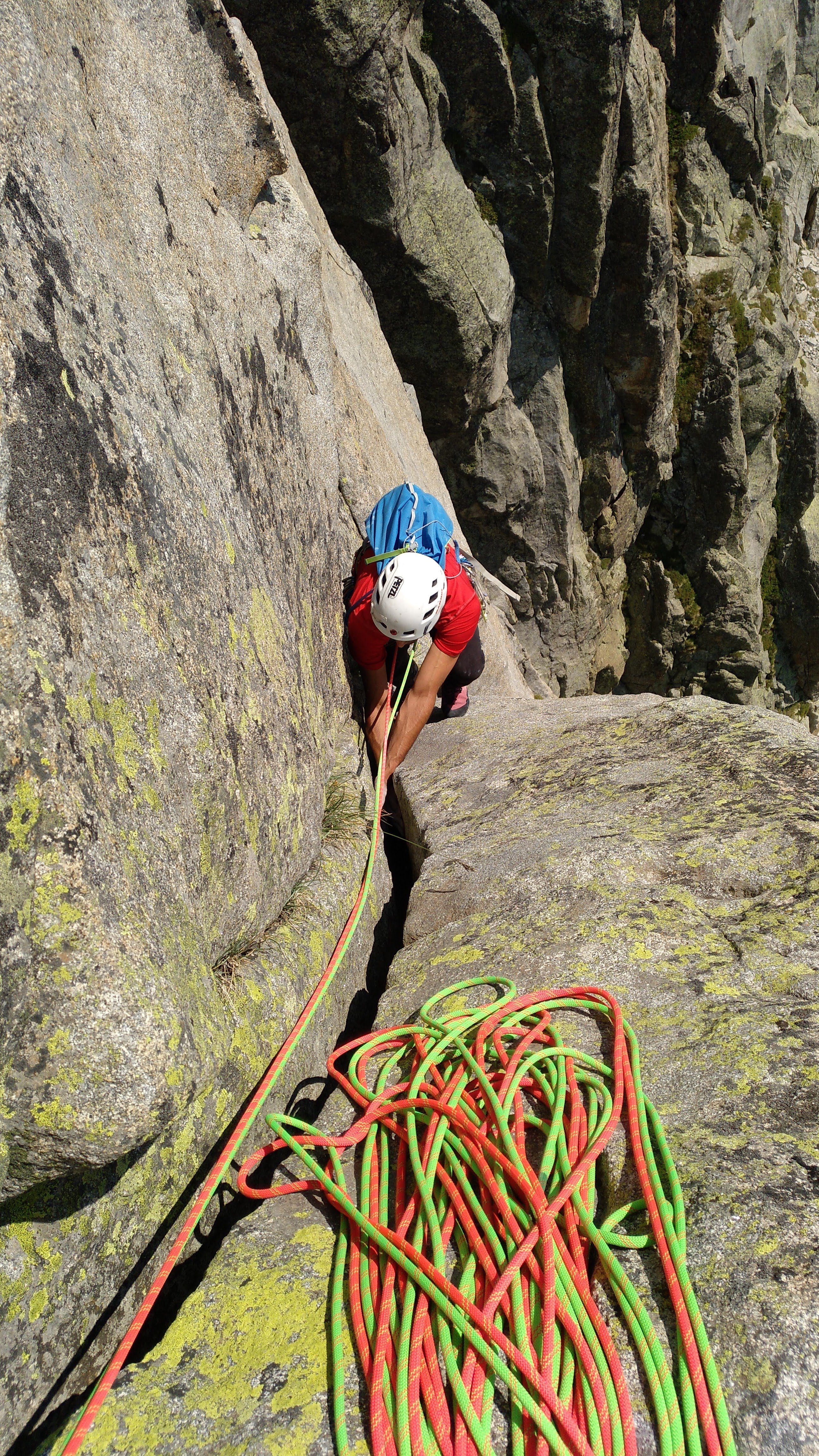 El descenso en rappel por la misma vía, con cuidado de los enganches de las cuerdas con las malditas fisuras. ; )