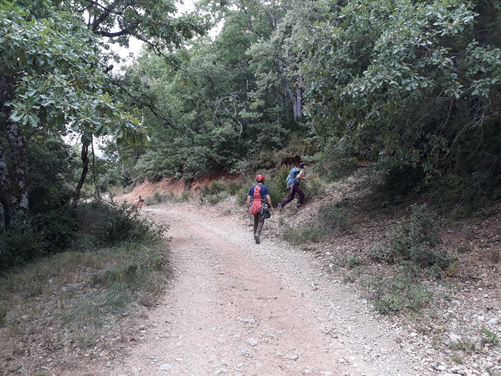 Aproximación: Atravesamos el pueblo de Meano, dejando a la izquierda el cementerio. Seguimos una pista que nos lleva hasta una especie de cantera y continuamos hasta que la pista se estrecha otra vez, ahí aparcamos. Avanzamos por la pista y nos adentramos en el bosque. Ascendemos por el sector Kalandrakas y giramos en dirección a la pared,…hasta terminar en una pedrera “inmunda”…