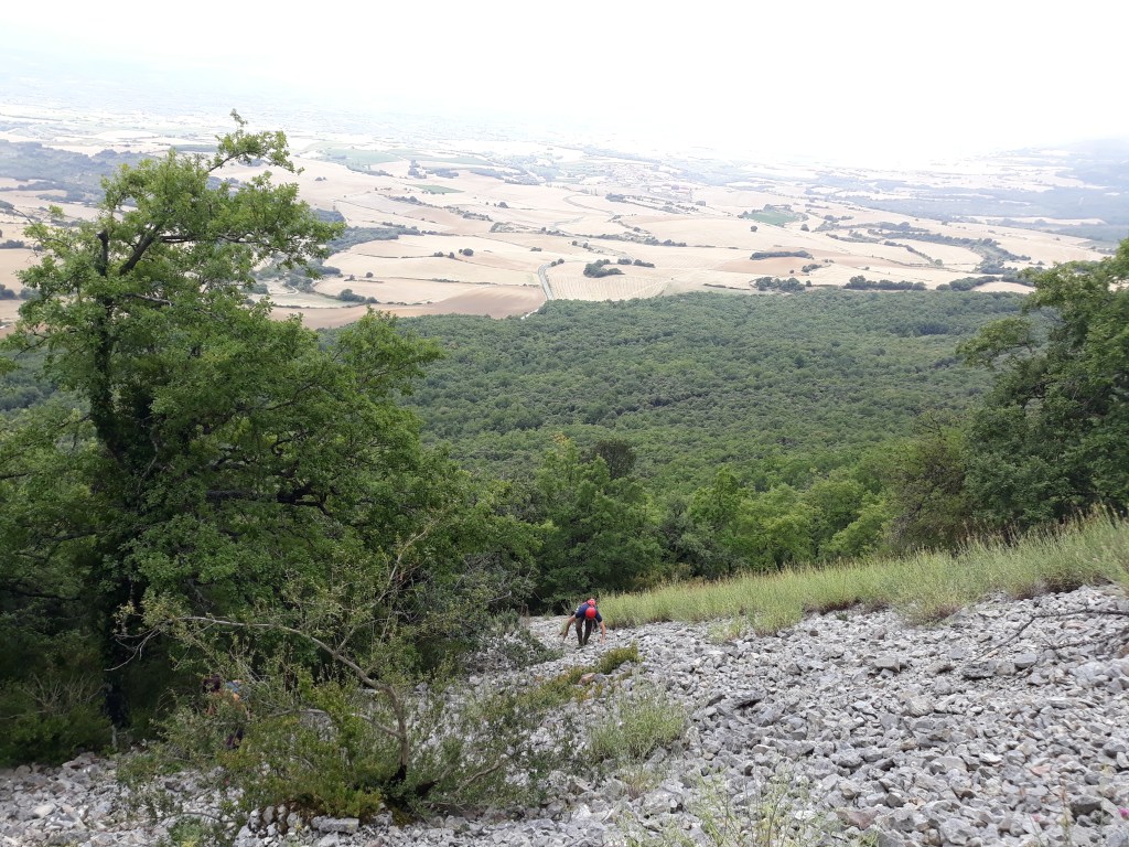 Largo 1, IV (30 metros): Se trata de subir al gran zócalo de la mejor manera posible, ya que no se puede proteger. Hasta los pies del muro. Mucho cuidado.