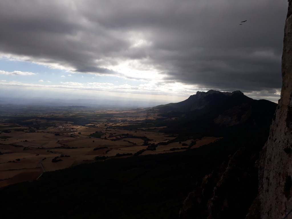 Largo 4, 6a (30 metros): La tirada asciende en travesía a izquierdas. Mucho ambiente para acabar en un nicho que curiosamente es un nido de buitres y huele fatal.