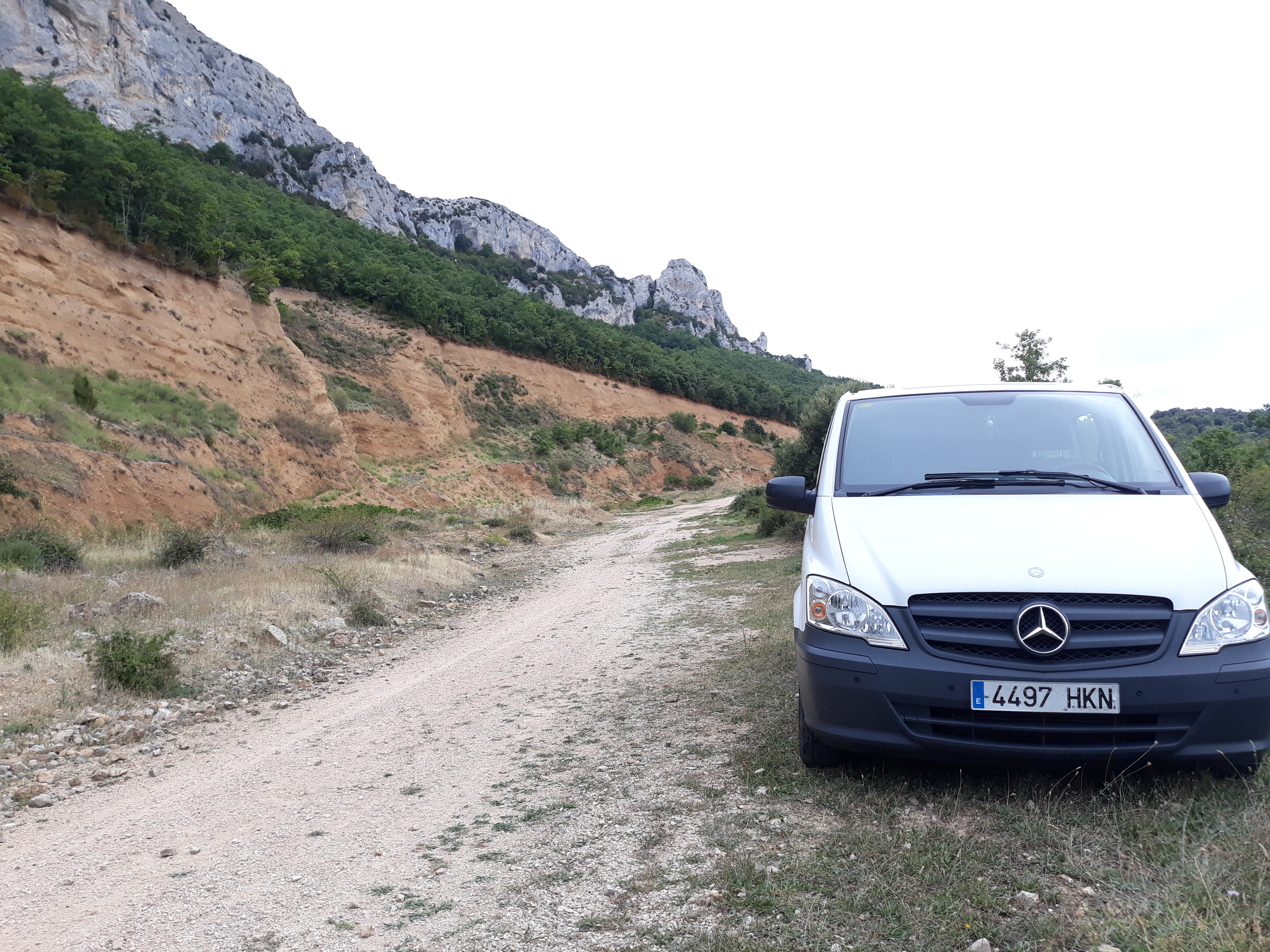 Aproximación: Atravesamos el pueblo de Meano, dejando a la izquierda el cementerio. Seguimos una pista que nos lleva hasta una especie de cantera y continuamos hasta que la pista se estrecha otra vez, ahí aparcamos. Avanzamos por la pista y nos adentramos en el bosque. Ascendemos por el sector Kalandrakas y giramos en dirección a la pared,…hasta terminar en una pedrera “inmunda”…