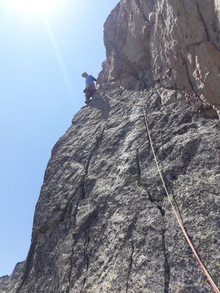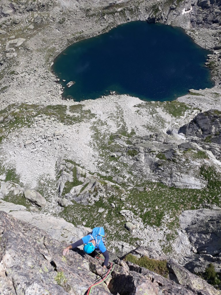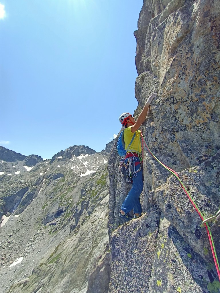 Muy buena vía de escalada vertical y atlética sobre un granito excelente. Los pasajes más difíciles se tratan de pasos puntuales y bien protegidos. Todos los largos son de mucha calidad. Escalada solitaria en un entorno salvaje, con el telón de fondo de los lagos de Batcrabere y el Balaitus.