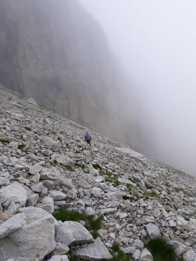 La vuelta al refugio decidimos hacerla por el pie de las paredes para ir fichando las vías que se encuentran en el llamado sector Rubis.