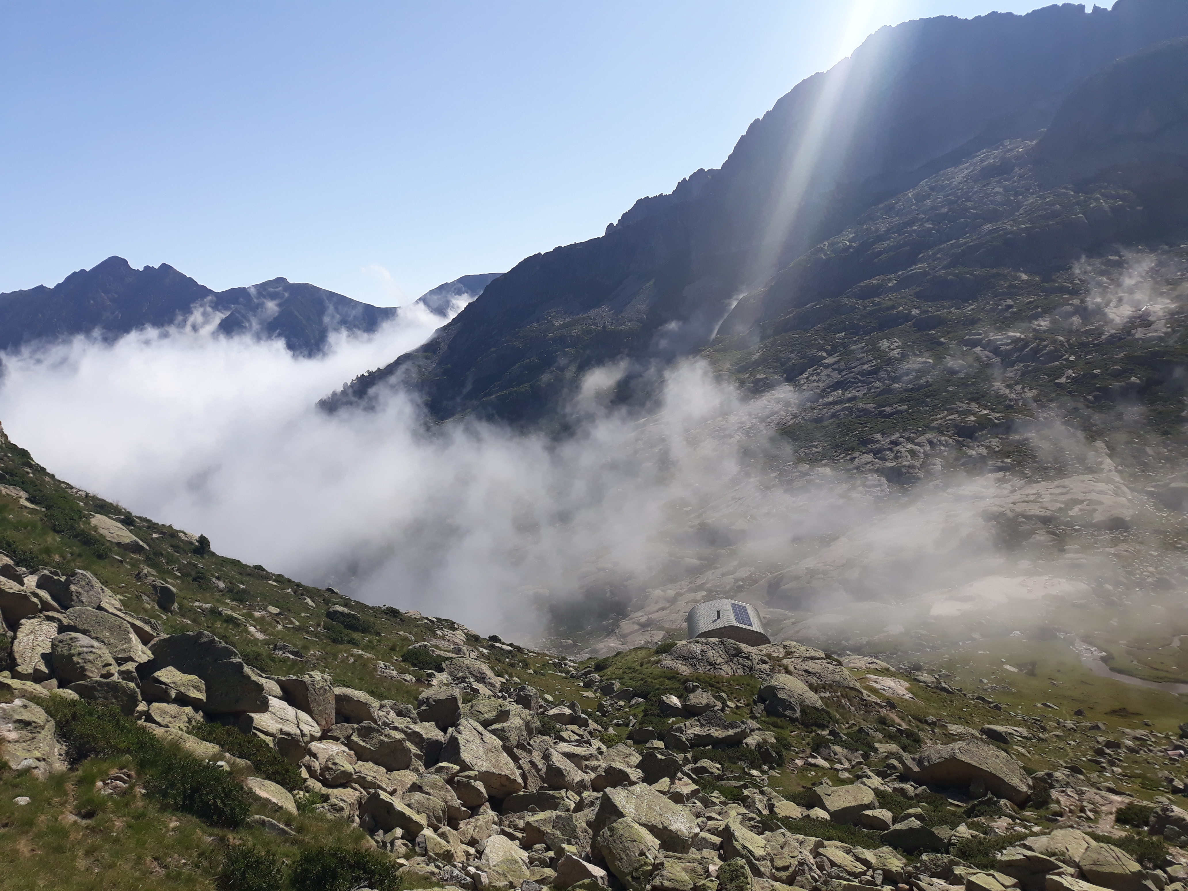 Una vez en el refugio, cogemos el camino que sale por detrás y en una hora estaremos en las paredes denominadas «Triangle D´Or».