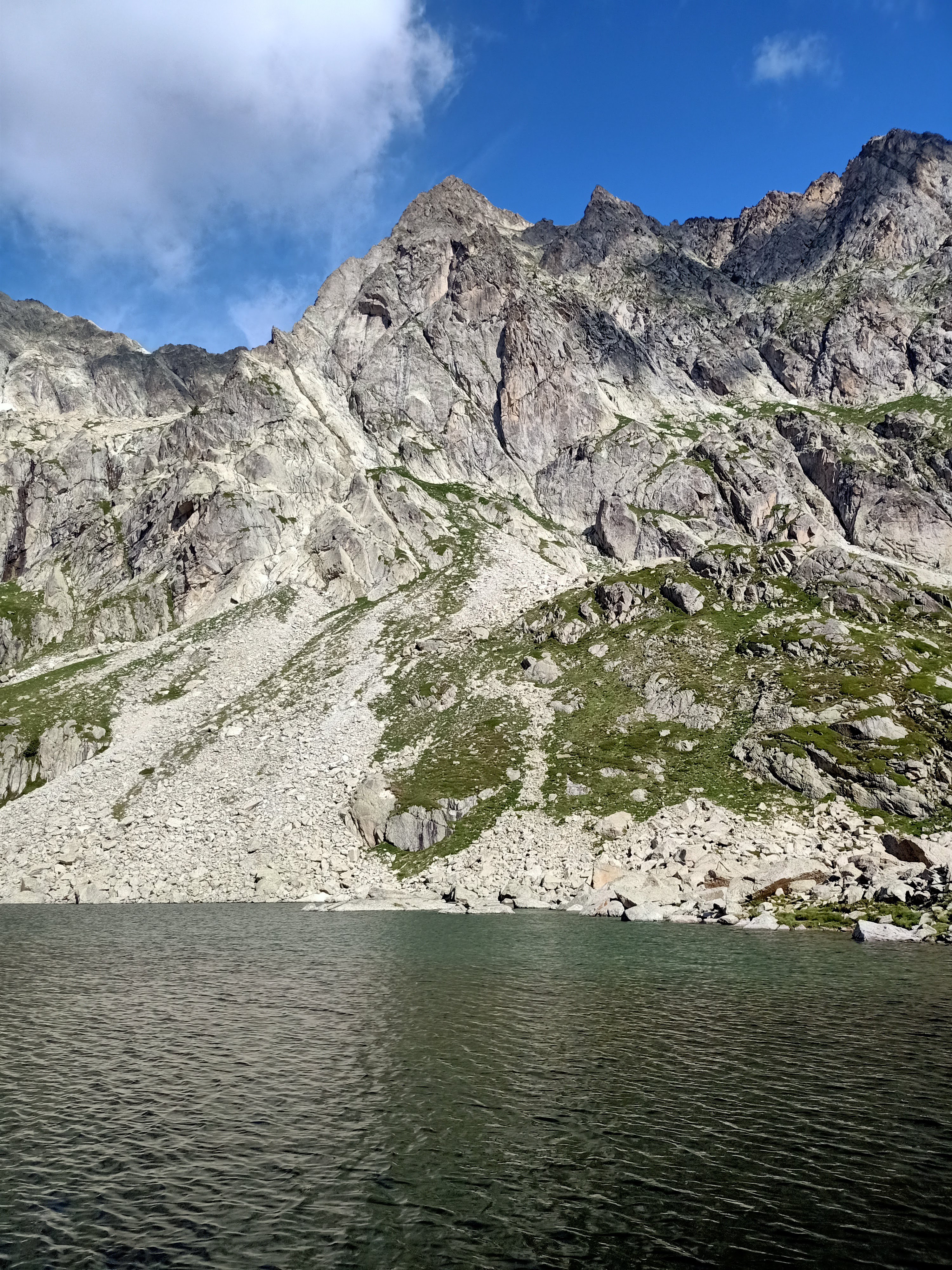 Para acceder a la pared Triangle D´Or debemos coger el camino que sale por detrás del refugio, y bordeando el segundo lago por su izquierda atravesar la pedrera con la pared ya de frente.
