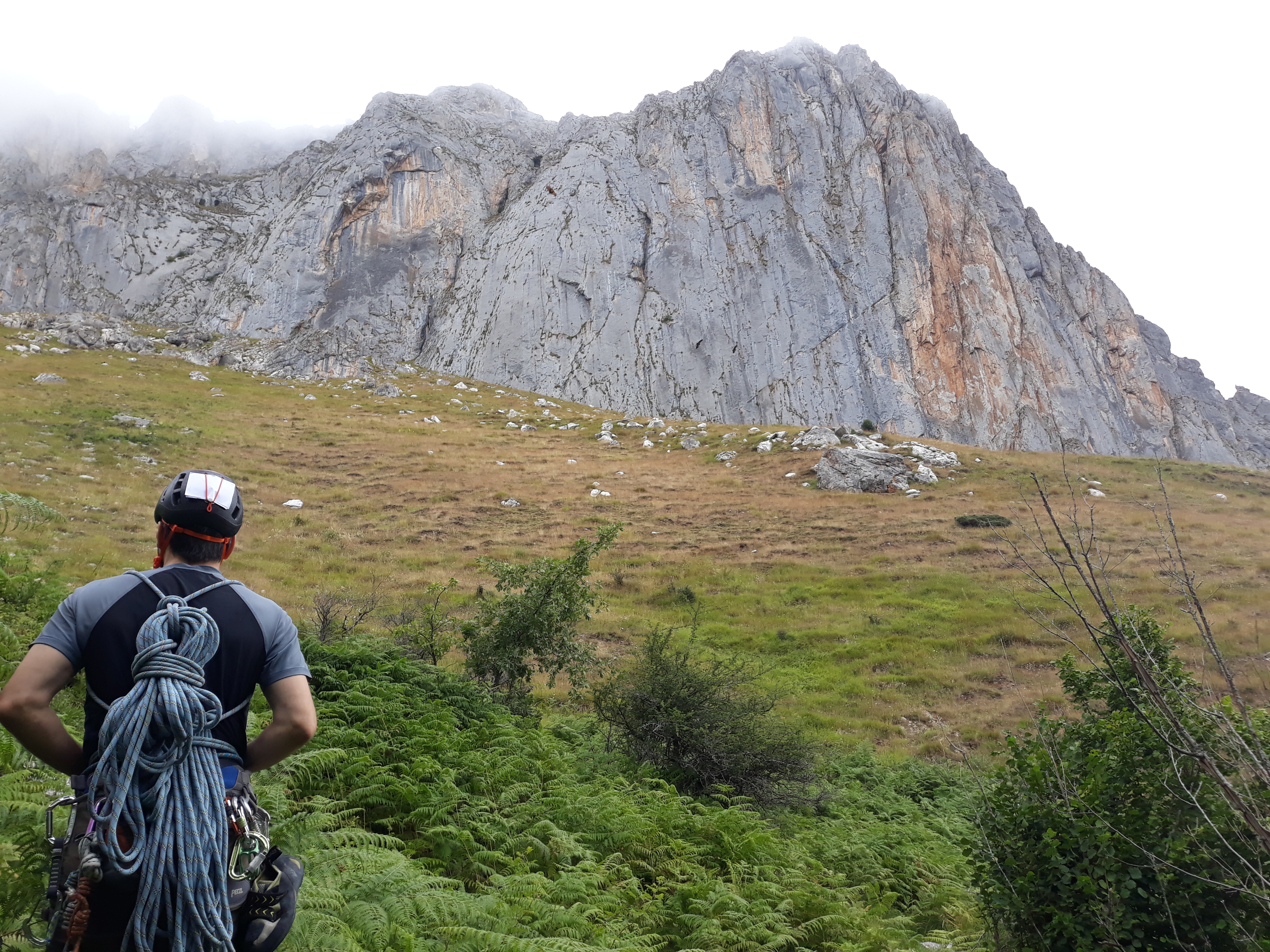 Esta modesta cumbre de 1.532 metros, en las estribaciones de los Picos de Europa y custodiada por la pequeña localidad de Caloca, contiene un paredón calizo de 250 metros en su vertiente suroeste. La vía Bifrost surca su parte central por la zona anaranjada. Dos largos de placa sobre roca pinchuda nos depositan en una sucesión de diedros Ordesianos. Es una pena que la vía transcurra tan a menudo sobre roca dudosa en su parte central, obligándonos a prestar atención en muchos pasajes, porque la vía es buenísima.