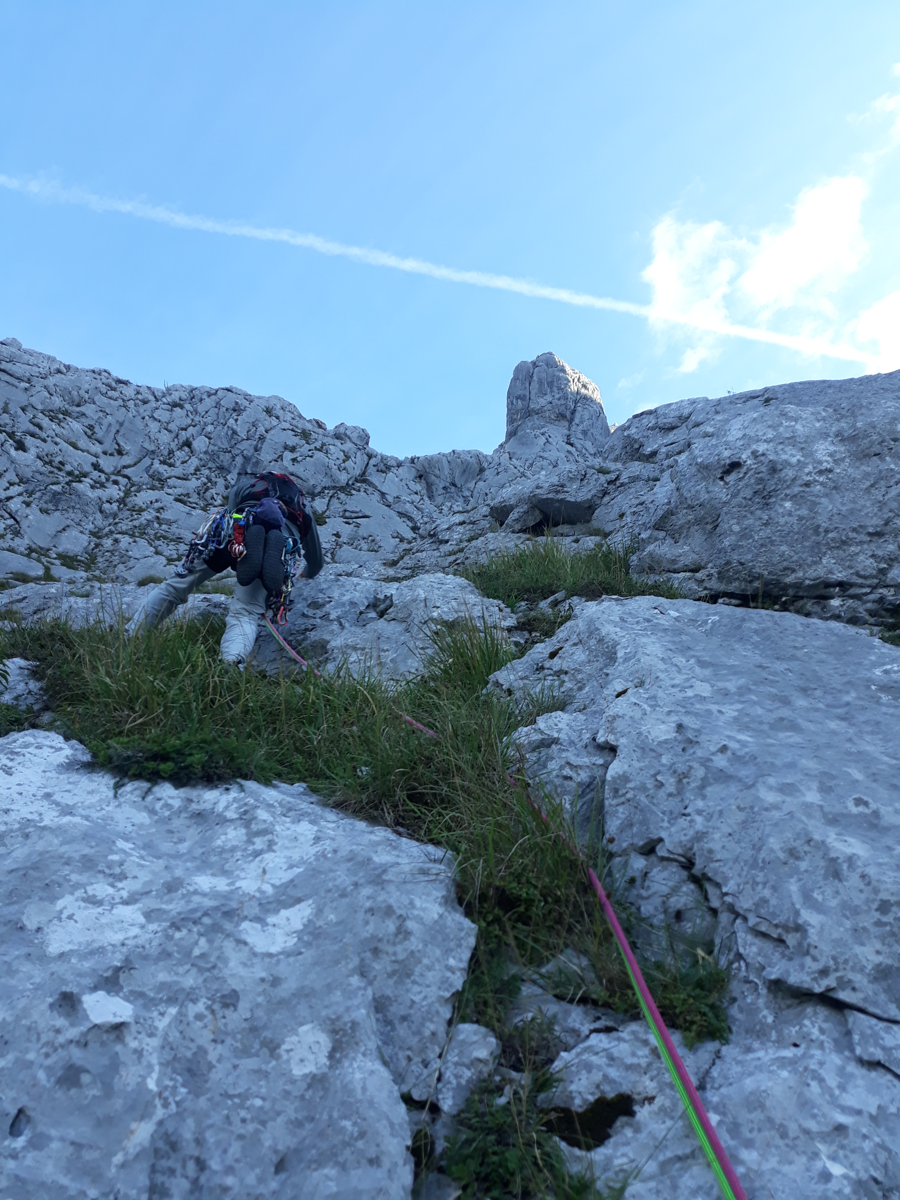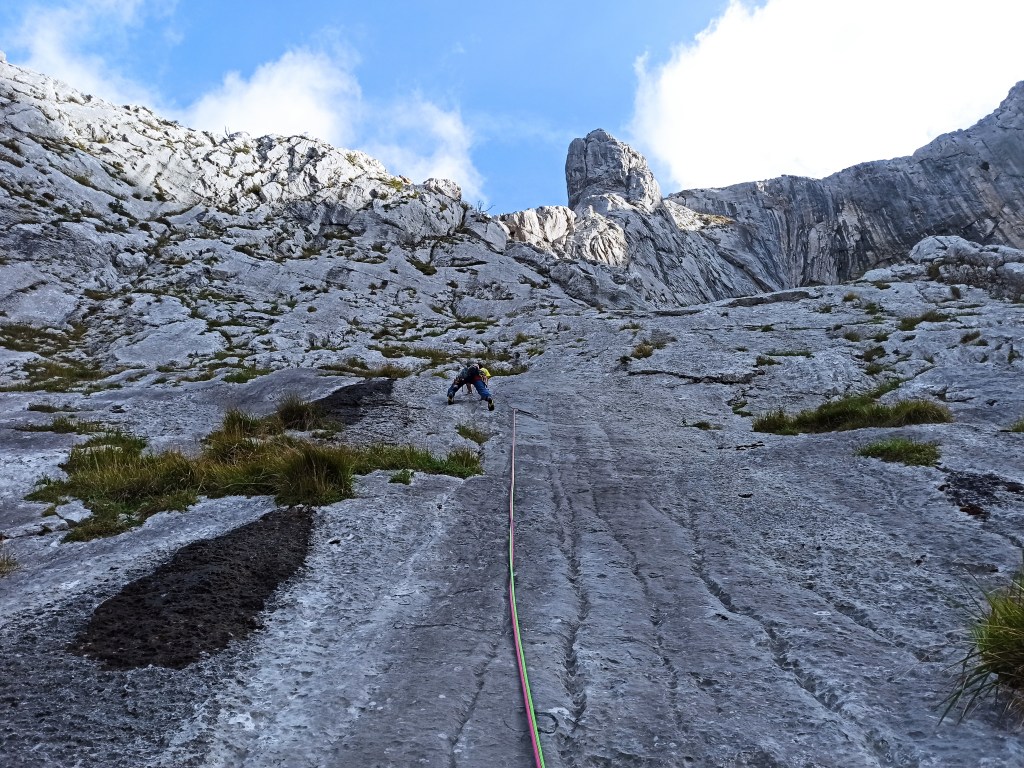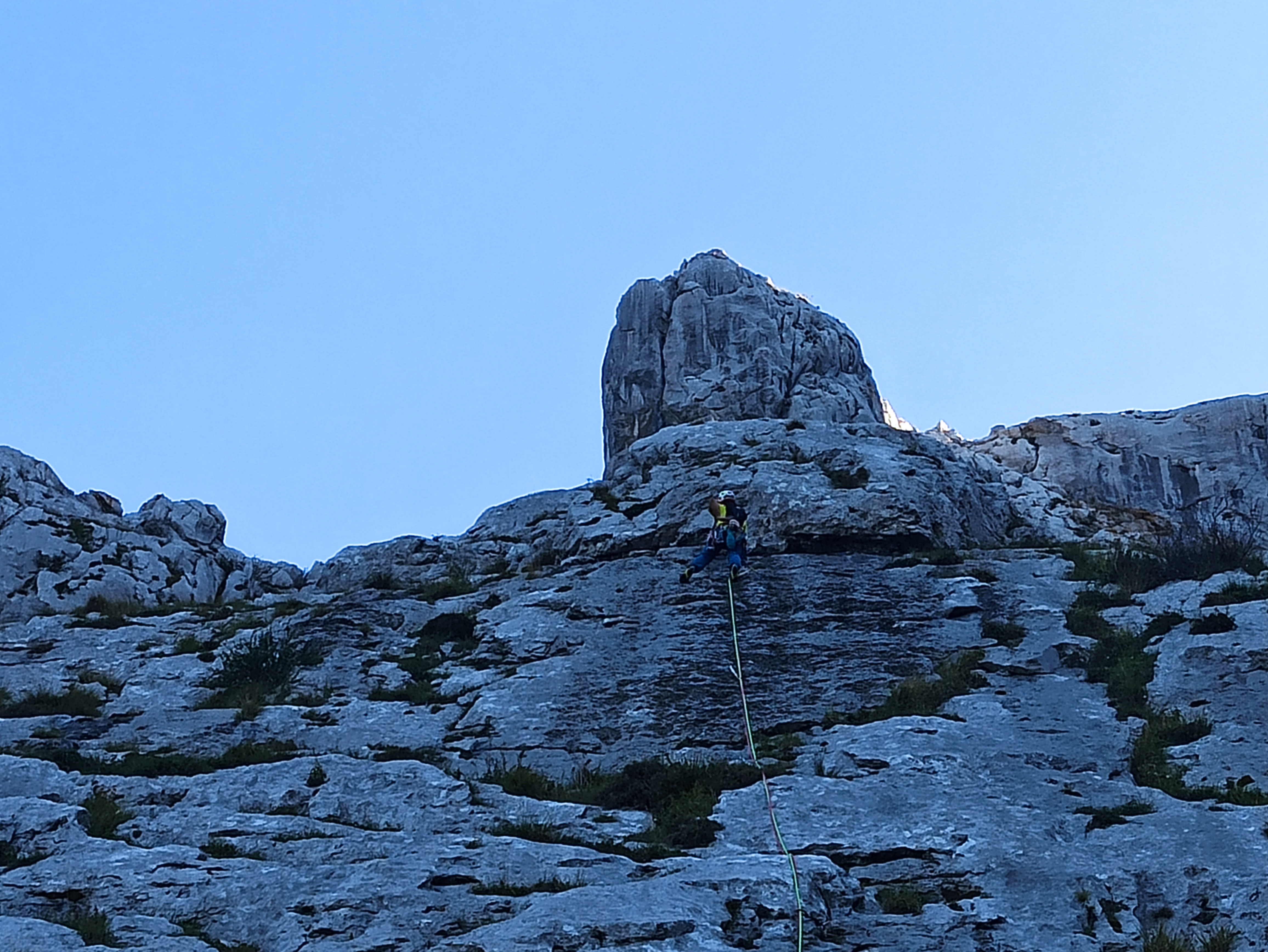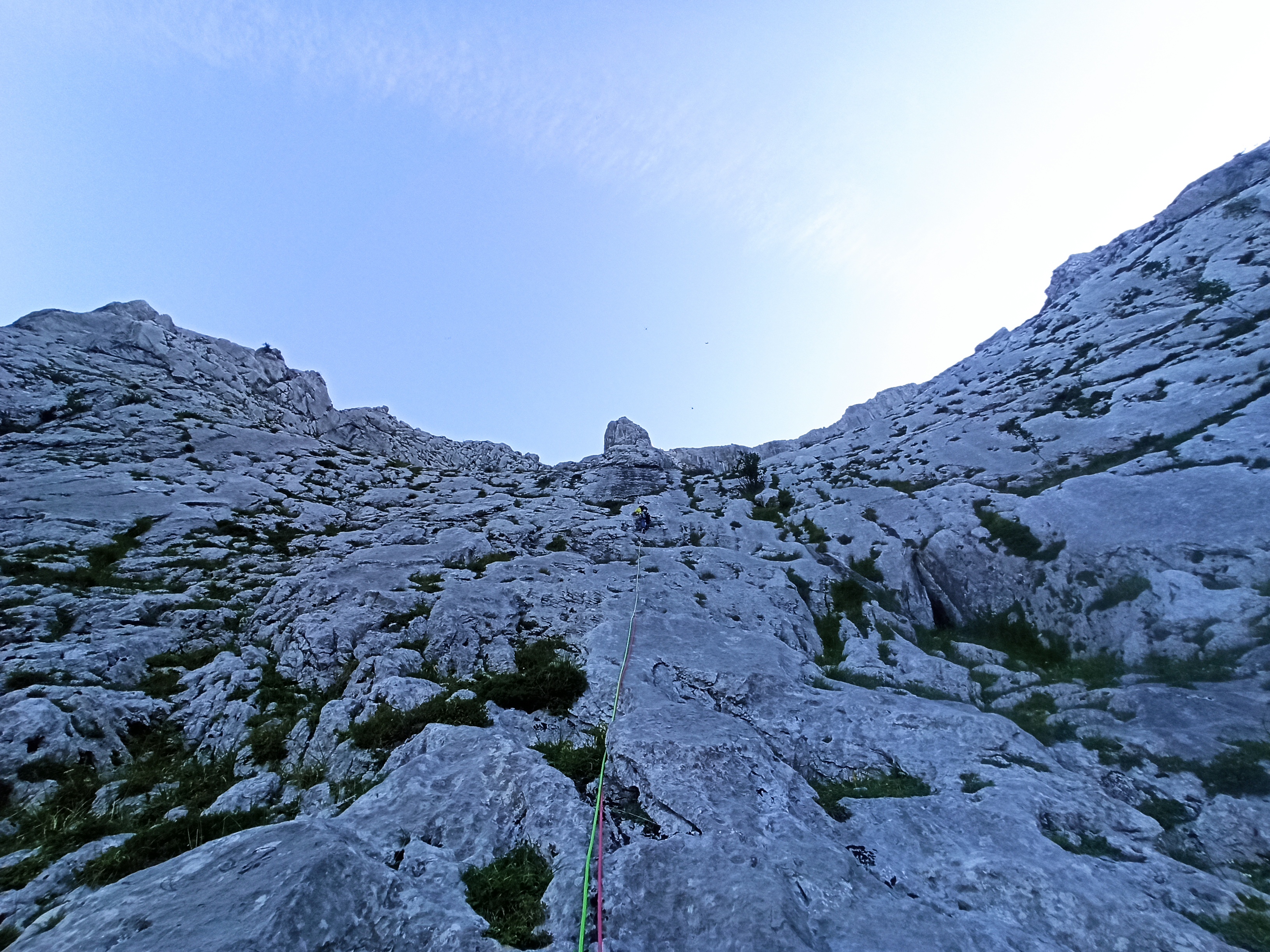 Largo 2, III (30 metros): Tirada de transición hasta alcanzar las grandes placas tumbadas del siguiente largo.