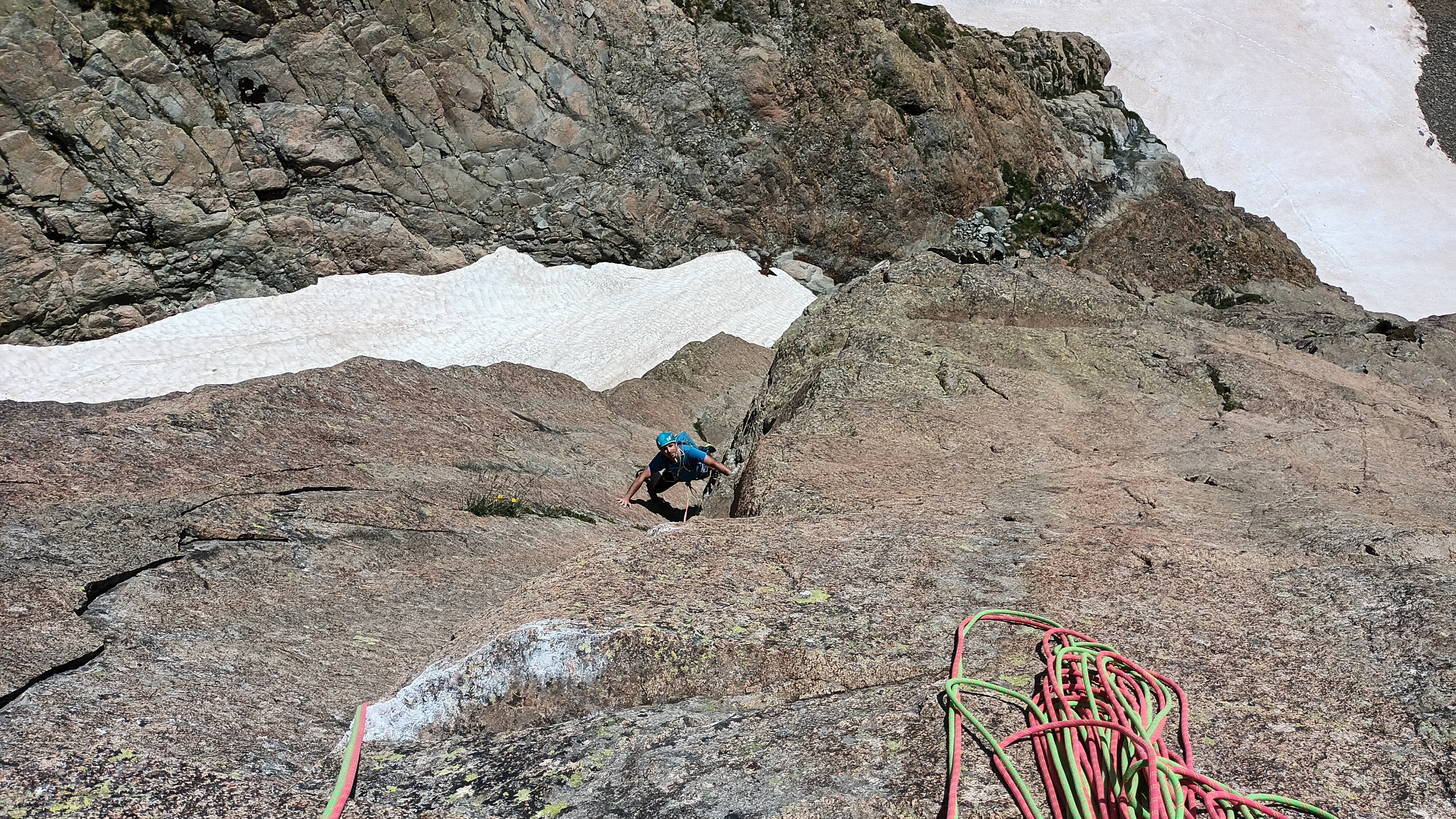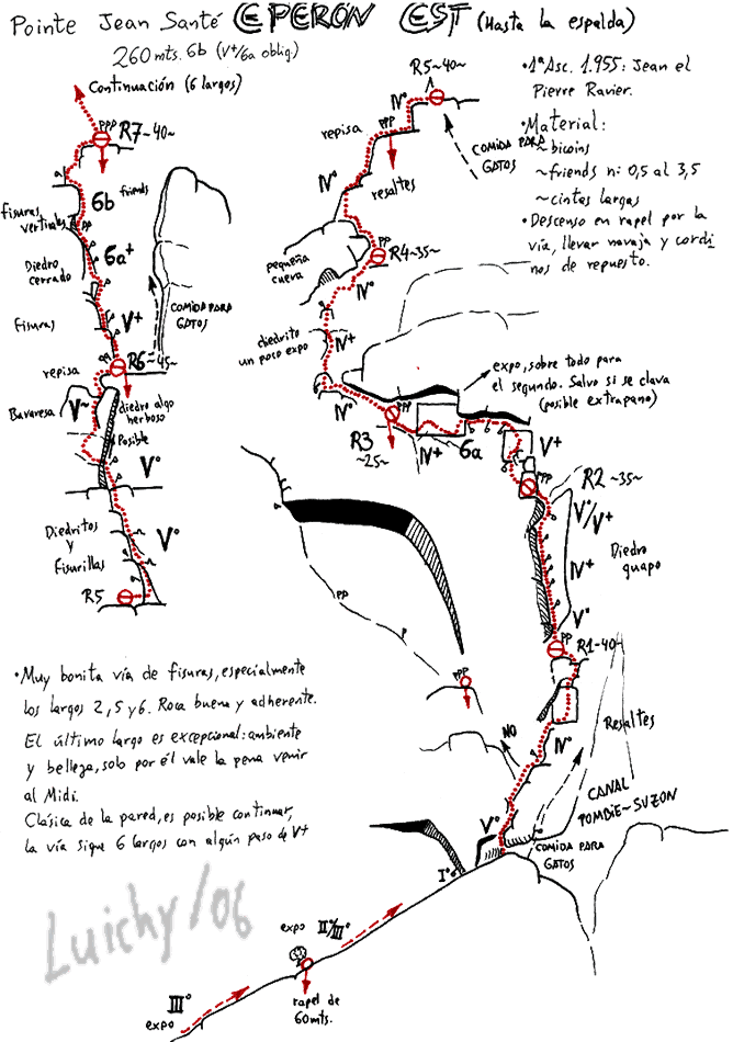 Otra pequeña joya de los hermanos Ravier en su montaña predilecta. Es una vía corta para ser el Midi pero solo por el último largo de fisura merece la pena escalarla. Este largo puede resultar difícil de encadenar, pero se pasa bien debido a las grandes posibilidades de protección.