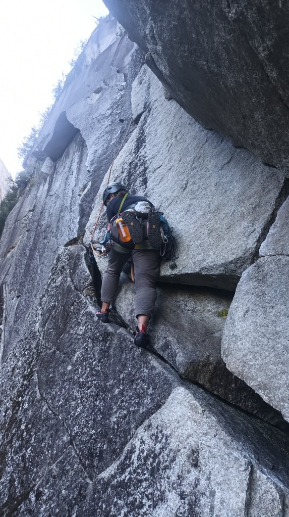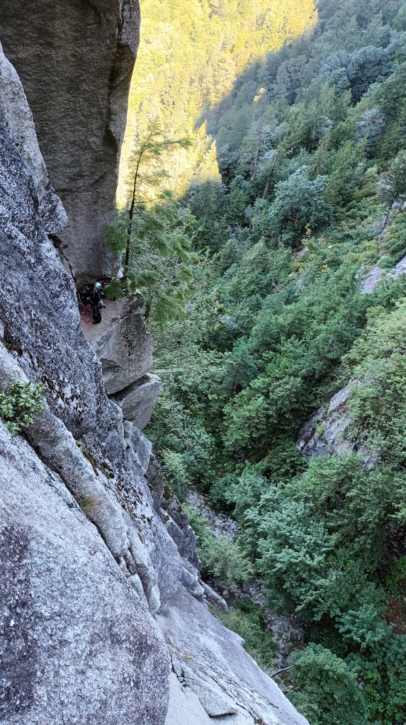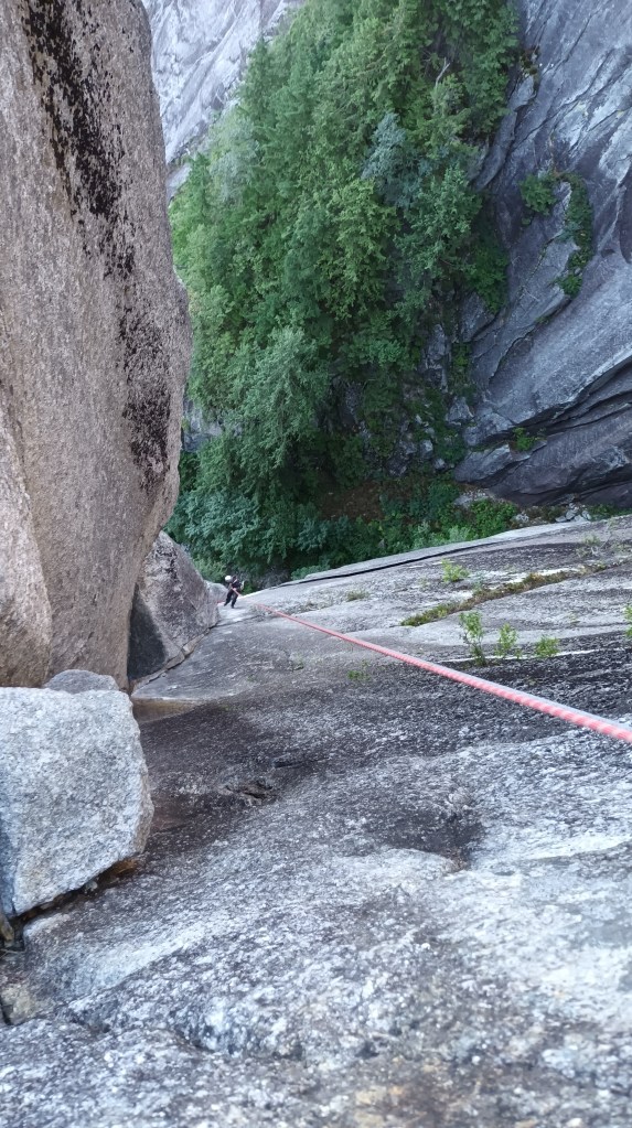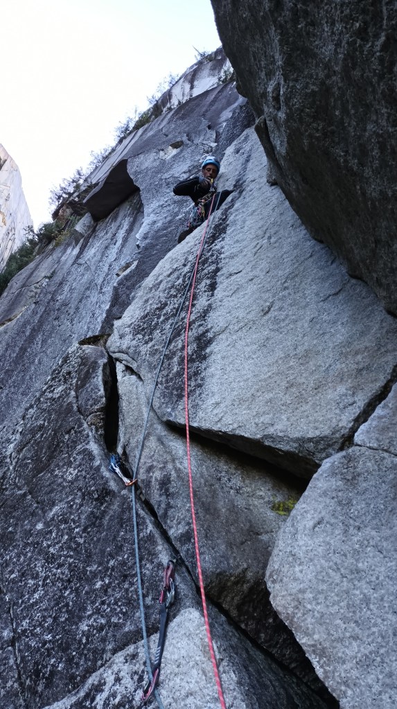 Esta vía es una joya. Escondida a la izquierda de la pared del Apron, en un callejón sombrío con buenas vistas, pasa desapercibida.