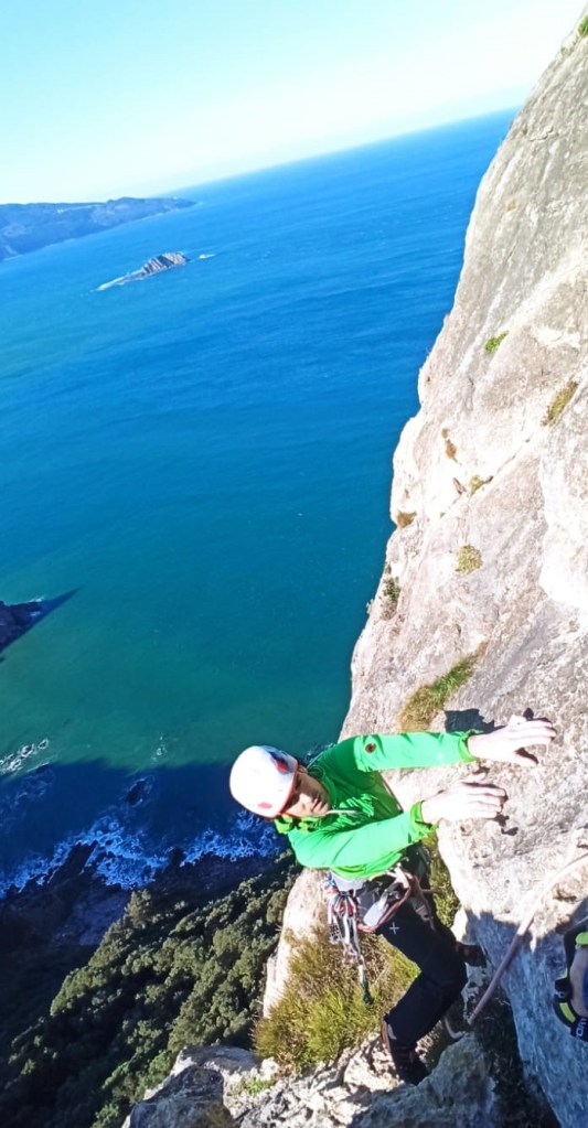 La parte de la derecha de la pared de Ogoño tiene menos ambiente que la parte central. Además las vías son más cortas. Sin embargo por ese paño discurren vías muy buenas. Buen ejemplo de esto es Kekereouen, una preciosa vía de tres largos. Y esque no hay nada como no tener expectativas. Todos los largos son buenos. Te deja con ganas de más.