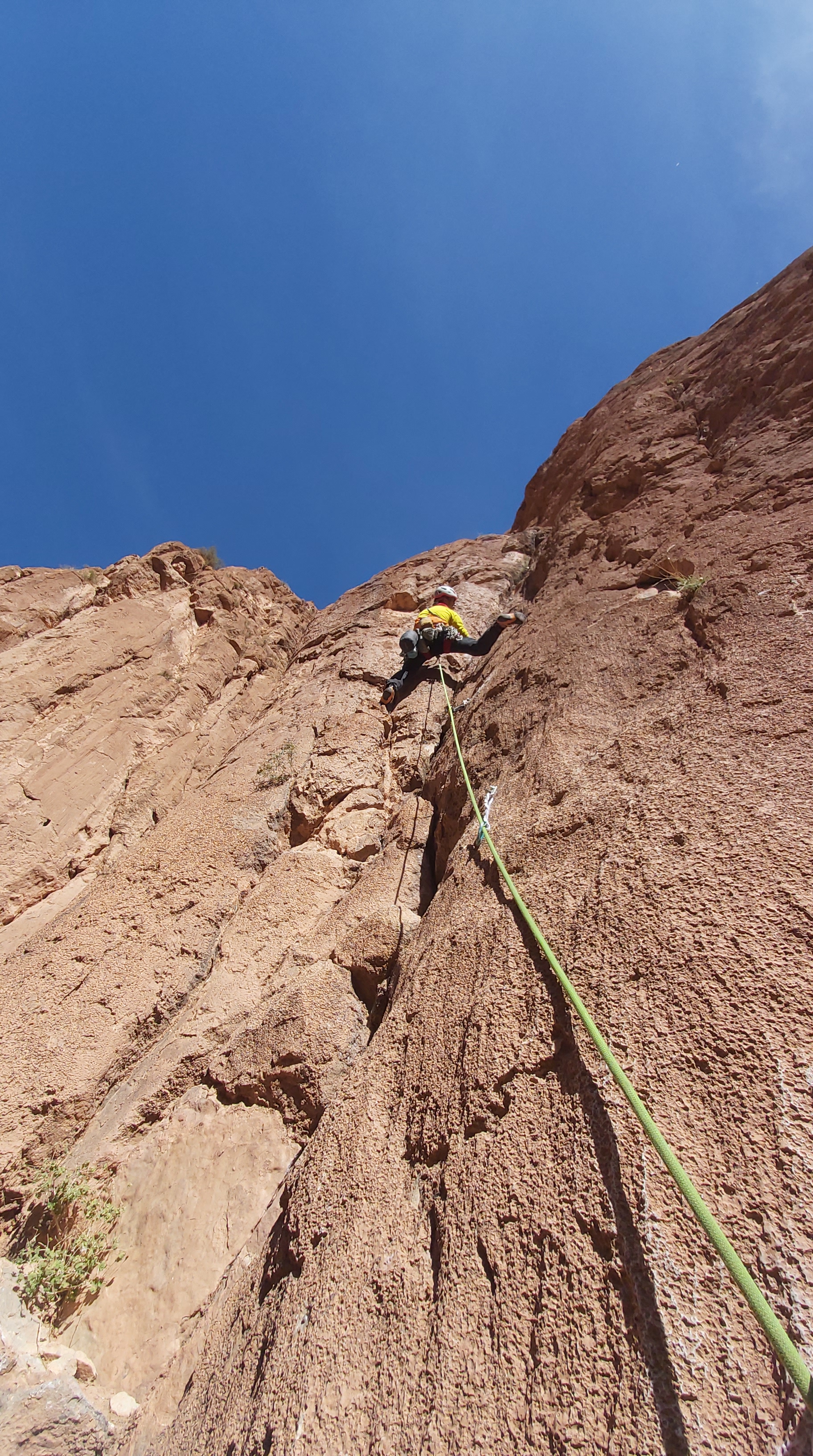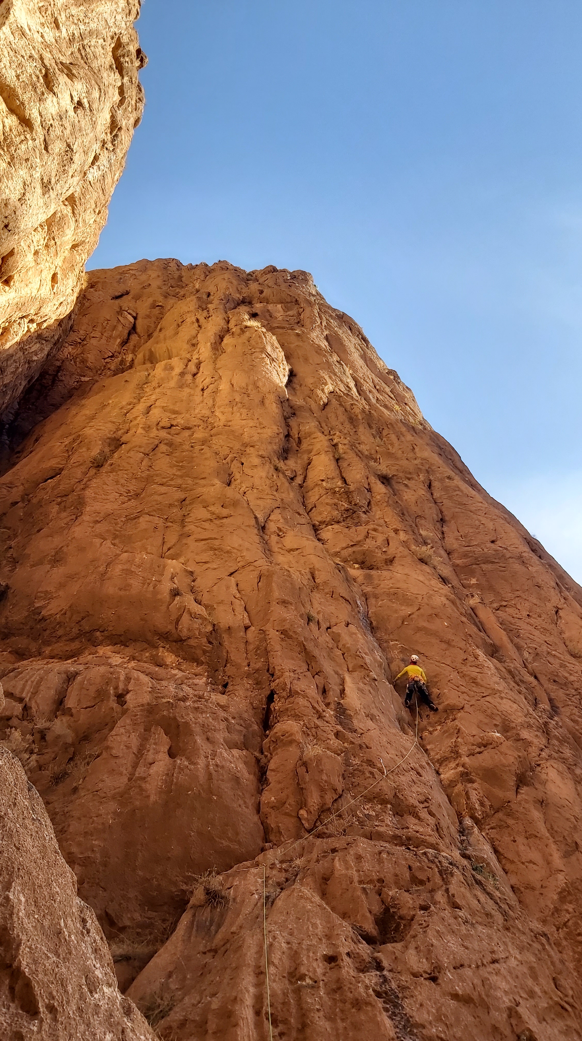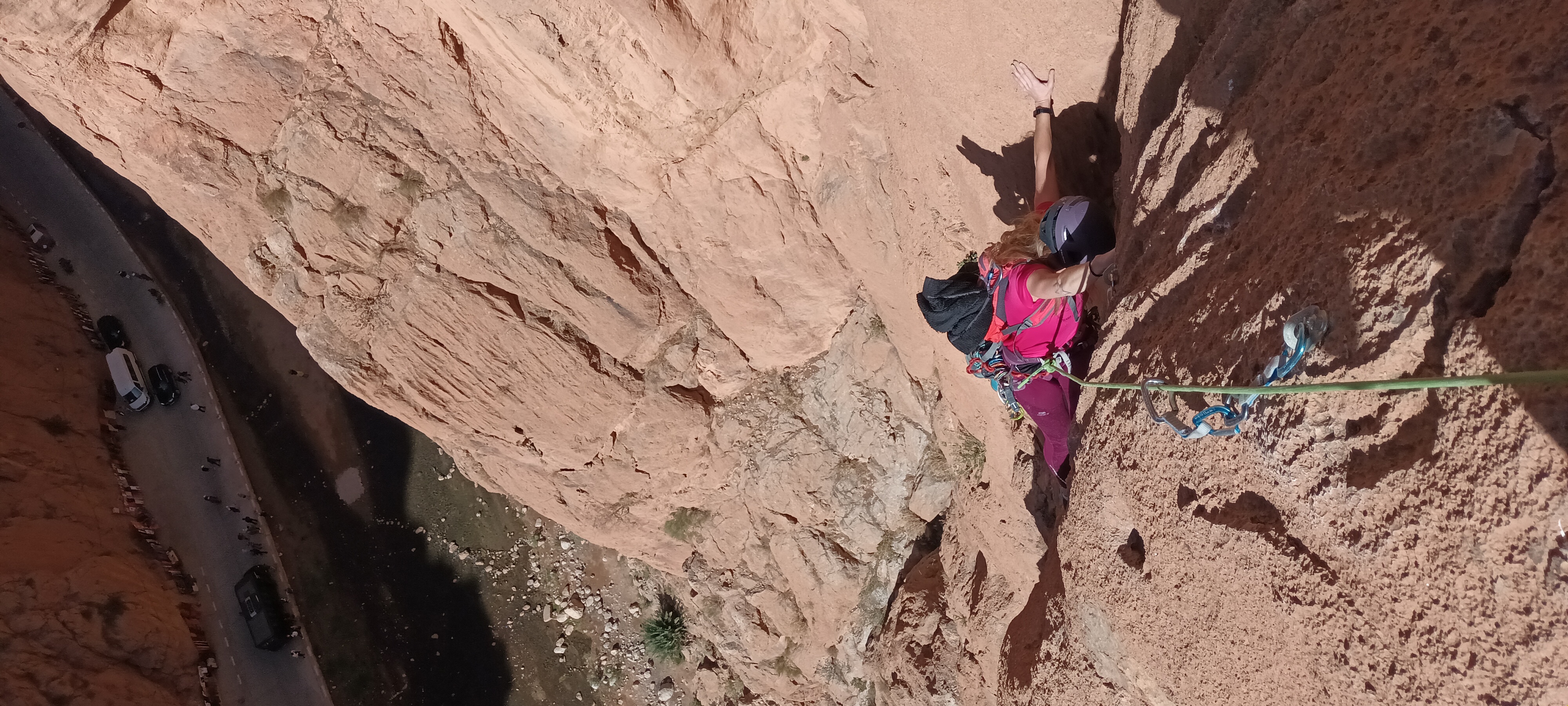 La sensación de estar en un lugar remoto (8 horas de autobus atravesando parajes áridos a través de las montañas del Atlas), la calidad de la roca compacta y abrasiva, los colores rojos de la roca y el horizonte…. el Oasis…. hacen que cada escalada se convierta en algo exótico nunca vivido anteriormente.