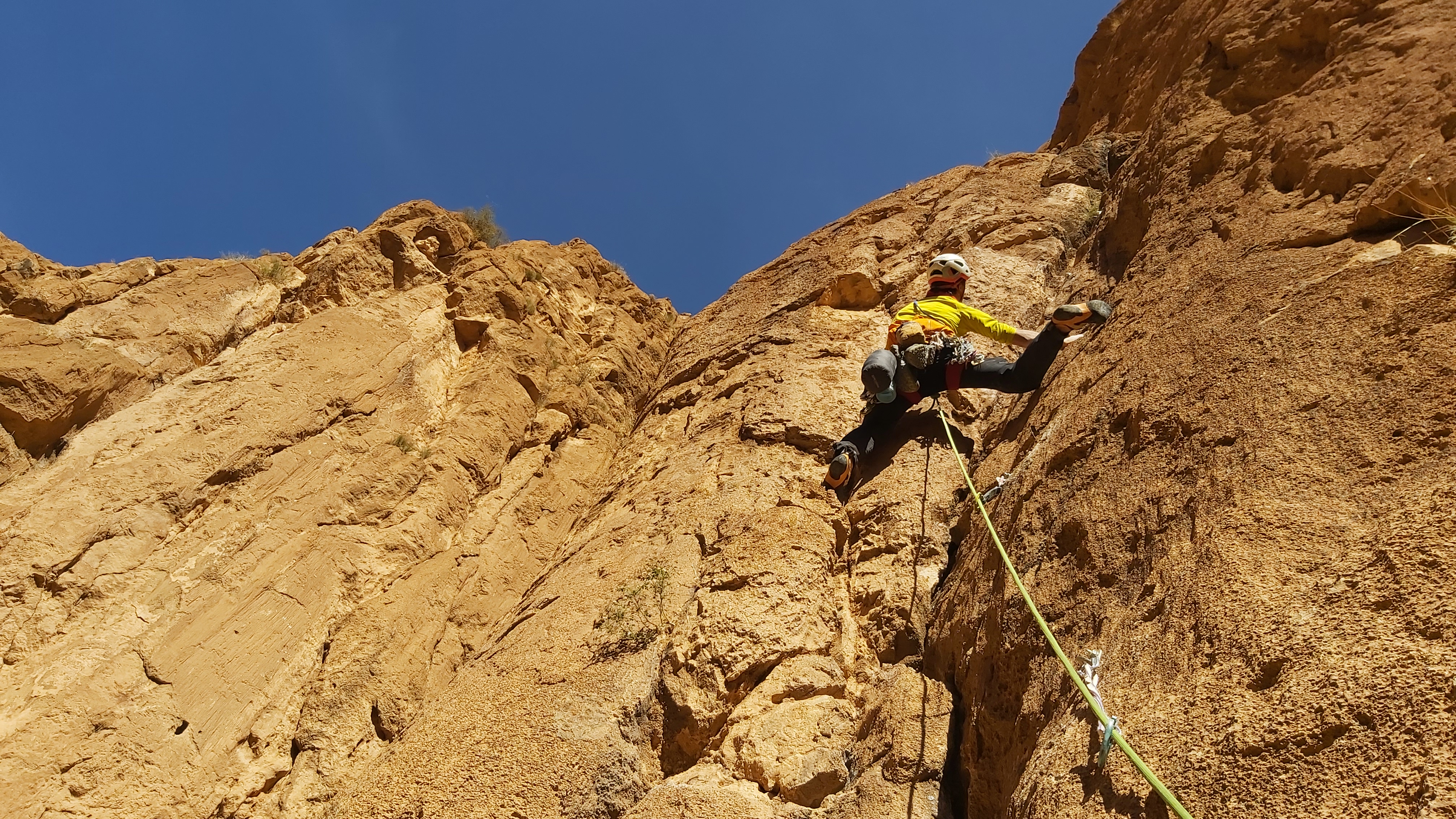 El Todra es un gigantesco cañón de paredes calizas que se abre paso entre un oasis de palmeras, el desierto y las montañas desoladas del Atlas. Su roca es espectacular, de color ocre, uniforme y muy adherente y su escalada va siempre unida al viaje de descubrir un país asombroso.