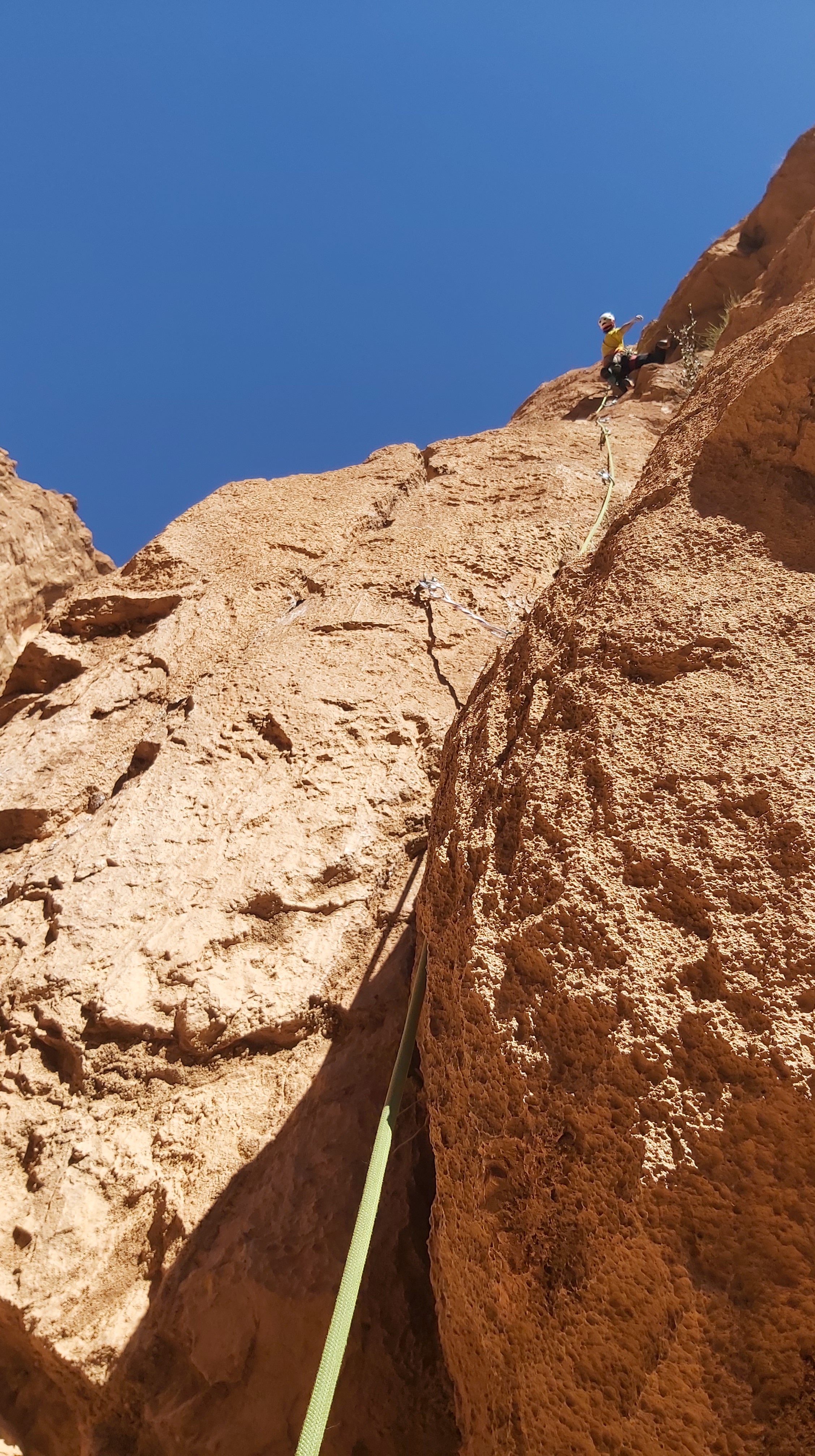 Largo 4, 6b (30 metros): Diedro sencillo al principio y antes de salir a la izquierda un paso raro con chapaje un poco duro.