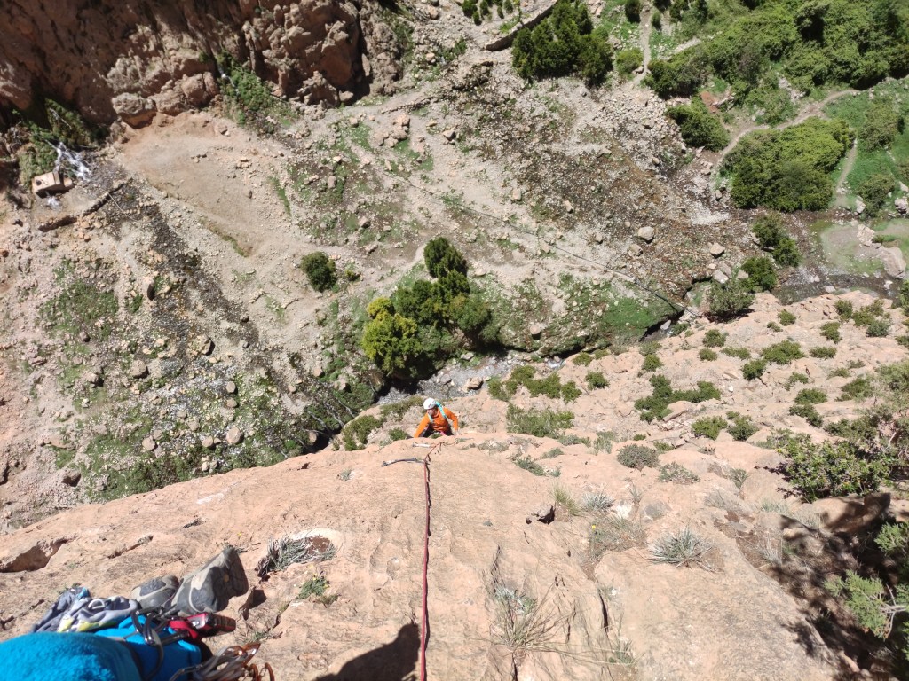 A partir de aquí podemos retirarnos o continuar por los dos últimos largos de la vía «Belle et Bereber».