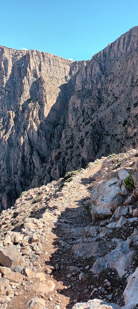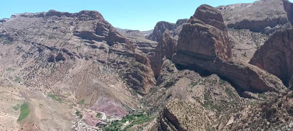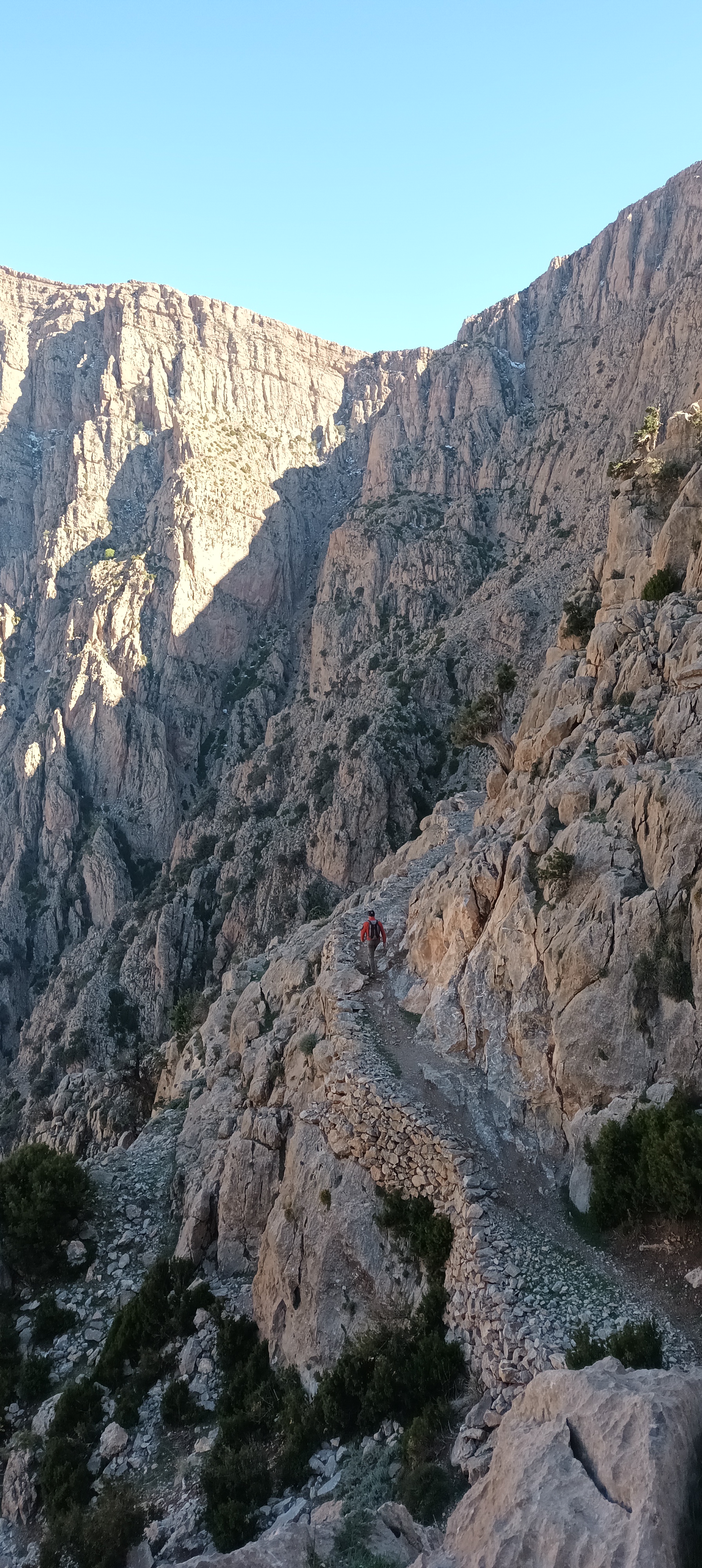 Descenso: Desde la cima tendremos que andar hacia nuestra izquierda, hasta encontrar un camino bereber que increíblemente baja serpenteando hasta la base de la cascada.