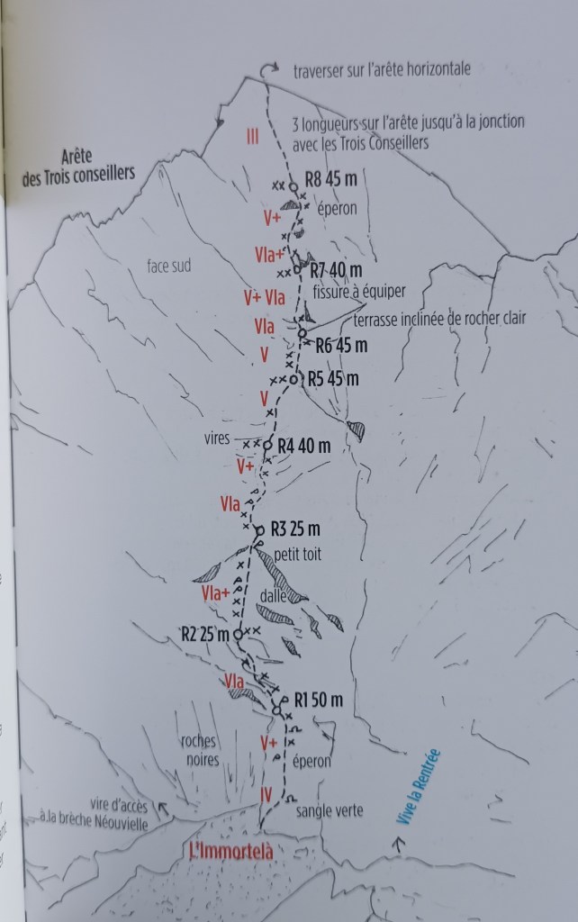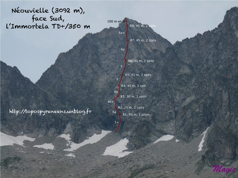 Itinerario alpino y directo que nos deposita en la cima del Pico Neouville (3.091 metros). La belleza del entorno, variedad de movimientos, calidad de la roca y llegada a una bonita cumbre han hecho que se convierta en la clásica de la zona por derecho propio.
