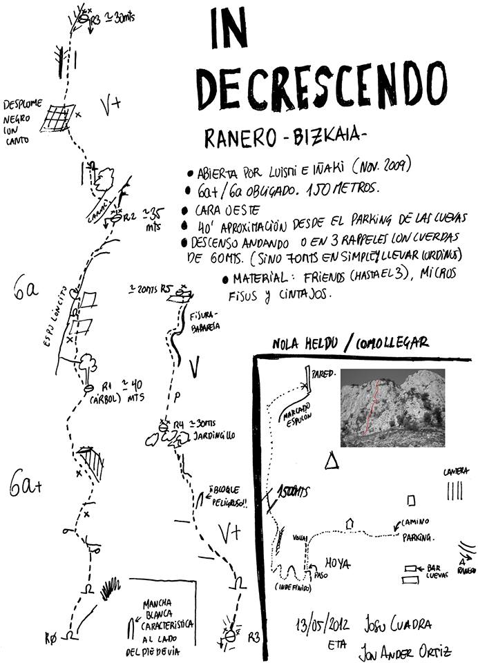 Escalar en Ranero es sinónimo de soledad y ambiente salvaje. Este valle no defrauda, siempre vuelves a casa habiendo vivido una pequeña aventura. In Decrescendo es una vía rápida y asequible, puede ser una buena toma de contacto con estas paredes.
