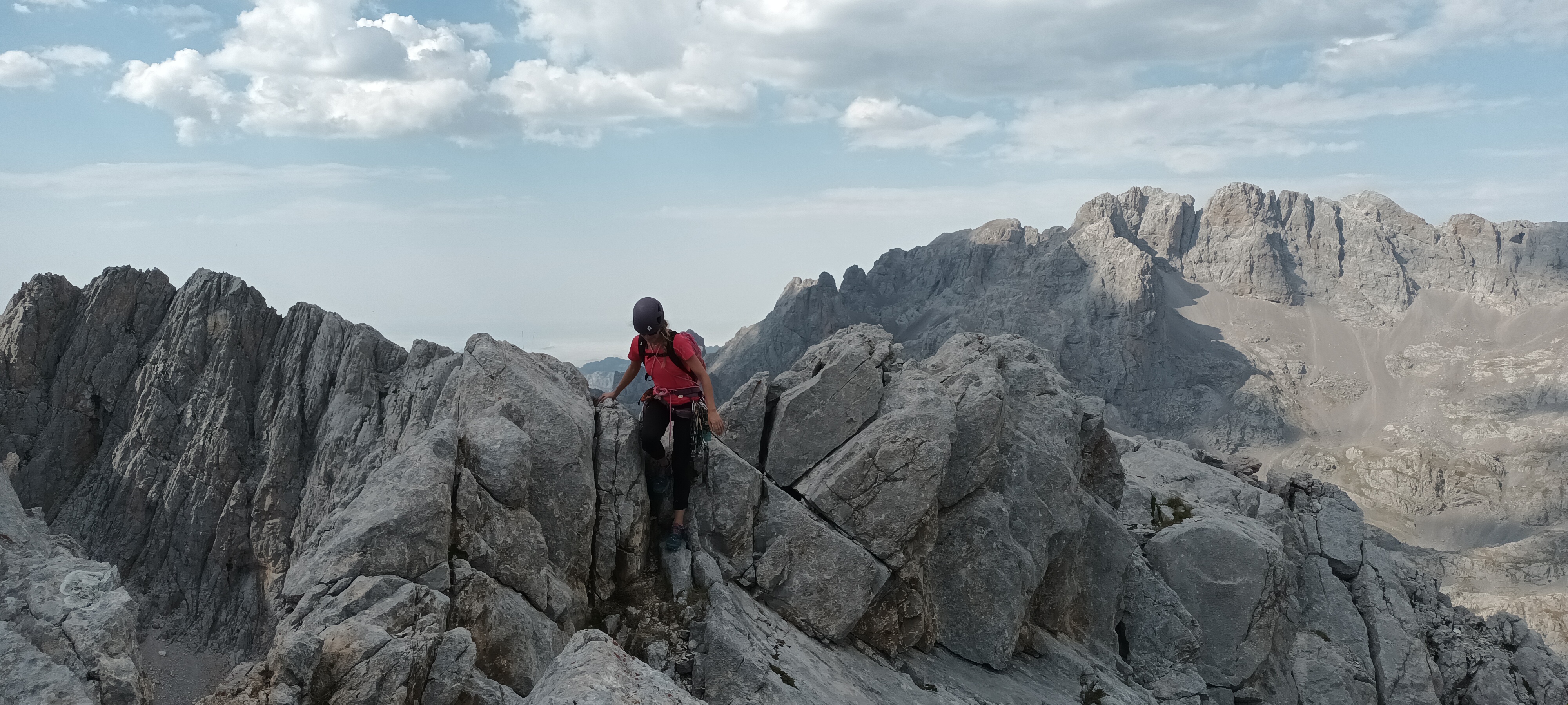 Para llegar a la cima nos quedan unos 100 metros de arista que debemos hacer con máxima concentración, ya que hay bloques sueltos y un error puede ser fatal.