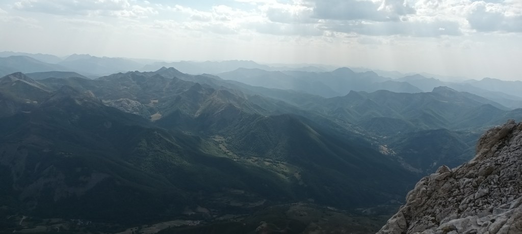 Descenso: Alcanzamos la cima y continuamos andando siguiendo los hitos hasta otra cima de menor altitud. Desde ahí seguimos los hitos hasta collado Remoña.