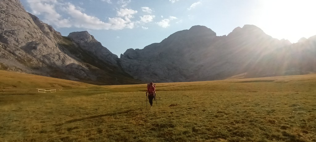 Aproximación: Desde el puerto de Pandetrave sale una pista de tierra que nos lleva hasta la horcada de Valcavao, donde dejamos el coche. Desde allí hasta la Vega de Liordes tenemos 1 hora. Primero andamos por otra pista de tierra (solo vehículos autorizados) que nos lleva al parking de Caben de Remoña. Desde allí ya divisamos el sendero que sube serpenteando la canal de Tiro Pedabejo y que nos dejará en el collado de Remoña.
