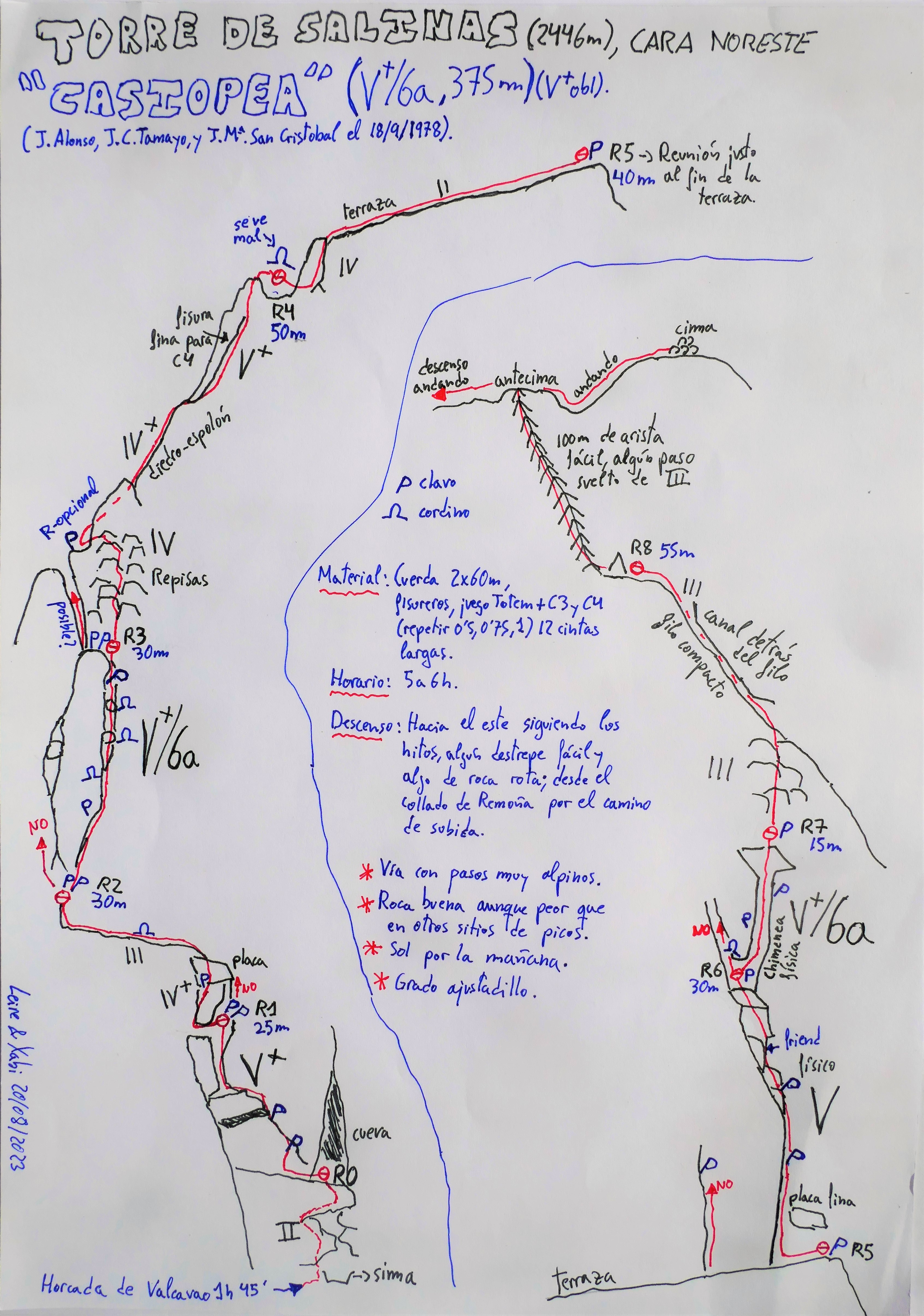 Pequeña gran aventura con unas vistas espectaculares. Una vía recia, que no tiene ningún parabolt en sus más de 300 metros de recorrido (apenas tiene 10 clavos y algún puente de roca) , en la que tendremos que realizar algún paso con pies en adherencia y con el último seguro debajo de ellos. Actividad muy alpina por su estilo de escalada y orientación (noreste). Grado ajustado, hay que tener en cuenta que se abrió en 1978, cuando no existía el 6º grado, por lo que algunos largos nos sorprenderán. La vía no es rapelable, lo que le añade compromiso a la actividad.