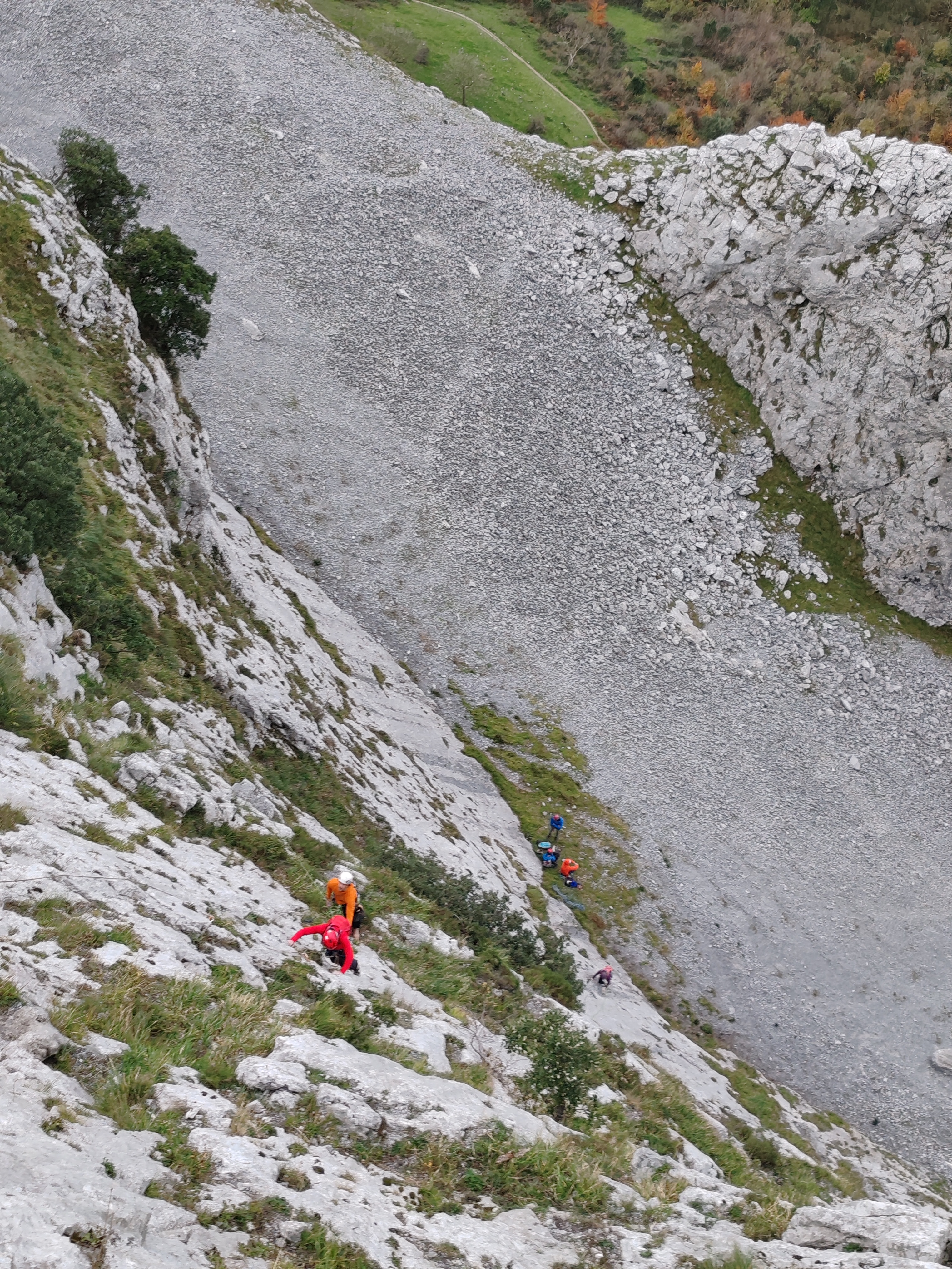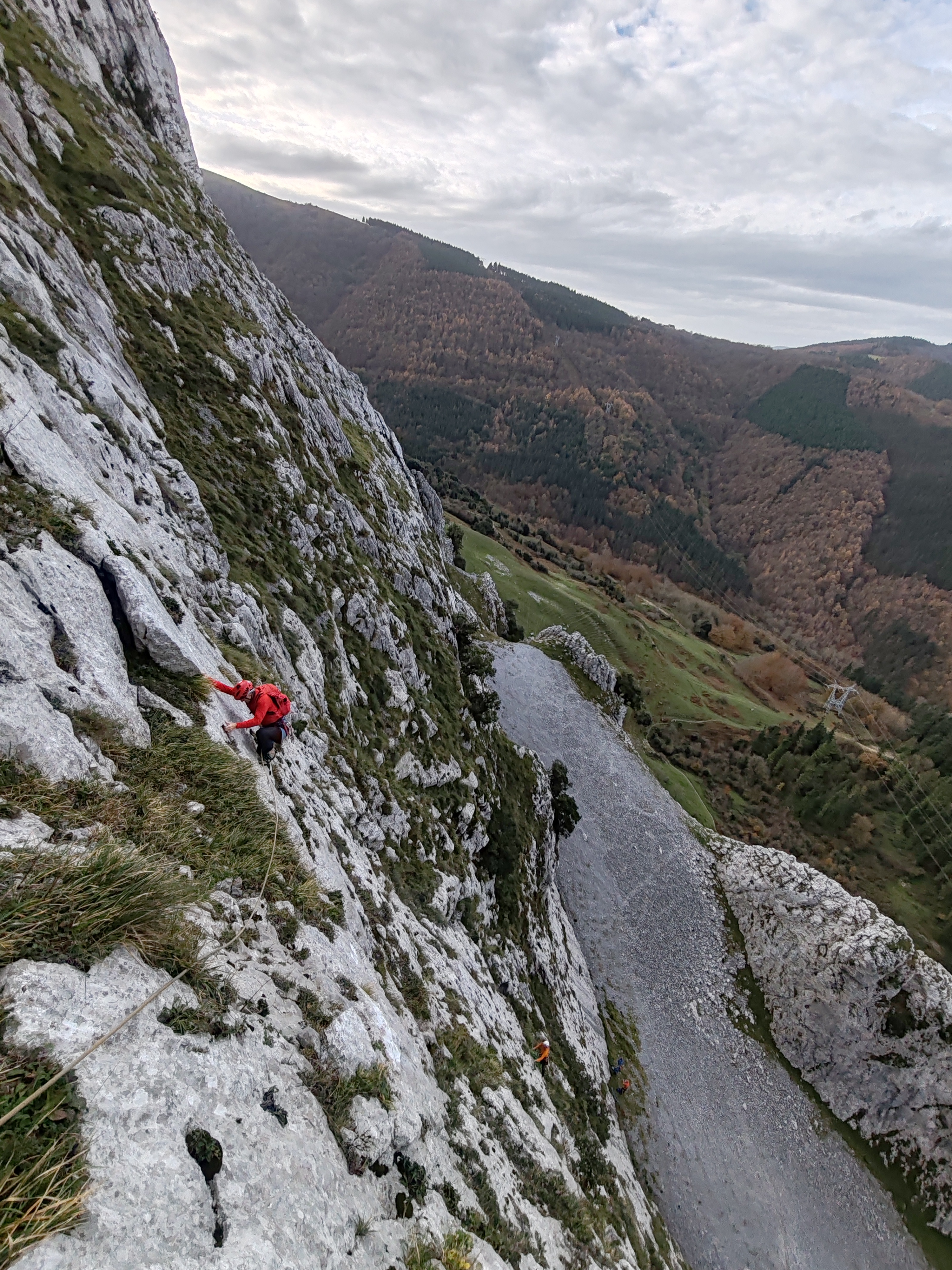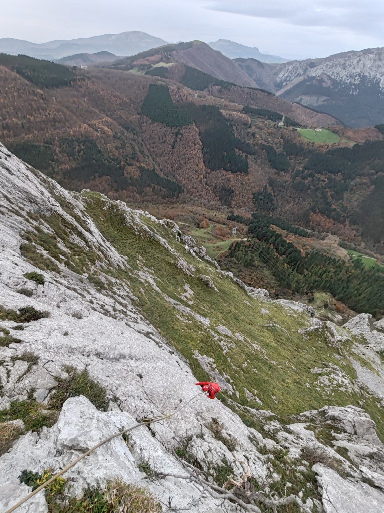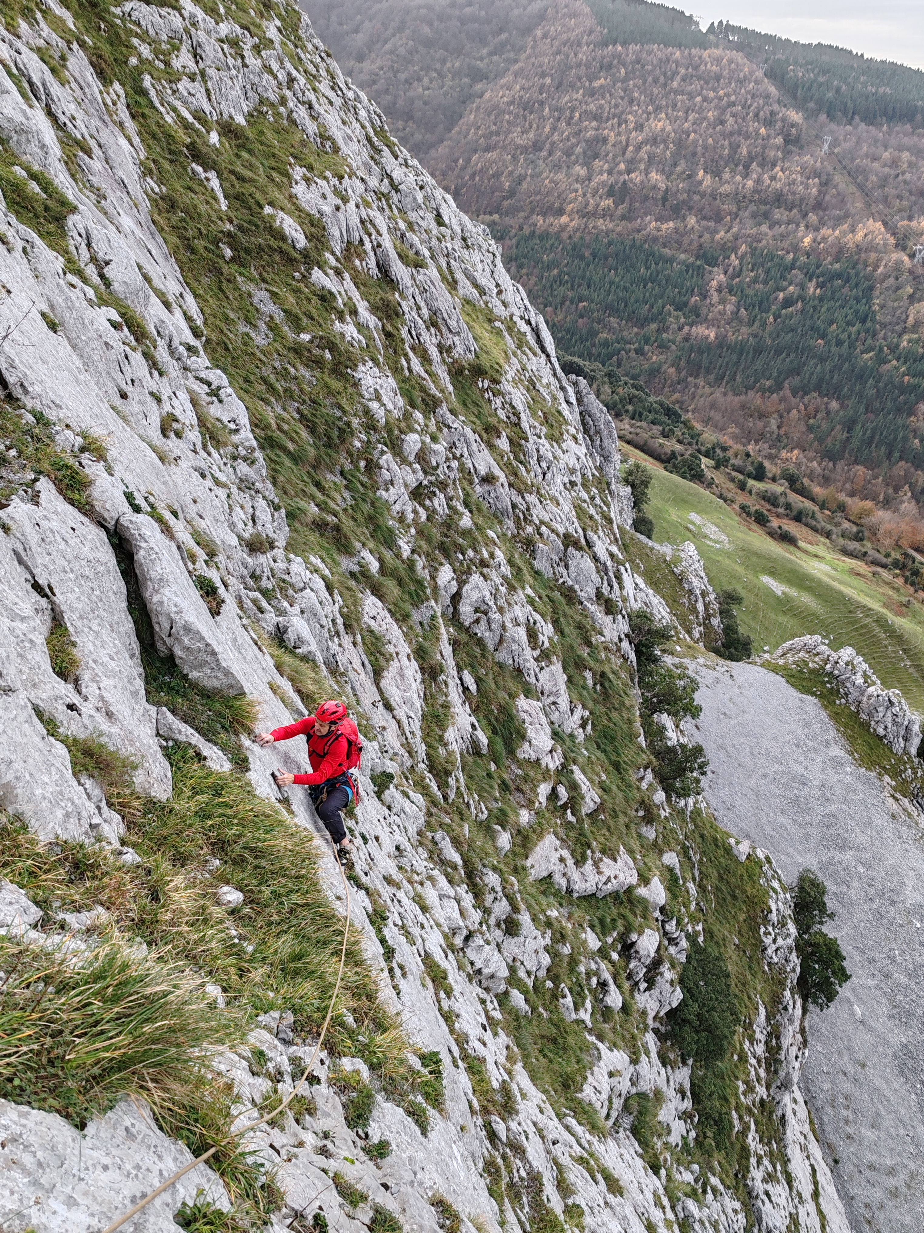 Desde la reunión, andamos 10 metros hacia la izquierda hasta el gran ojo (Tartalo) desde donde aseguramos el siguiente largo.