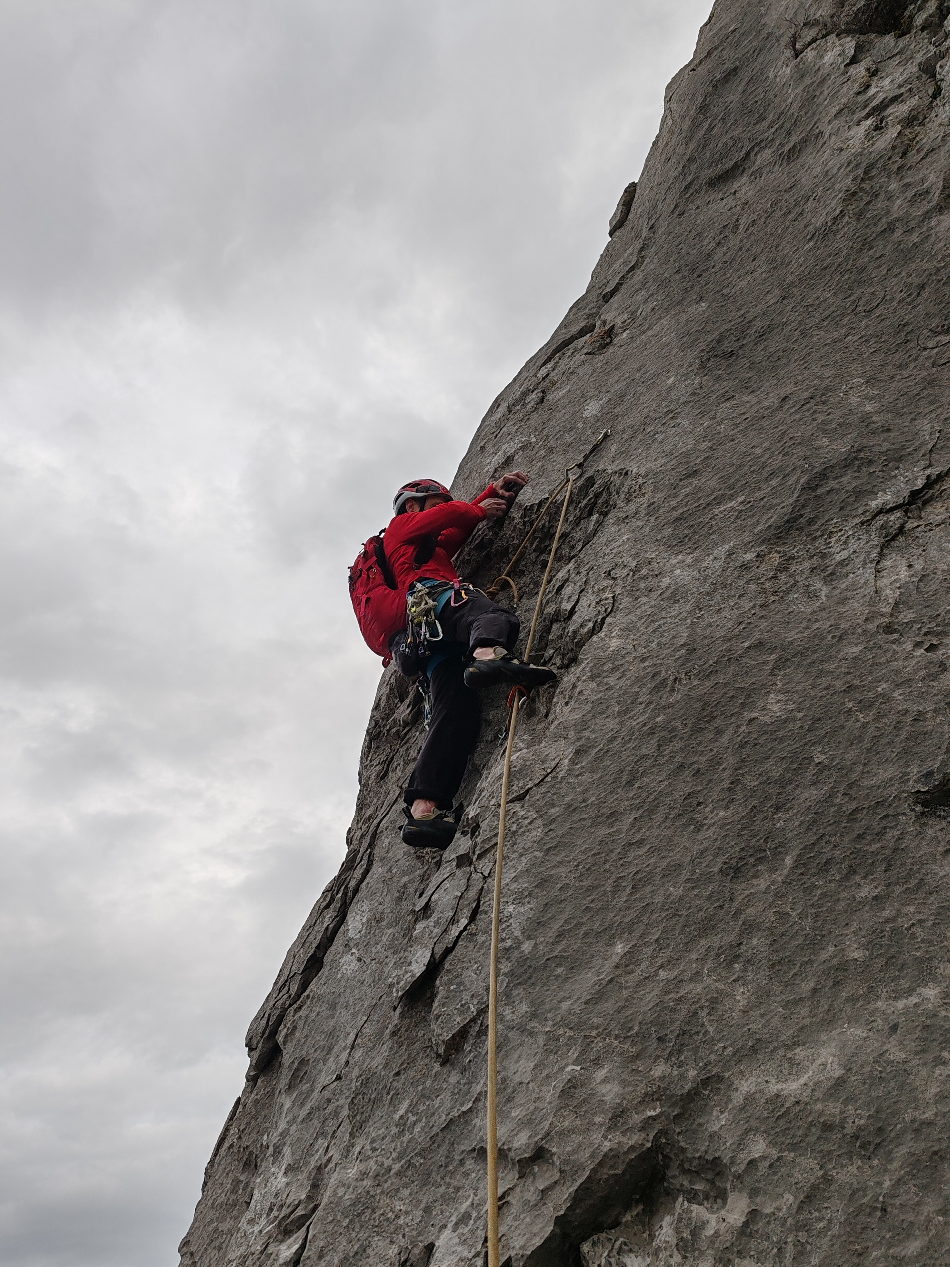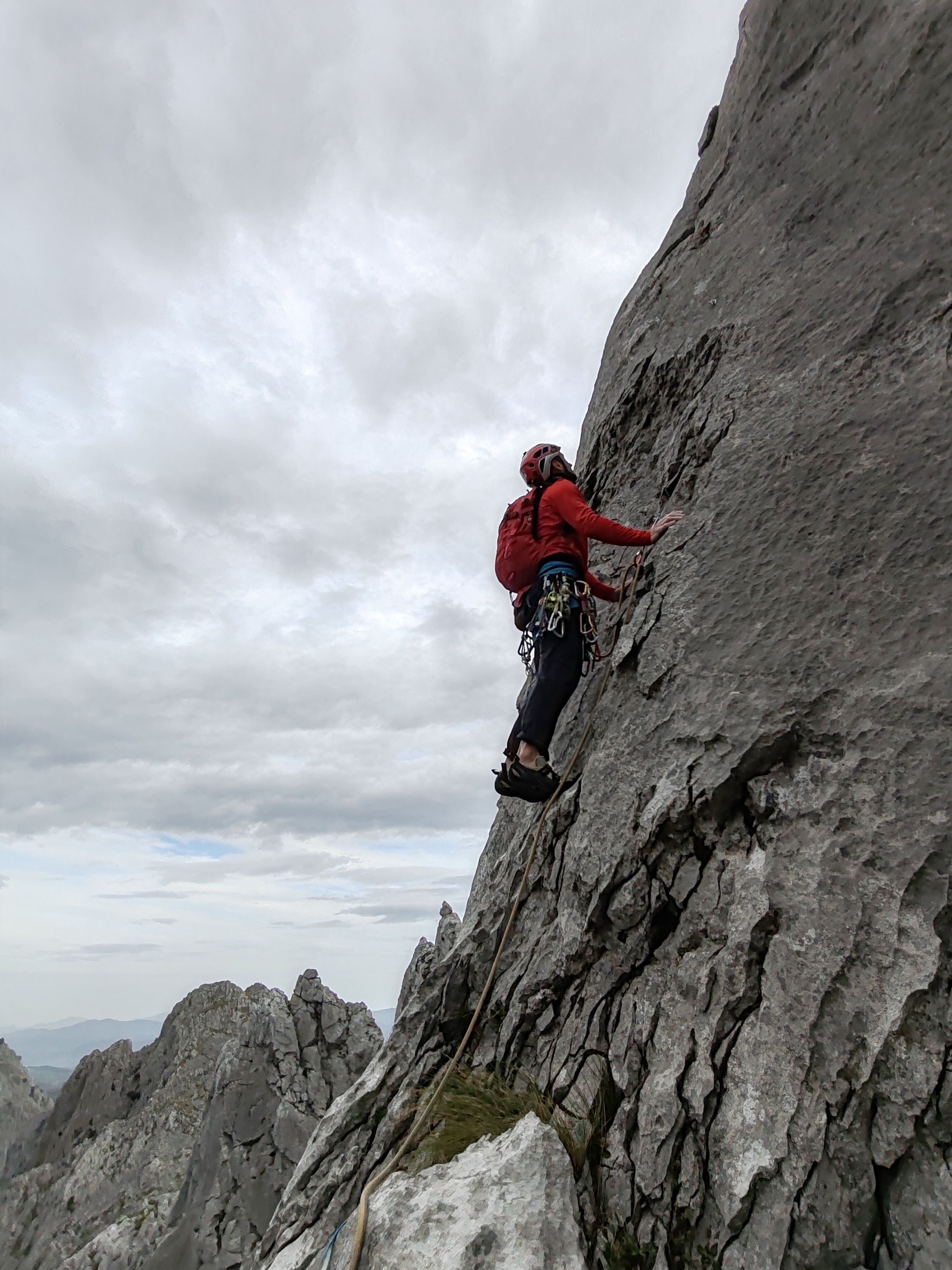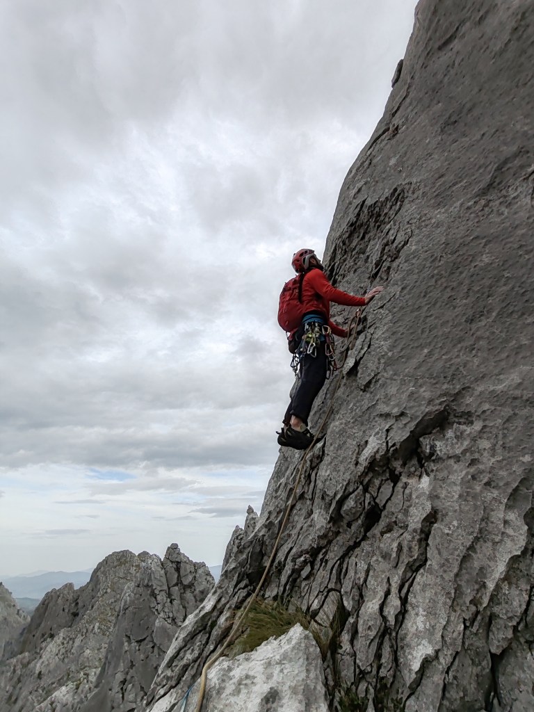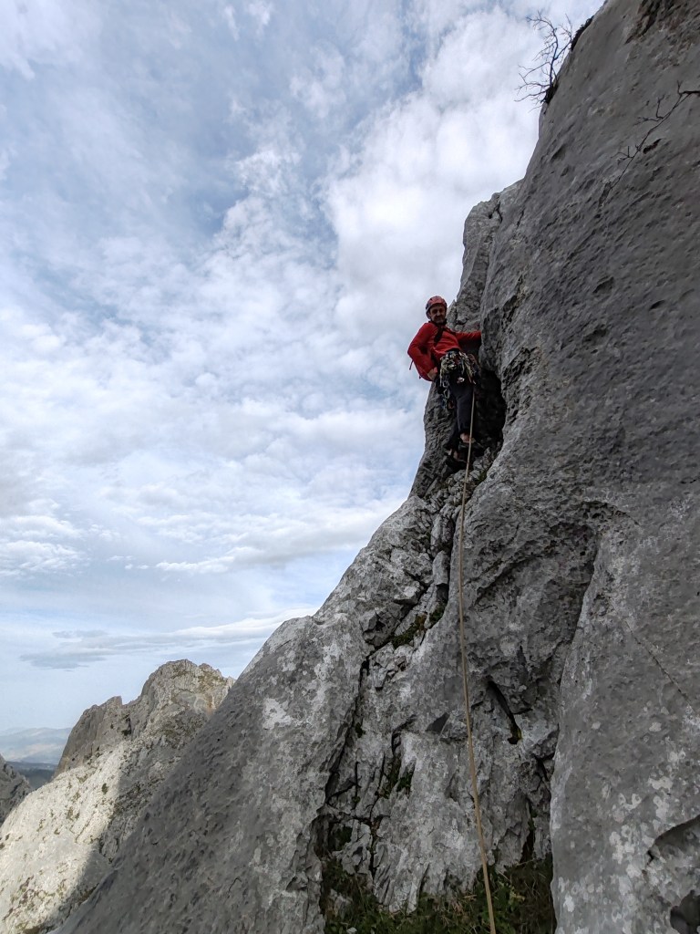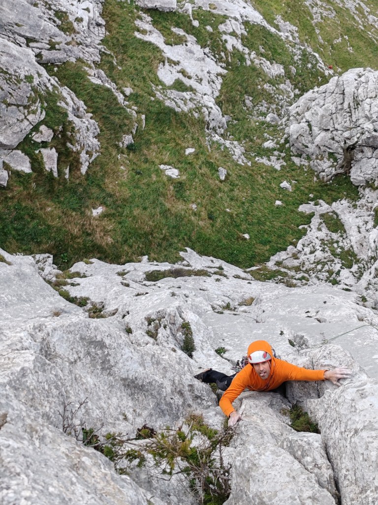 Desde la reunión, andamos 10 metros hacia la izquierda hasta el gran ojo (Tartalo) desde donde aseguramos el siguiente largo.