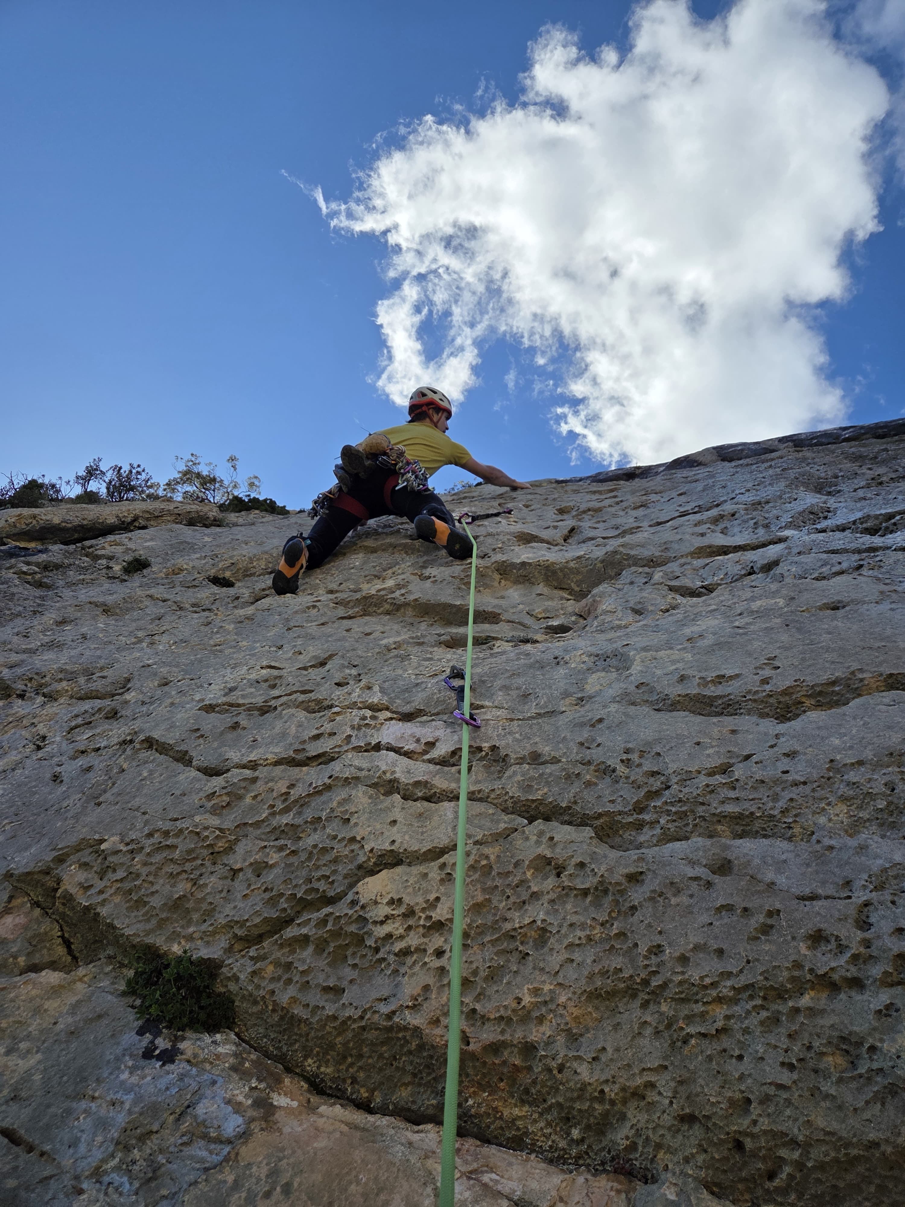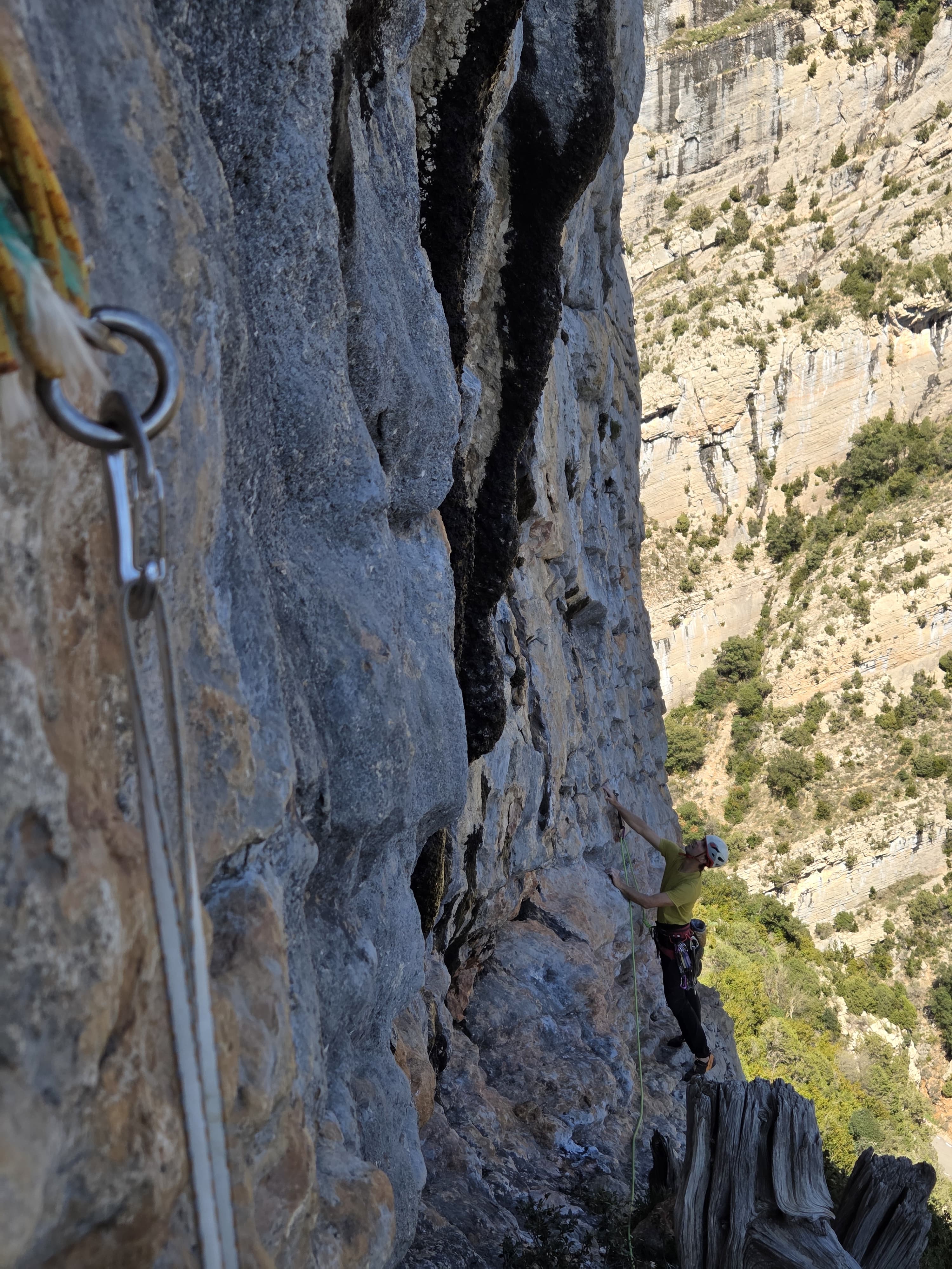 Una vía muy interesante si buscas algo fácil en Vilanova de Meiá. En su grado es una joyita. El tercer largo no te dejará indiferente.