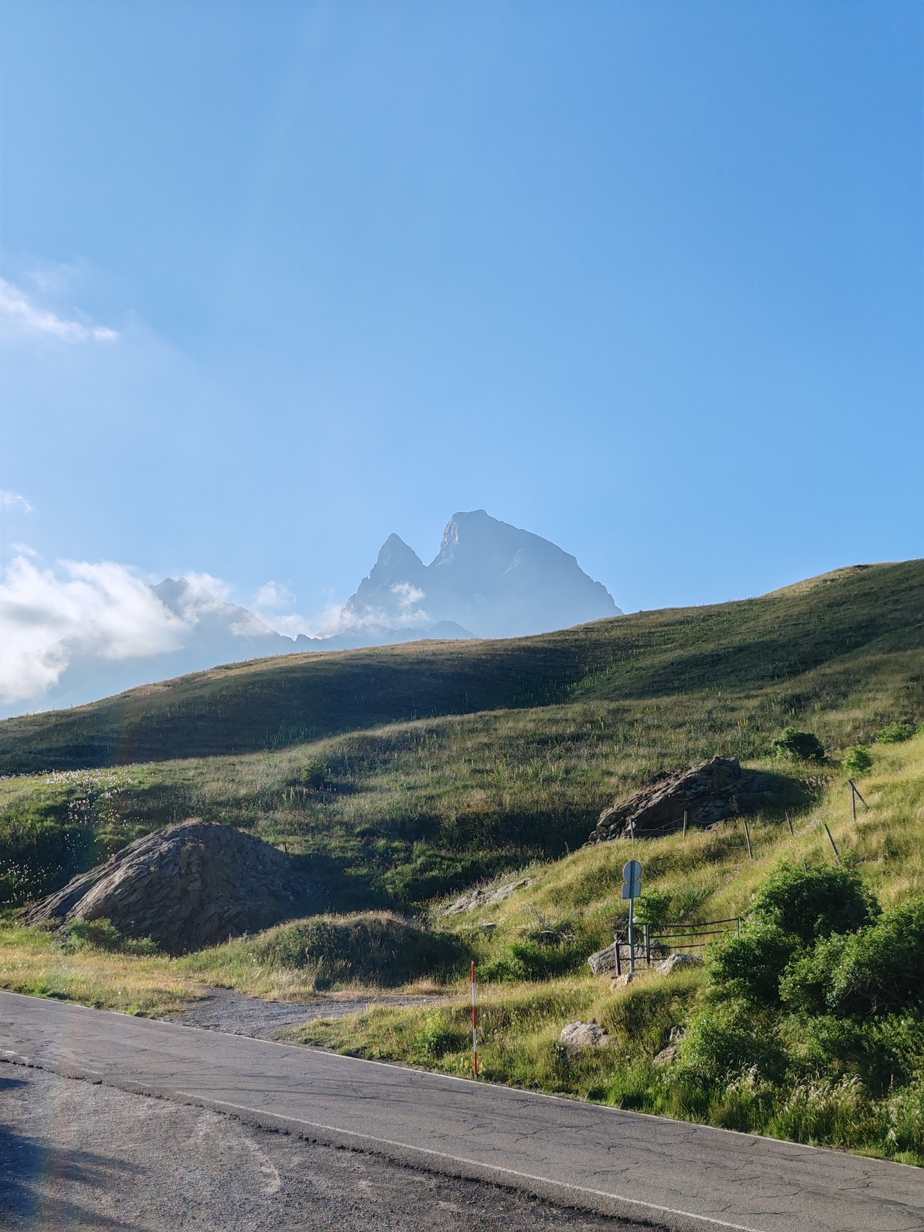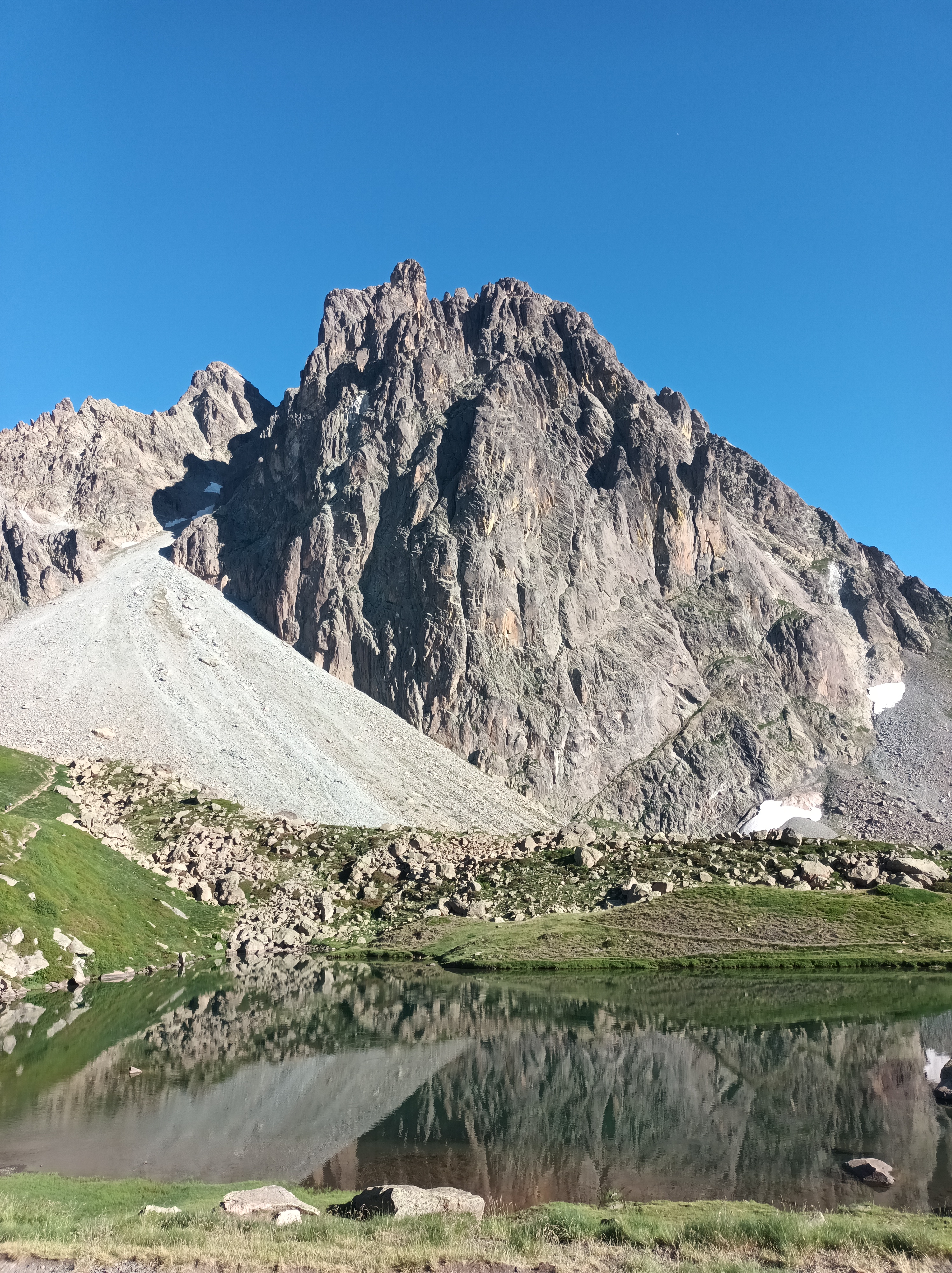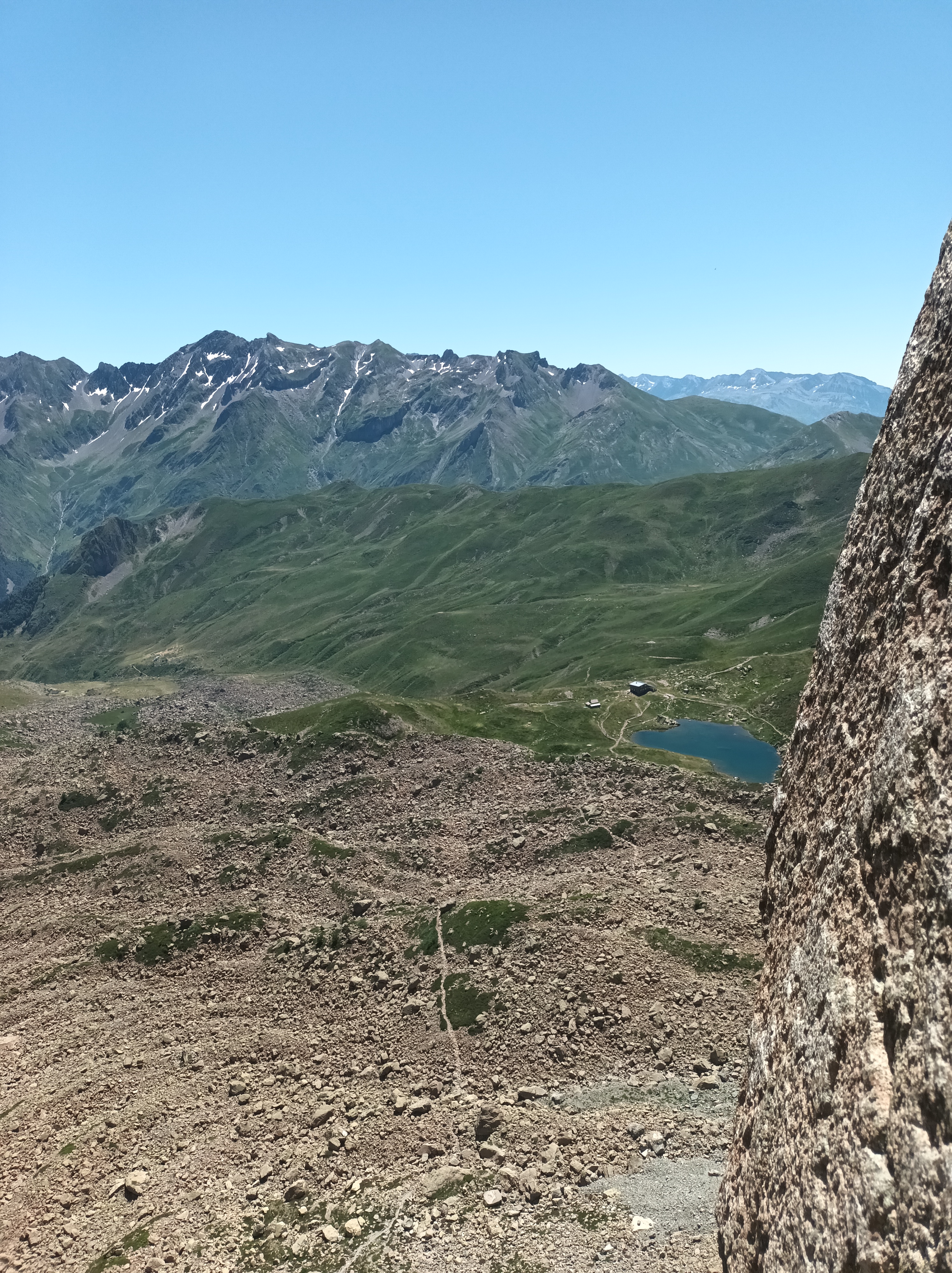 Aproximación: Aparcamos en Portalet y subimos la gran loma que nos separa del Midi D´Ossau. Tras una hora de marcha llegaremos al refugio. Desde el refugio cogemos el sendero que atraviesa la gran pedrera para acercarnos a al base de la Muralla de Pombie.