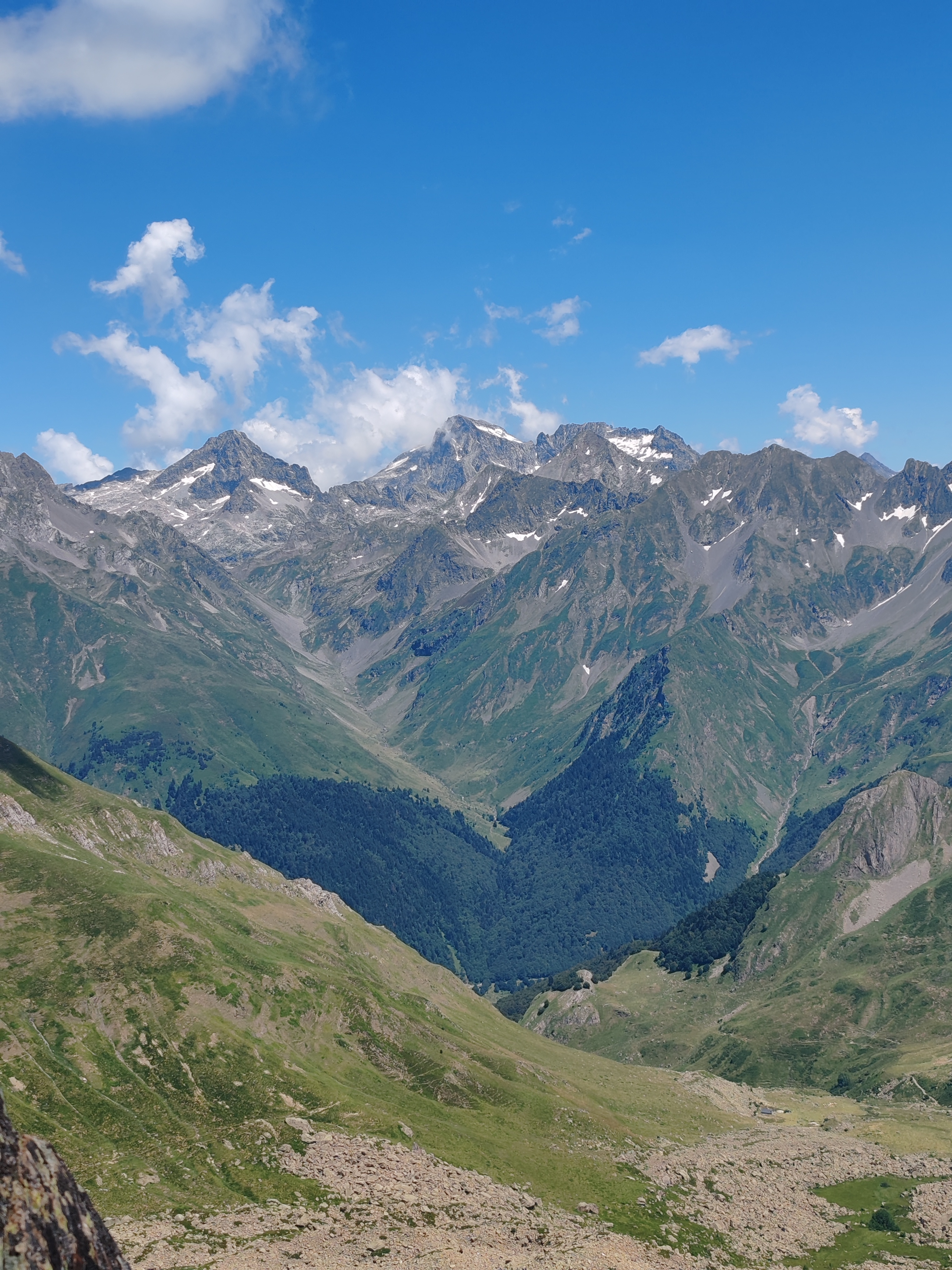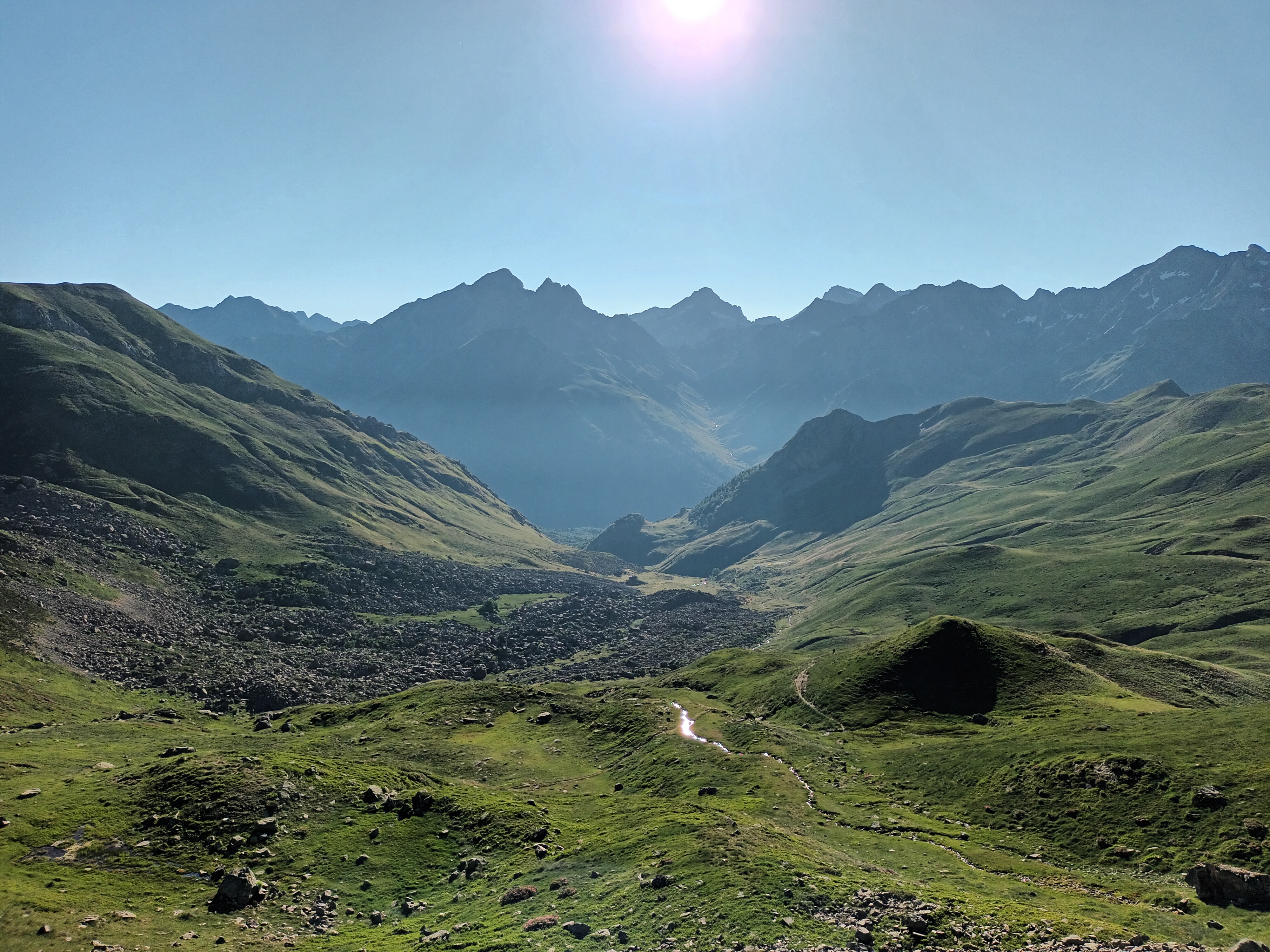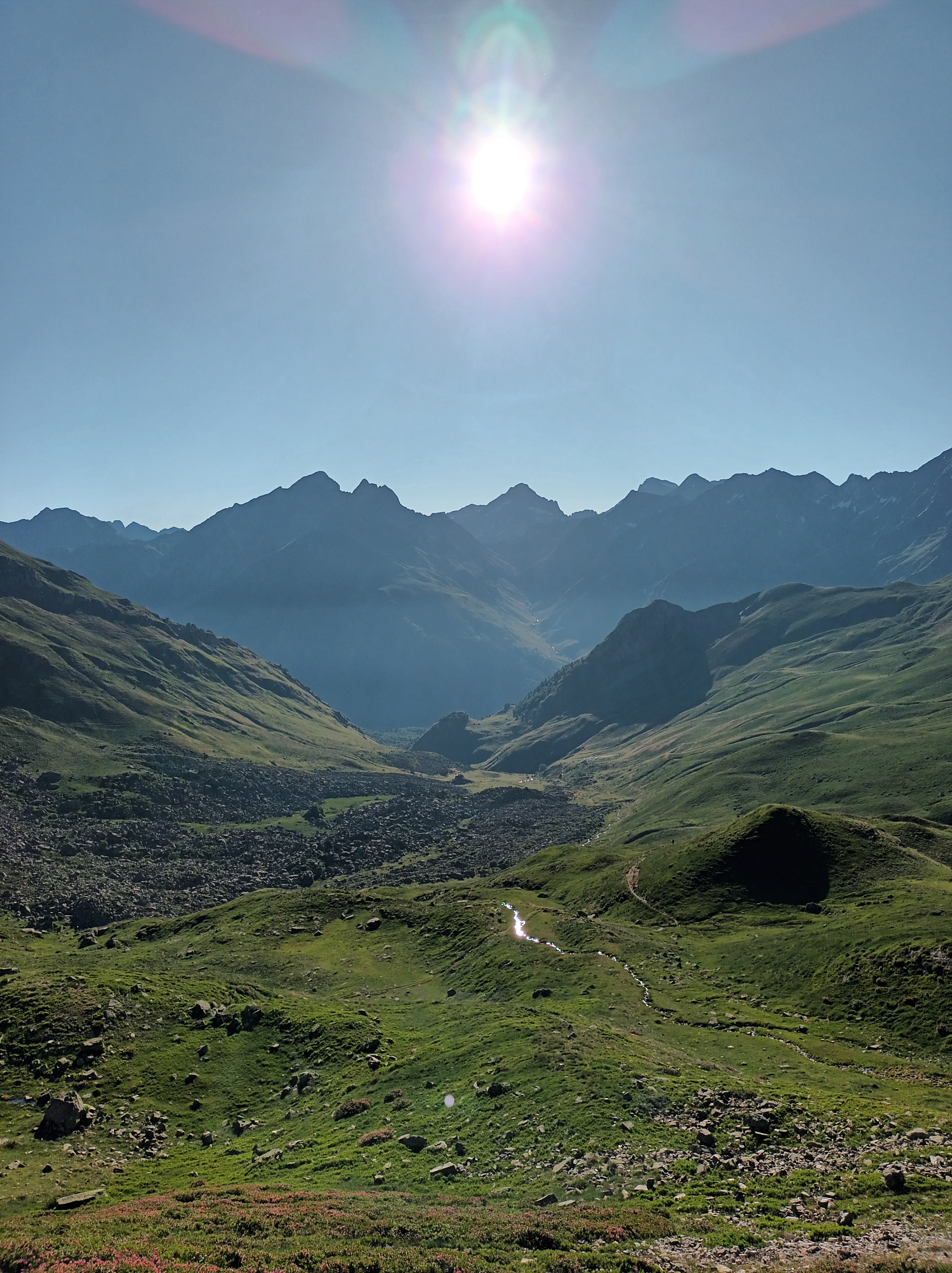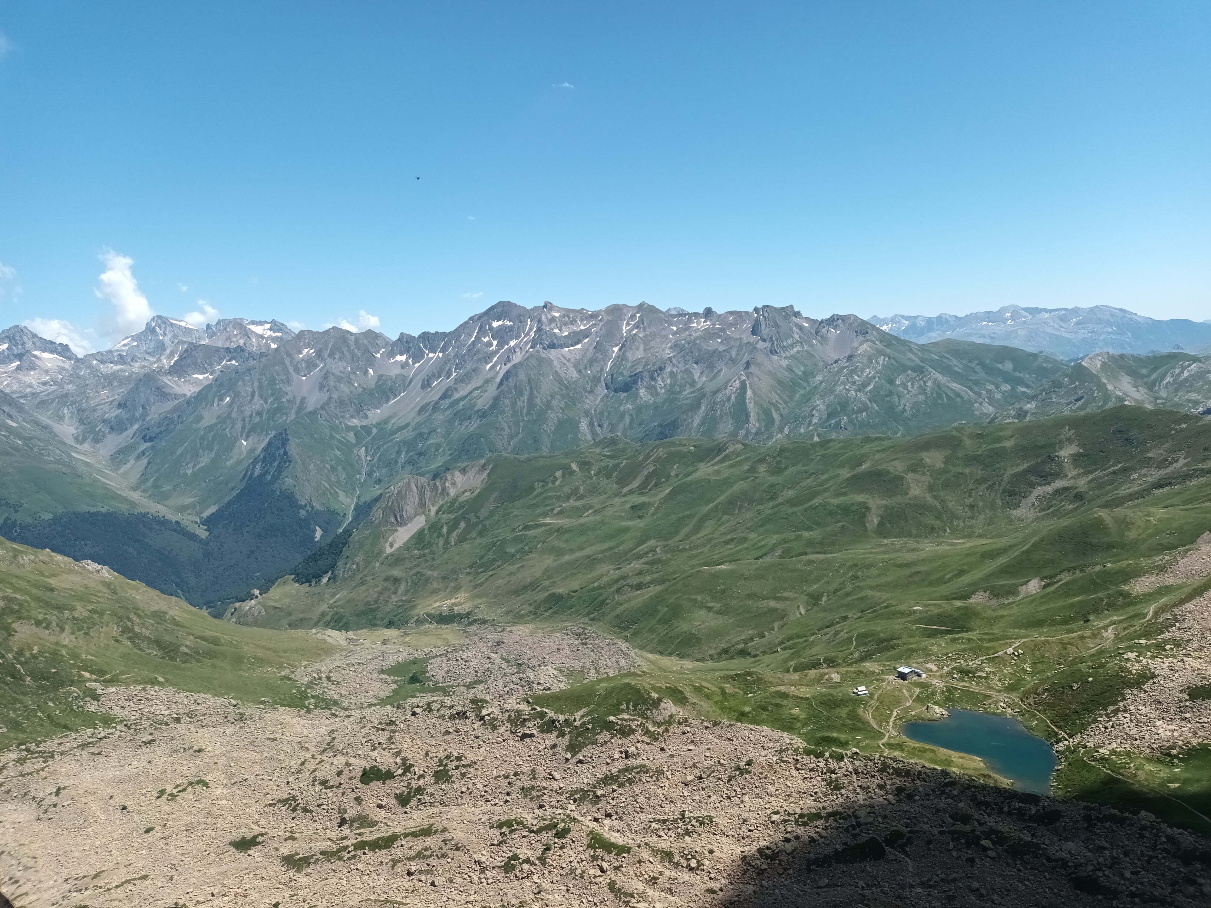 Aproximación: Aparcamos en Portalet y subimos la gran loma que nos separa del Midi D´Ossau. Tras una hora de marcha llegaremos al refugio. Desde el refugio cogemos el sendero que atraviesa la gran pedrera para acercarnos a al base de la Muralla de Pombie.