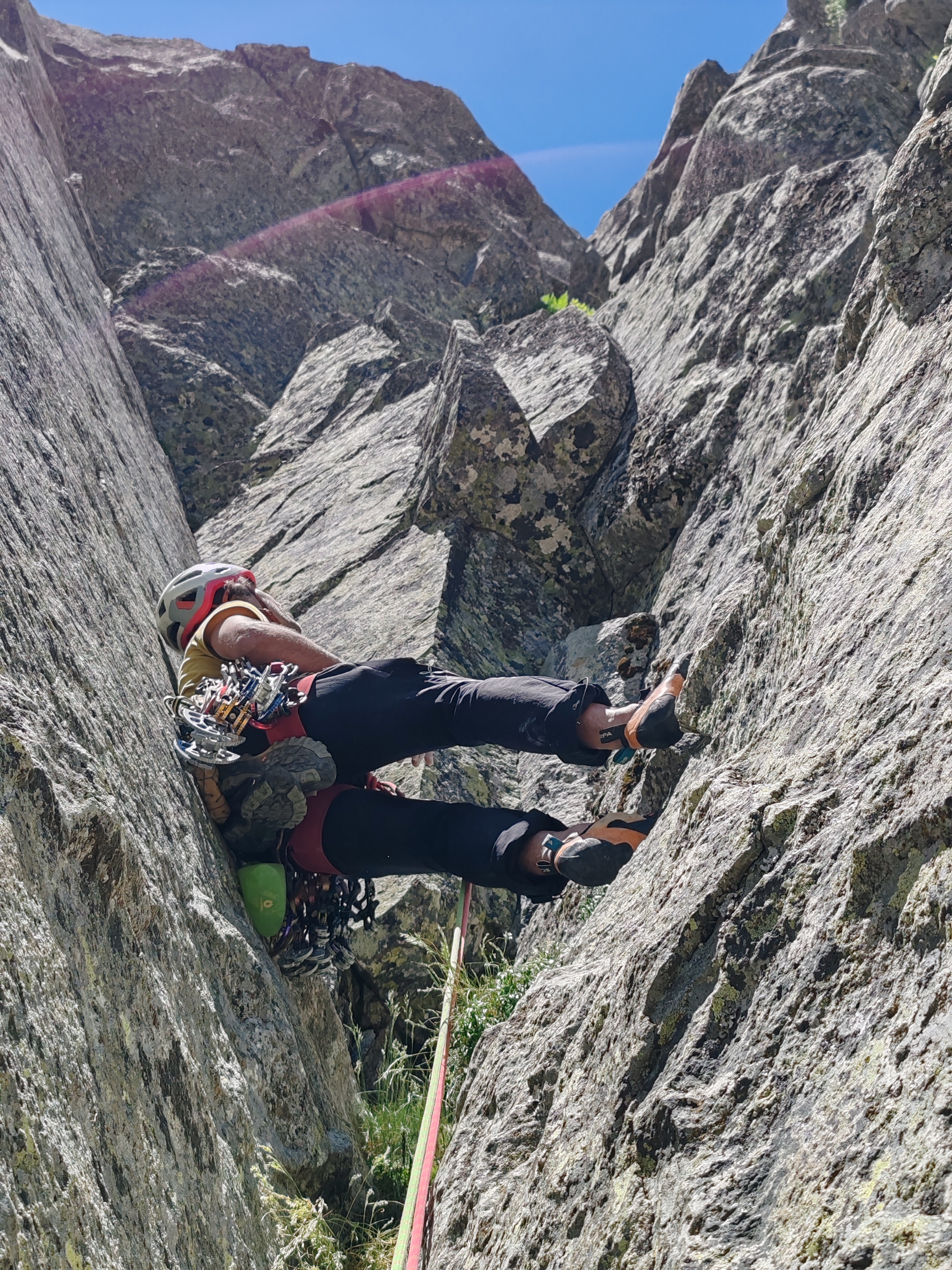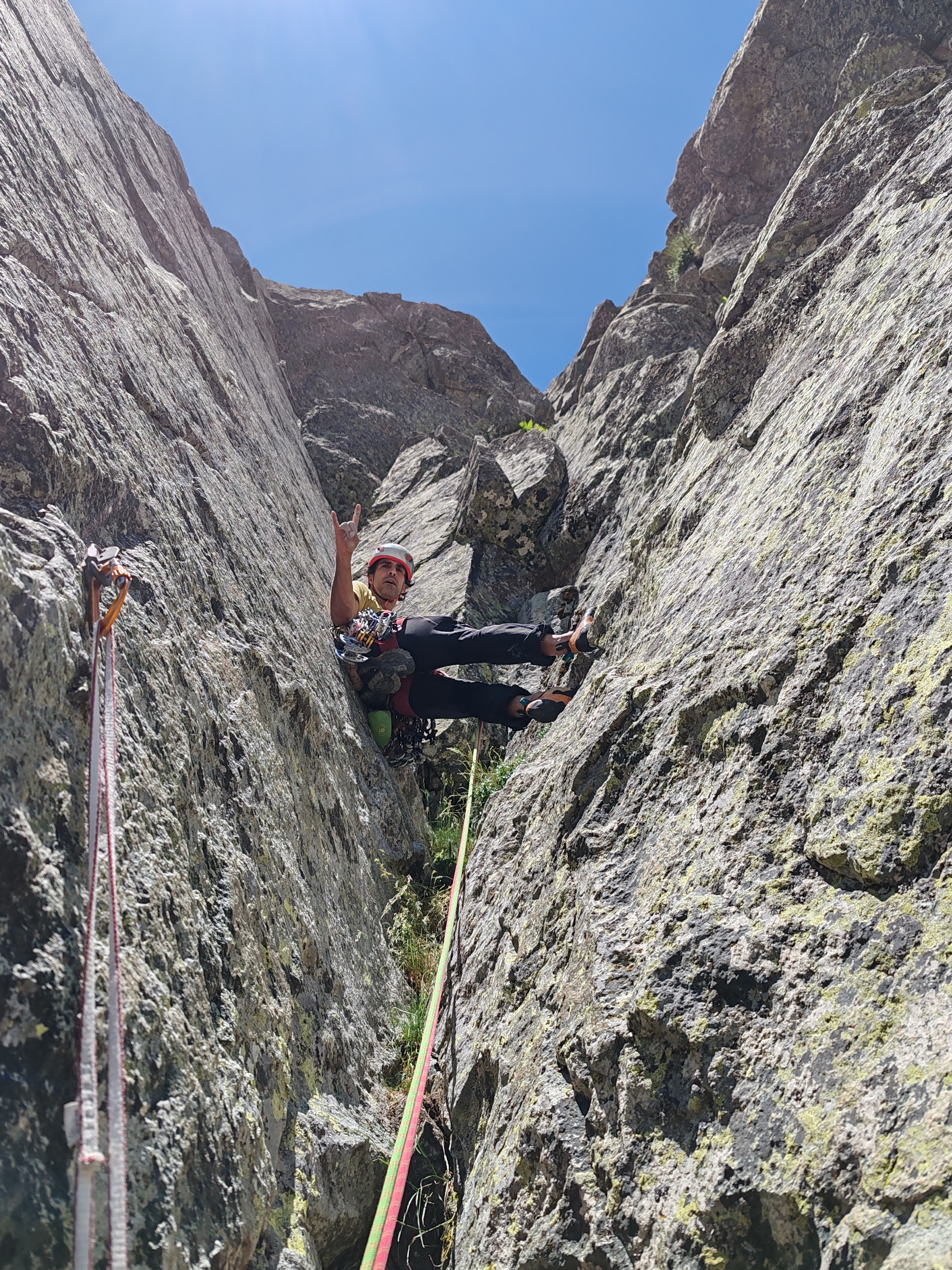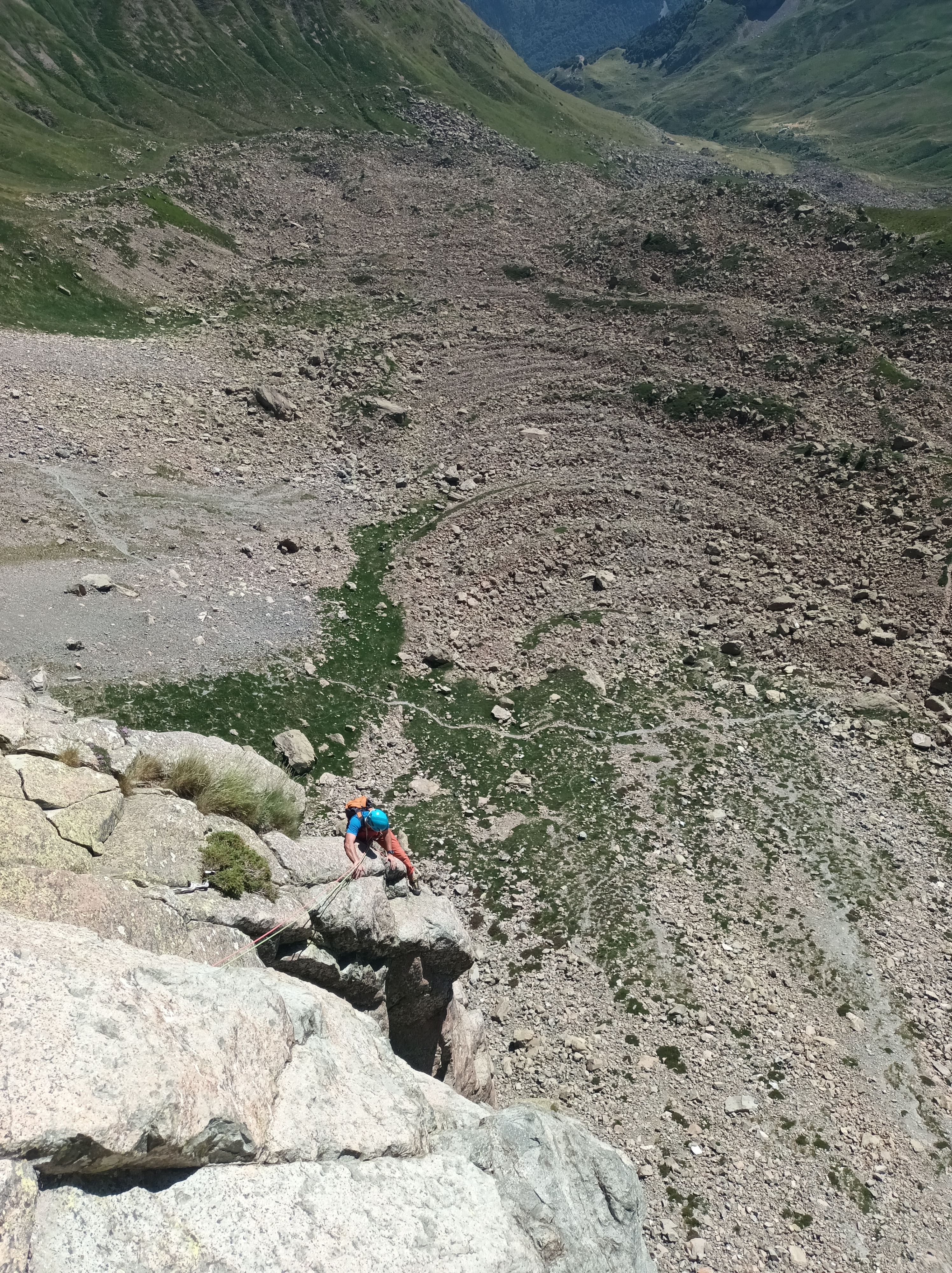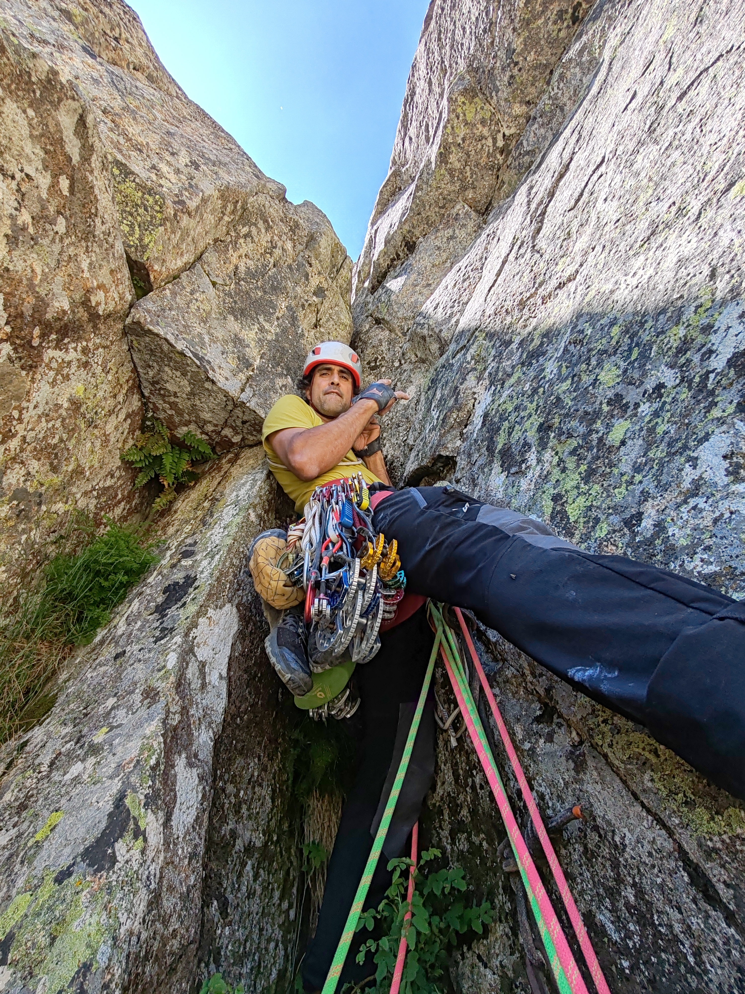 Después más sencillo hasta la reunión. (Reunión incómoda sobre dos clavos medio salidos y un friend empotrado, con una laja «spanding» a nuestra derecha).
