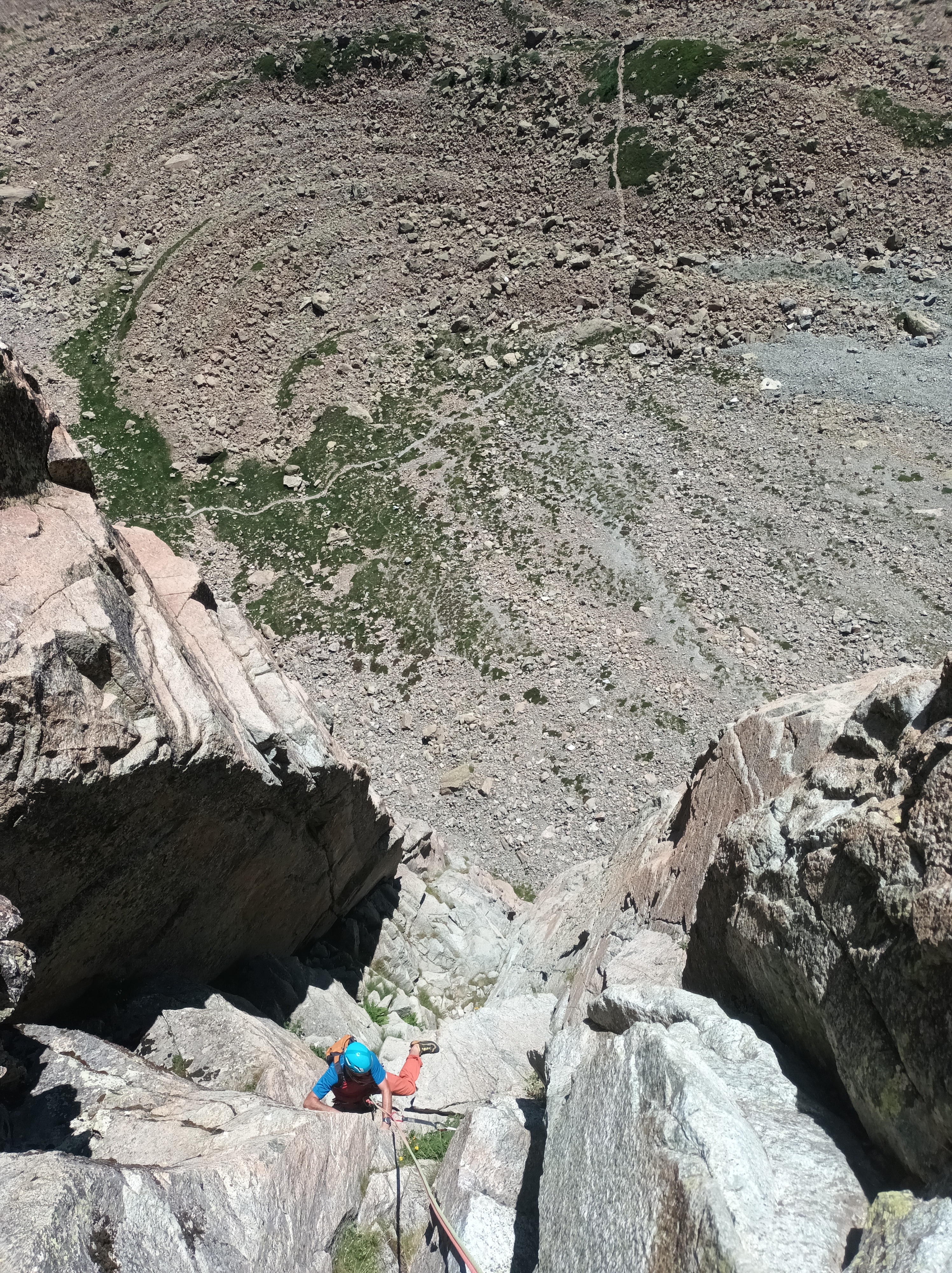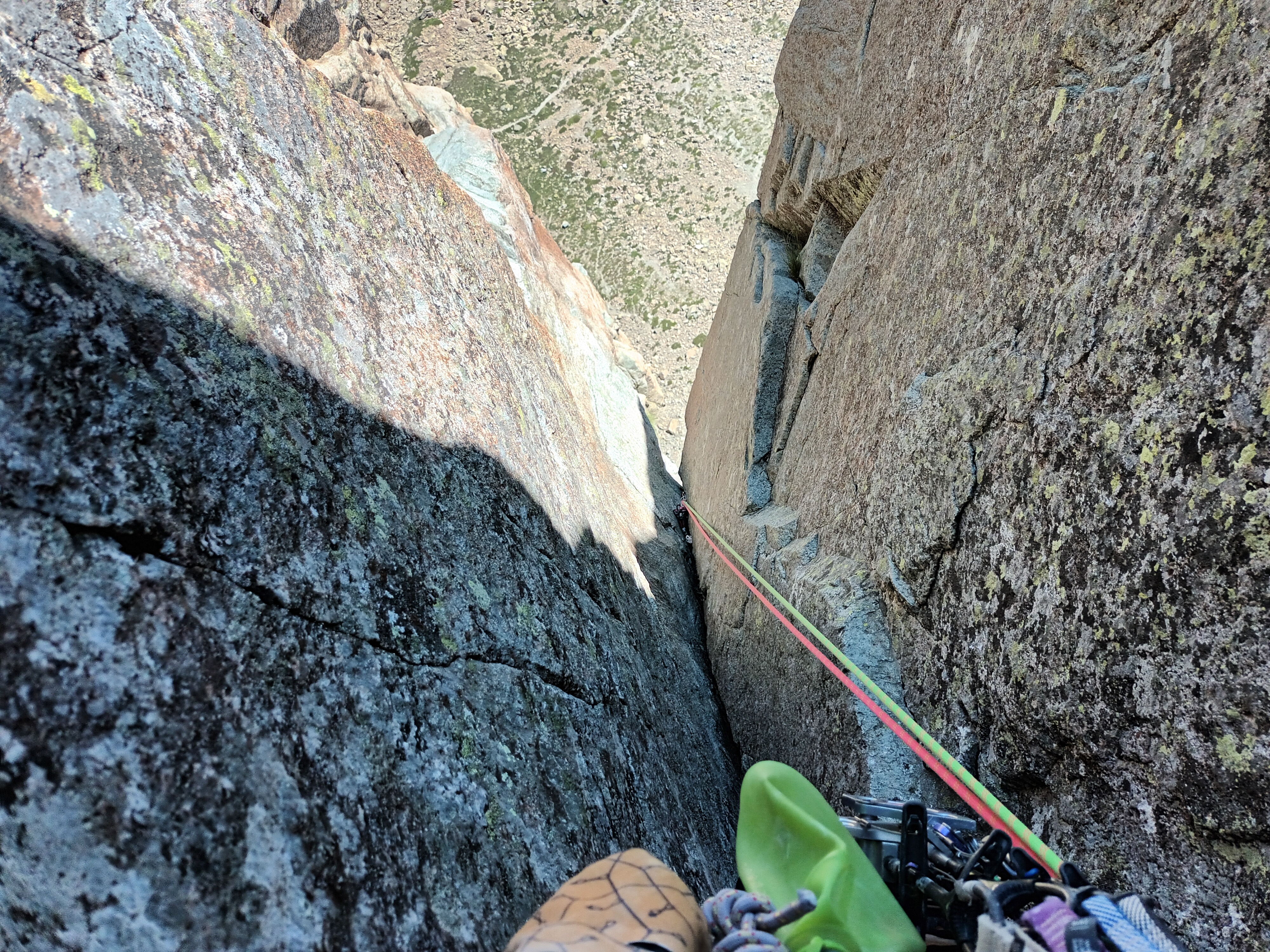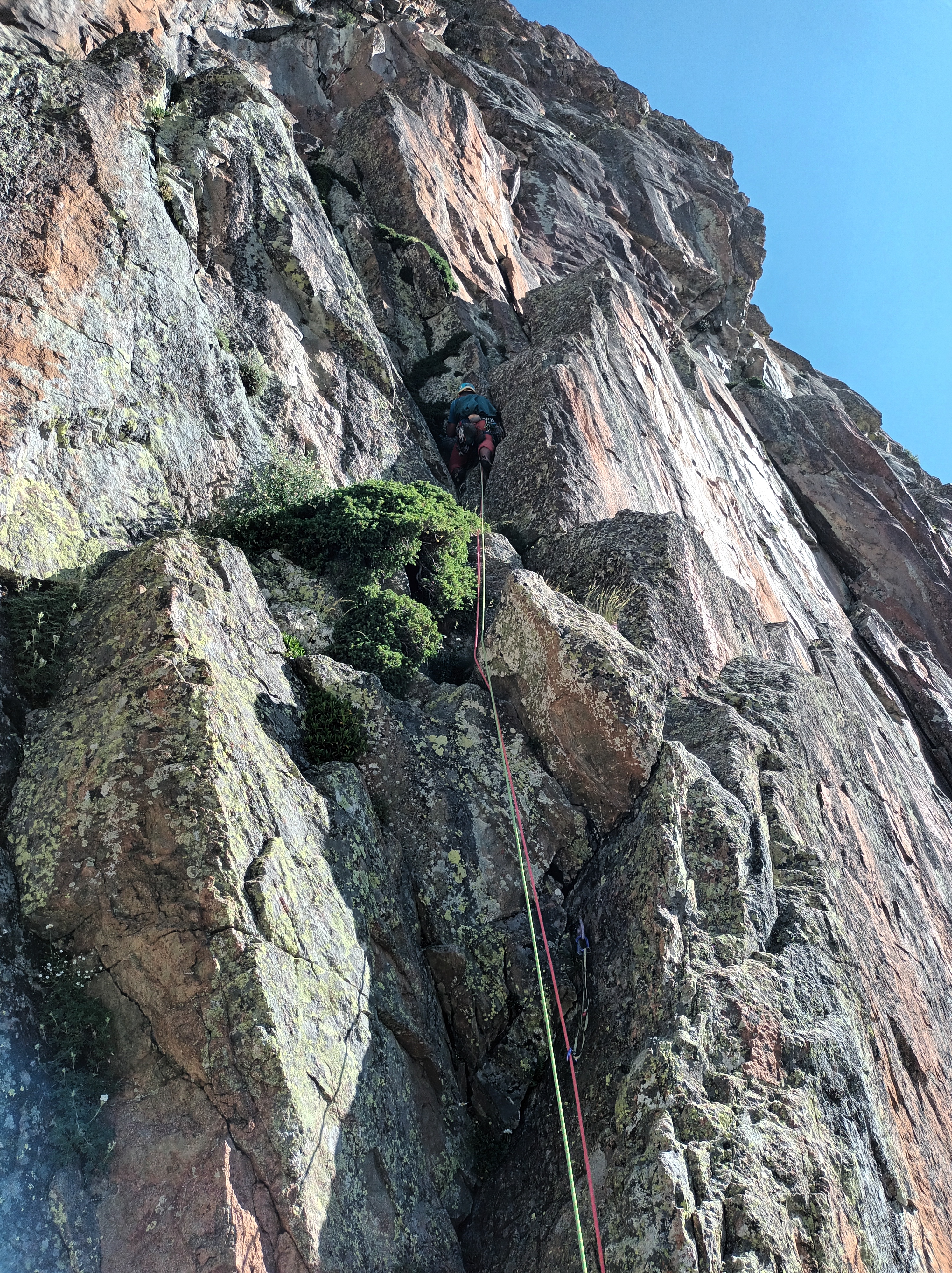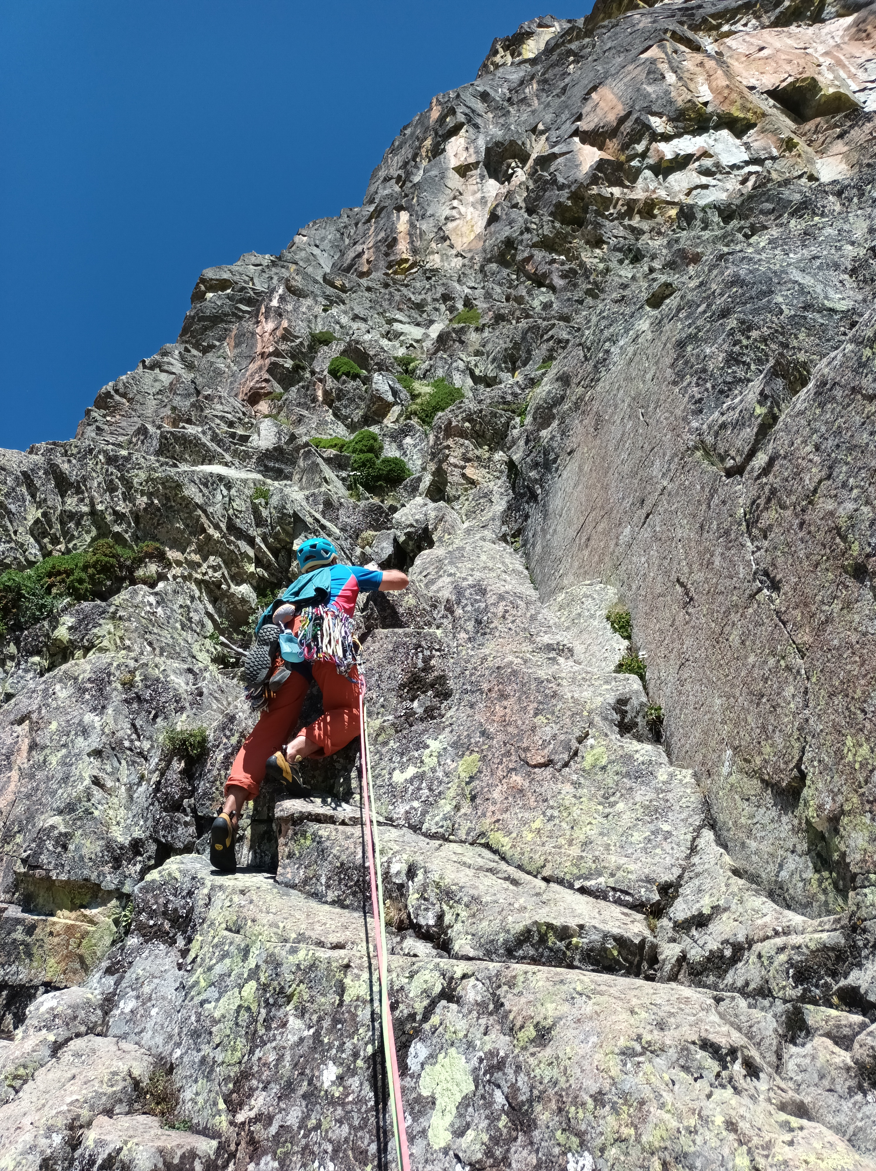 Después más sencillo hasta la reunión. (Reunión incómoda sobre dos clavos medio salidos y un friend empotrado, con una laja «spanding» a nuestra derecha).