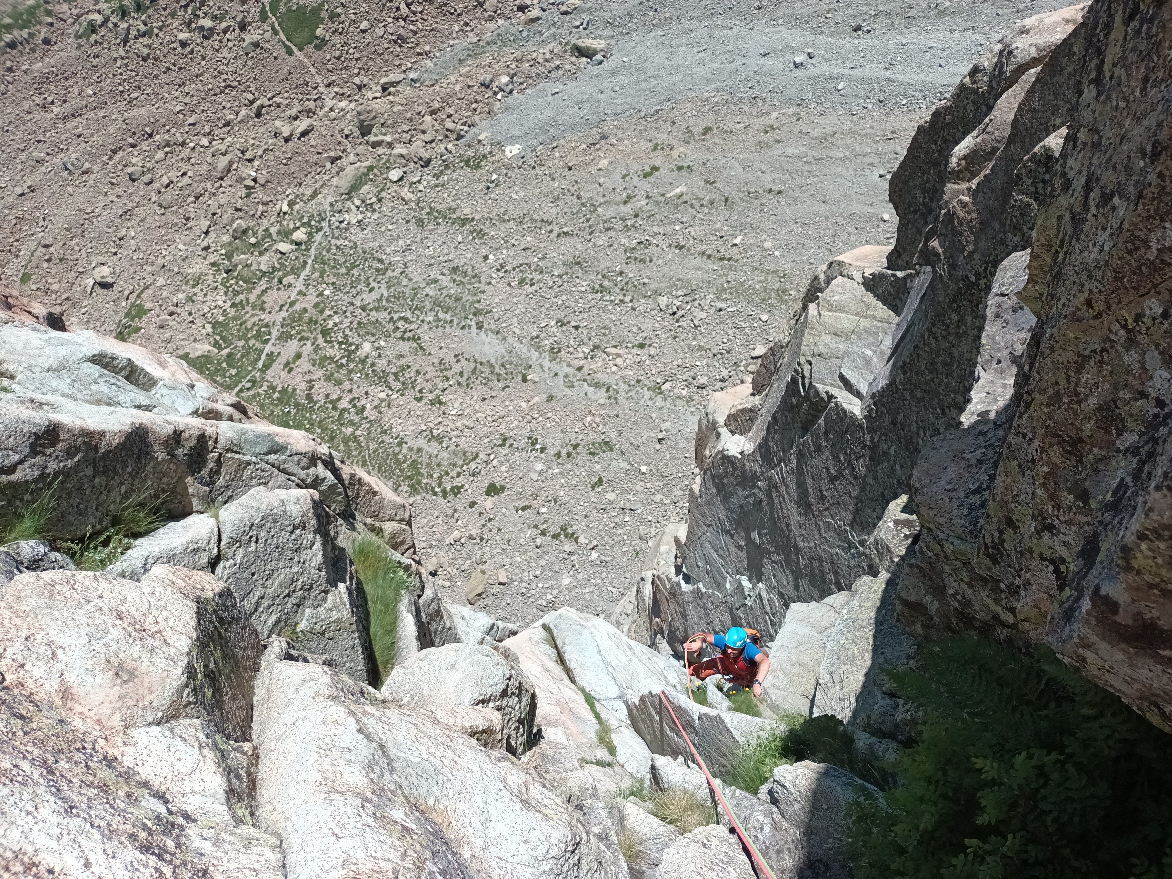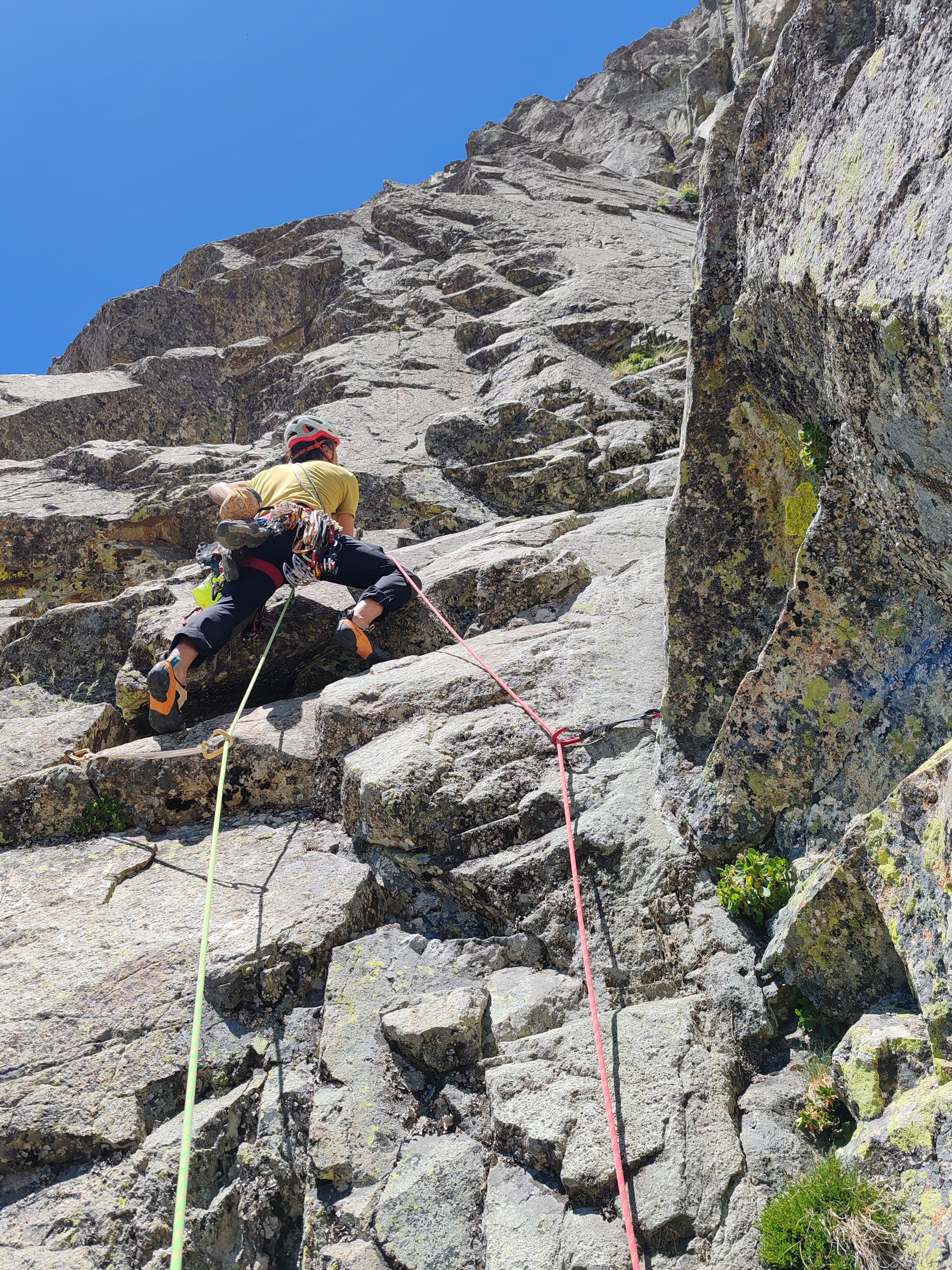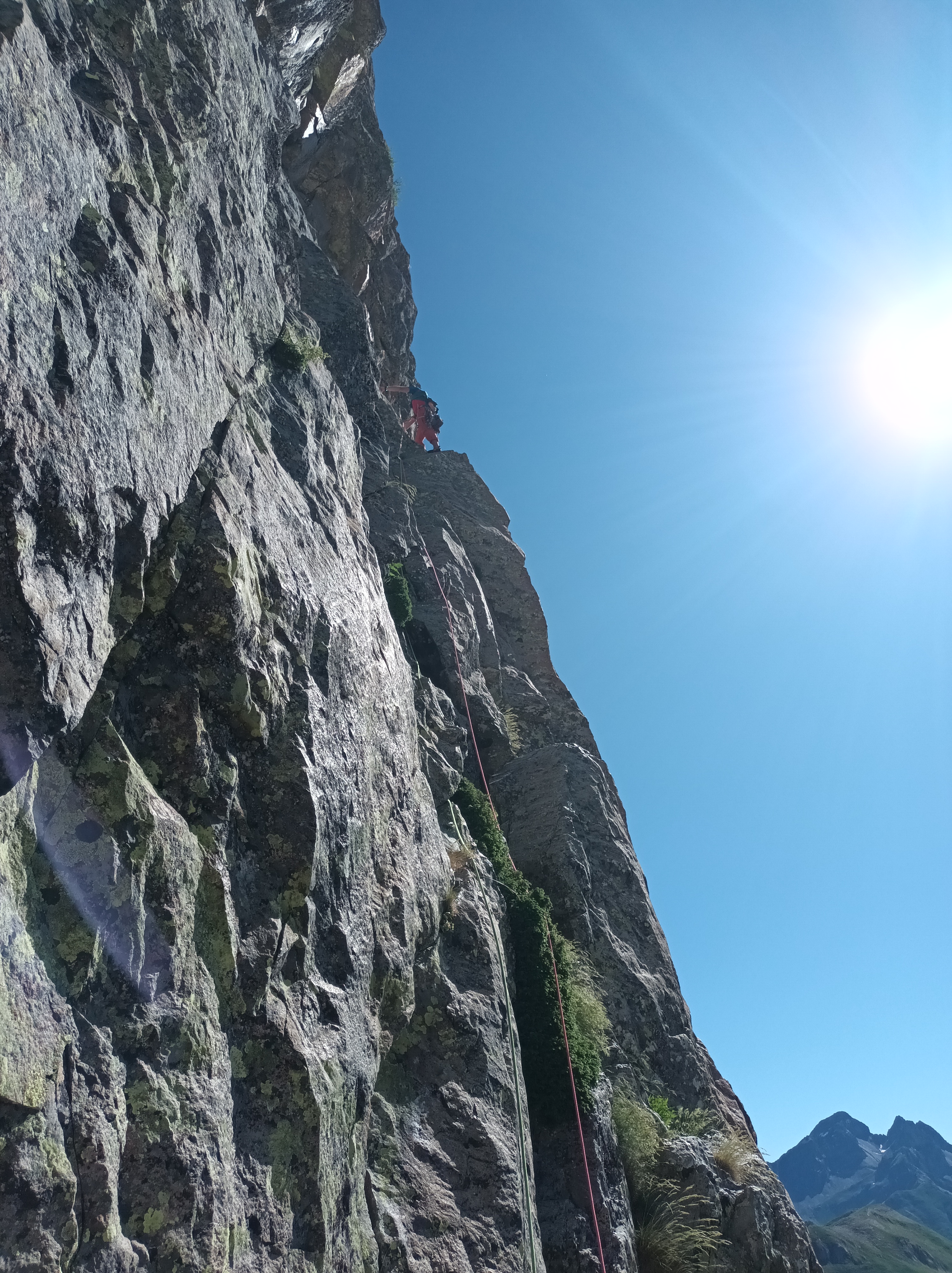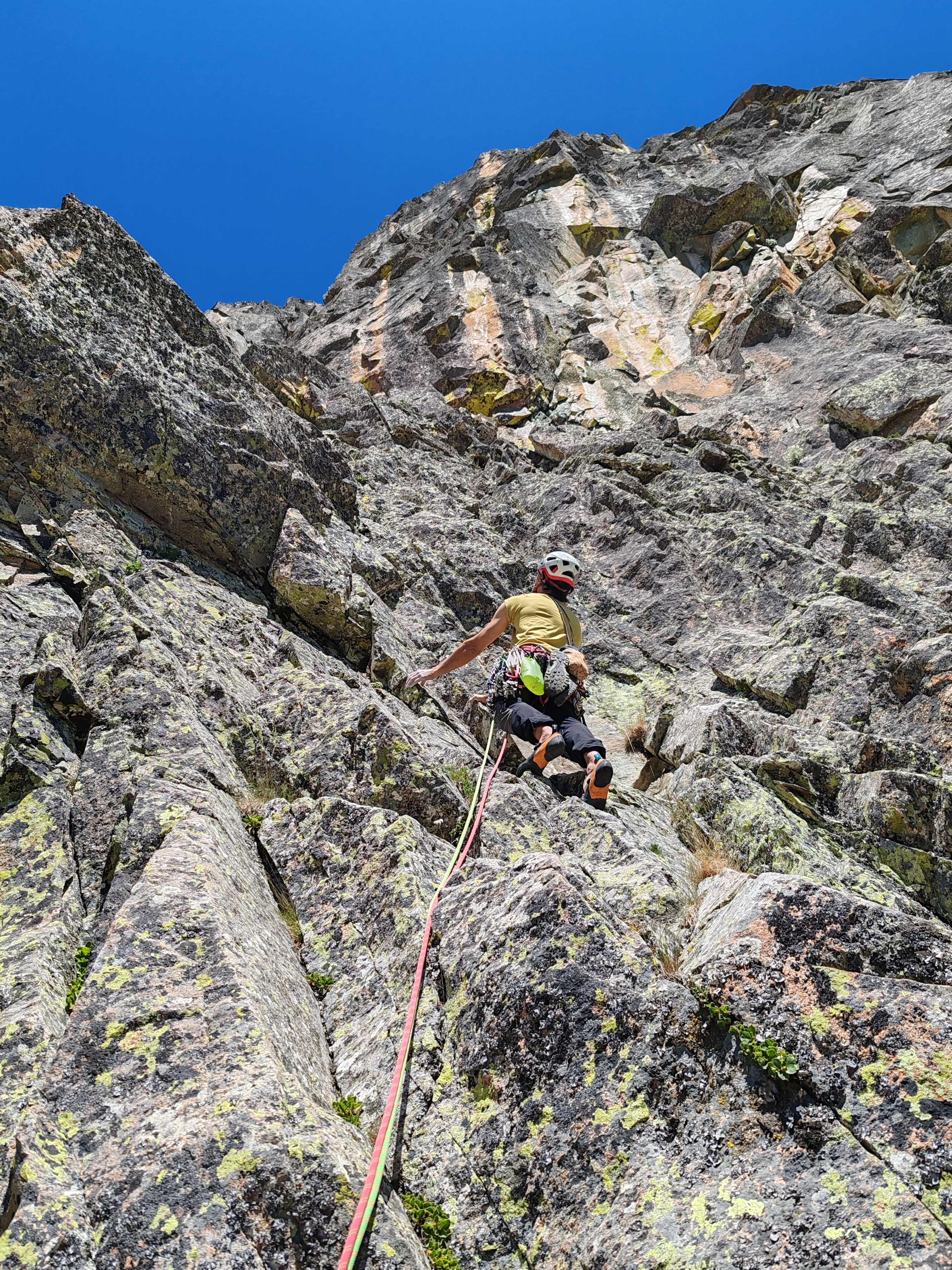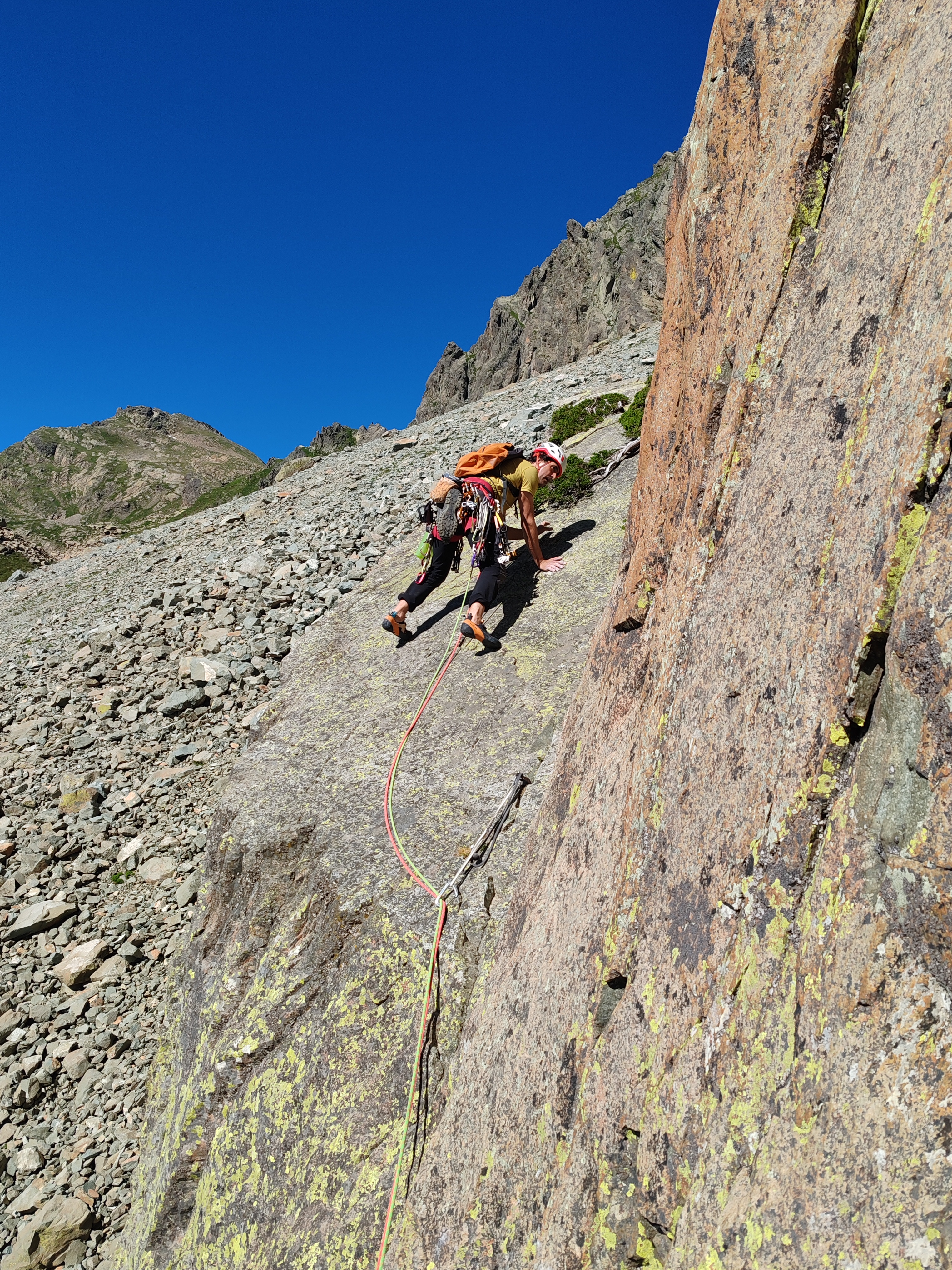 Después más sencillo hasta la reunión. (Reunión incómoda sobre dos clavos medio salidos y un friend empotrado, con una laja «spanding» a nuestra derecha).