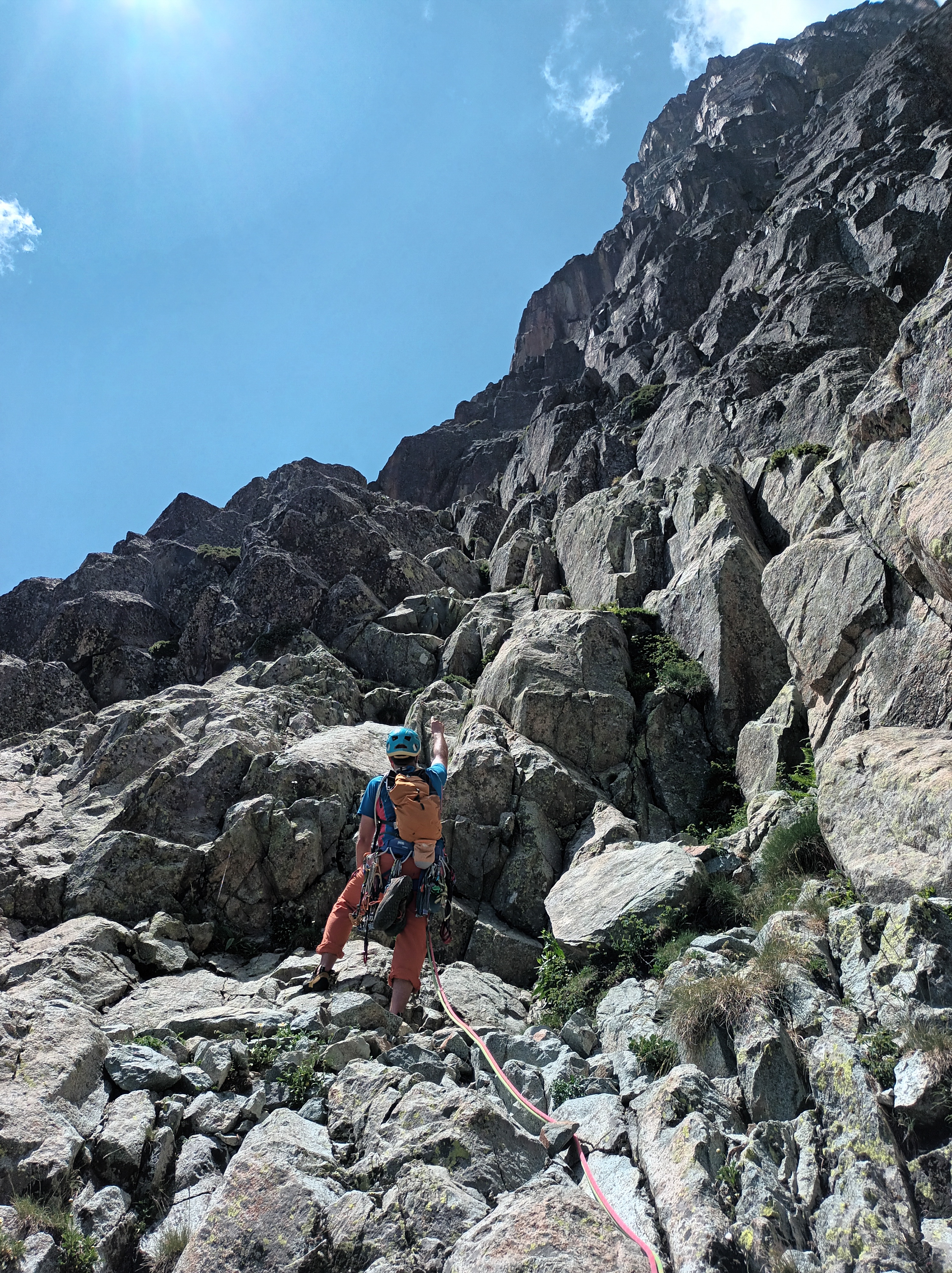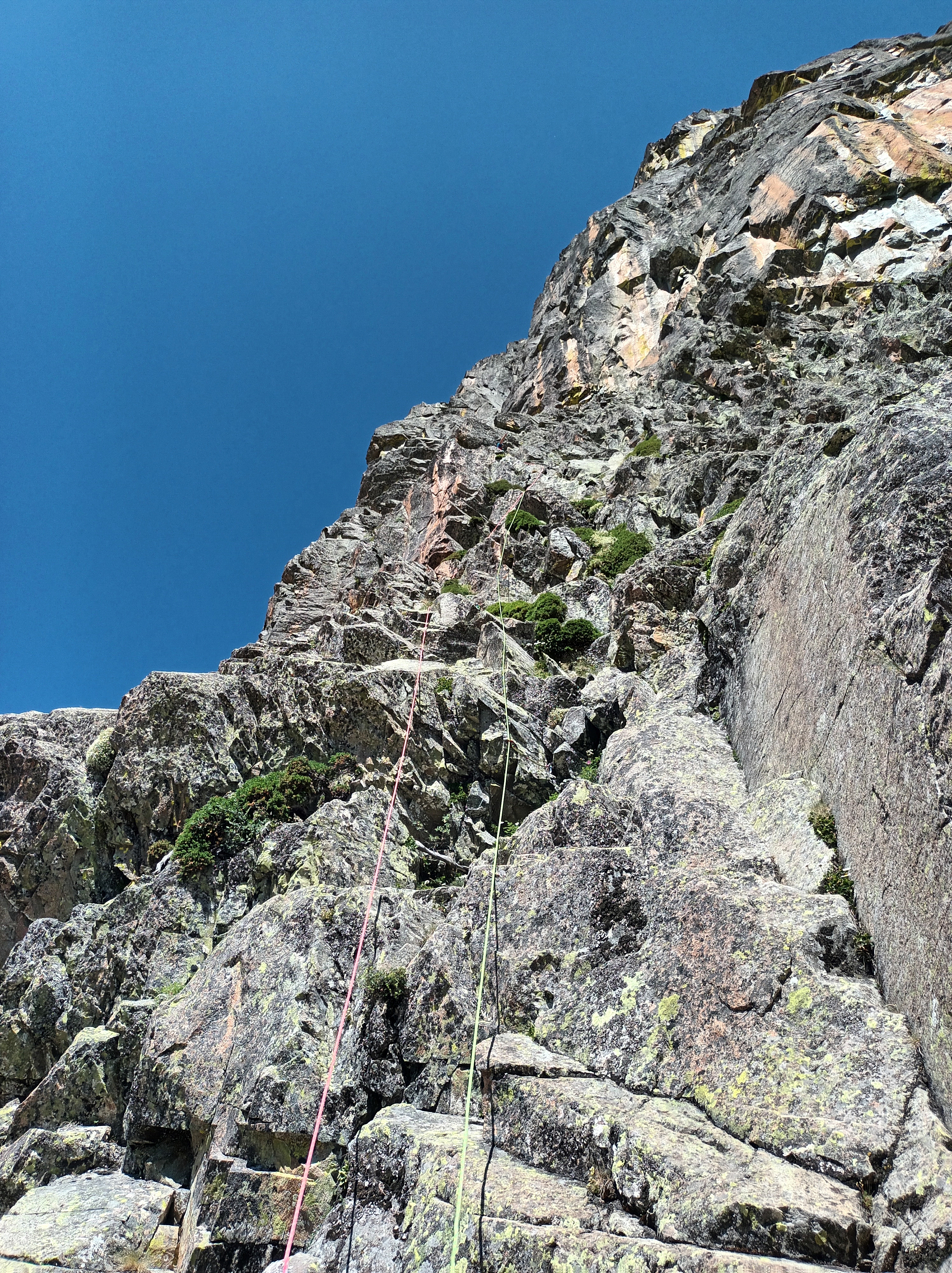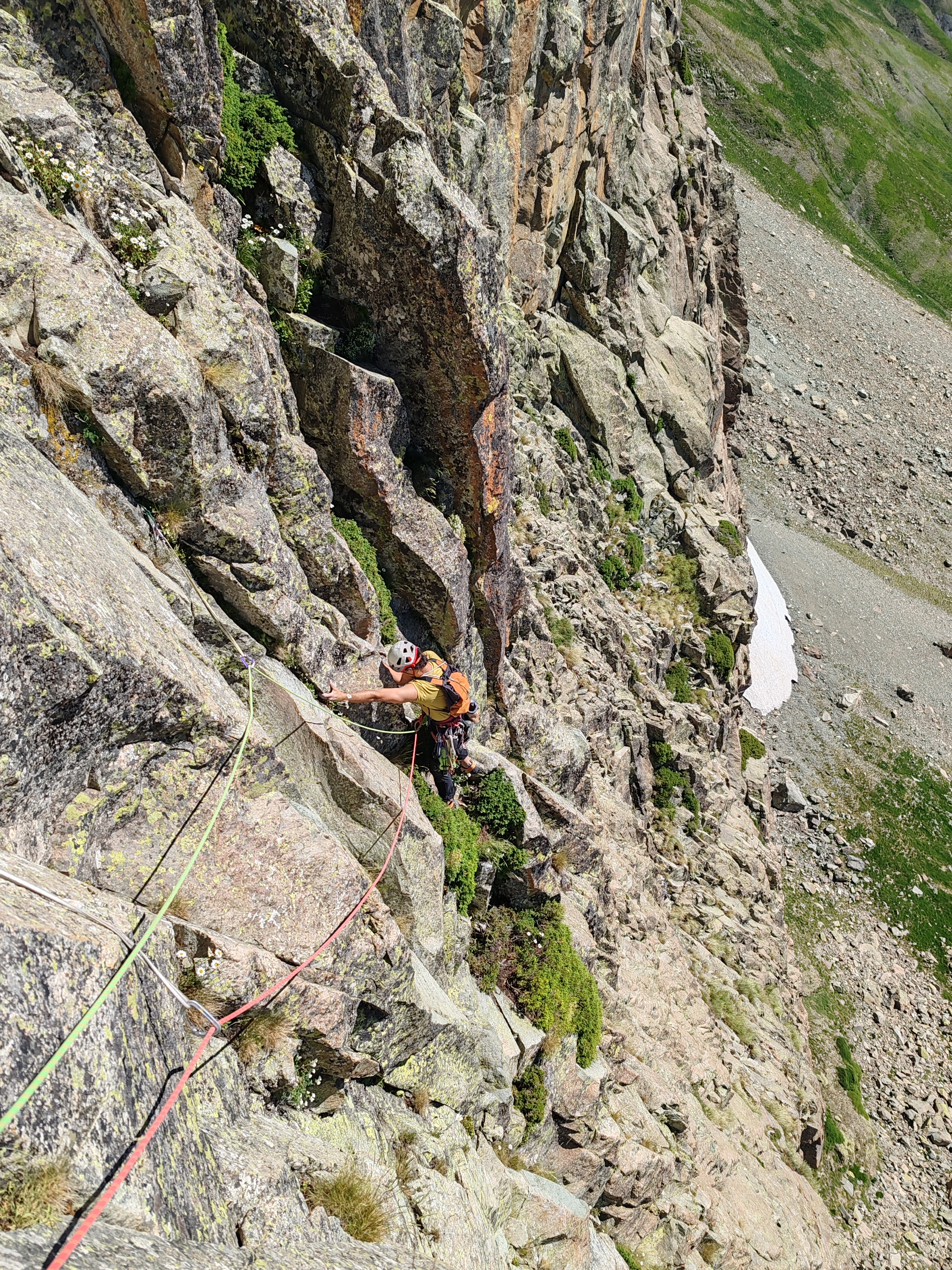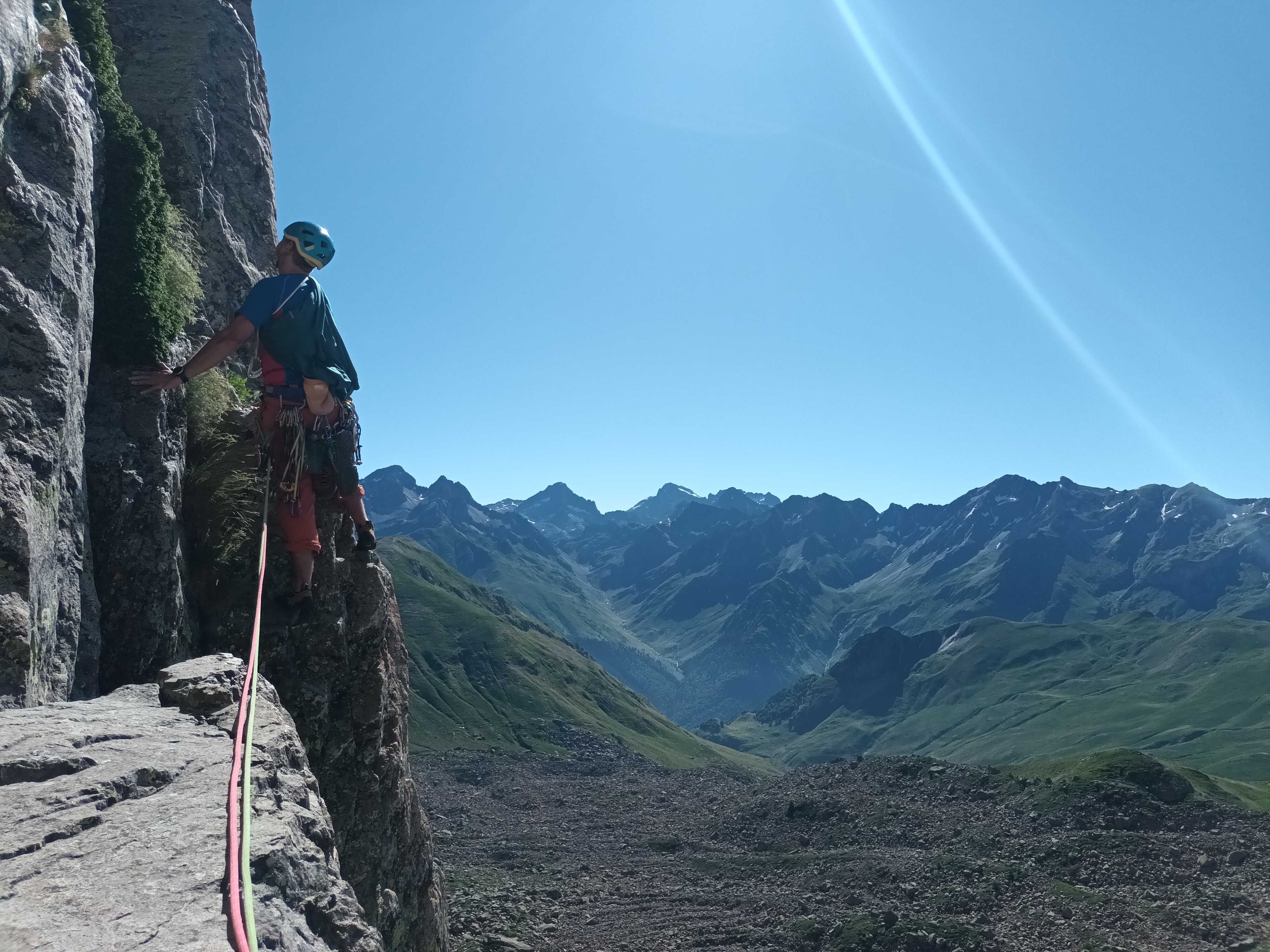 Después más sencillo hasta la reunión. (Reunión incómoda sobre dos clavos medio salidos y un friend empotrado, con una laja «spanding» a nuestra derecha).