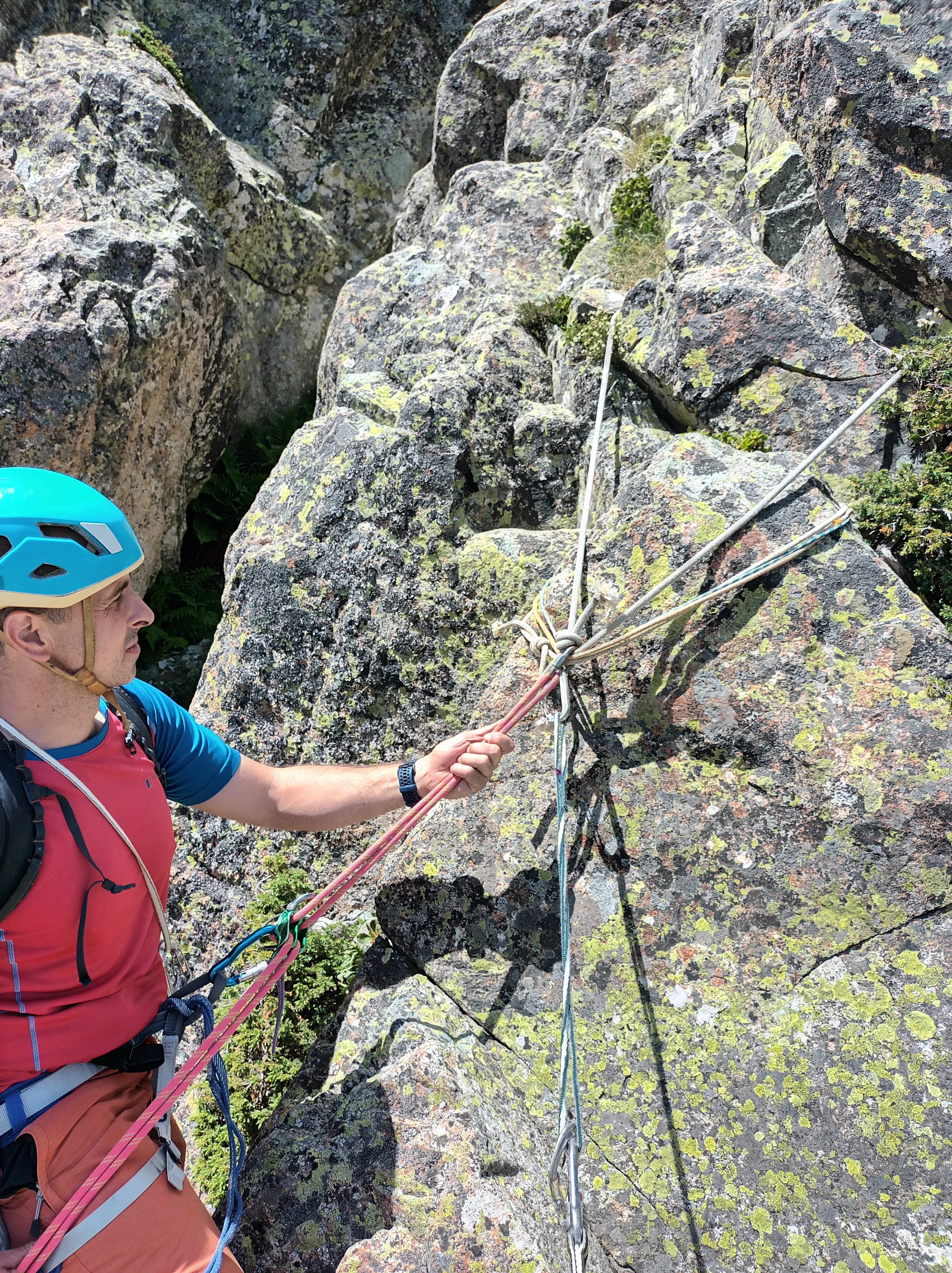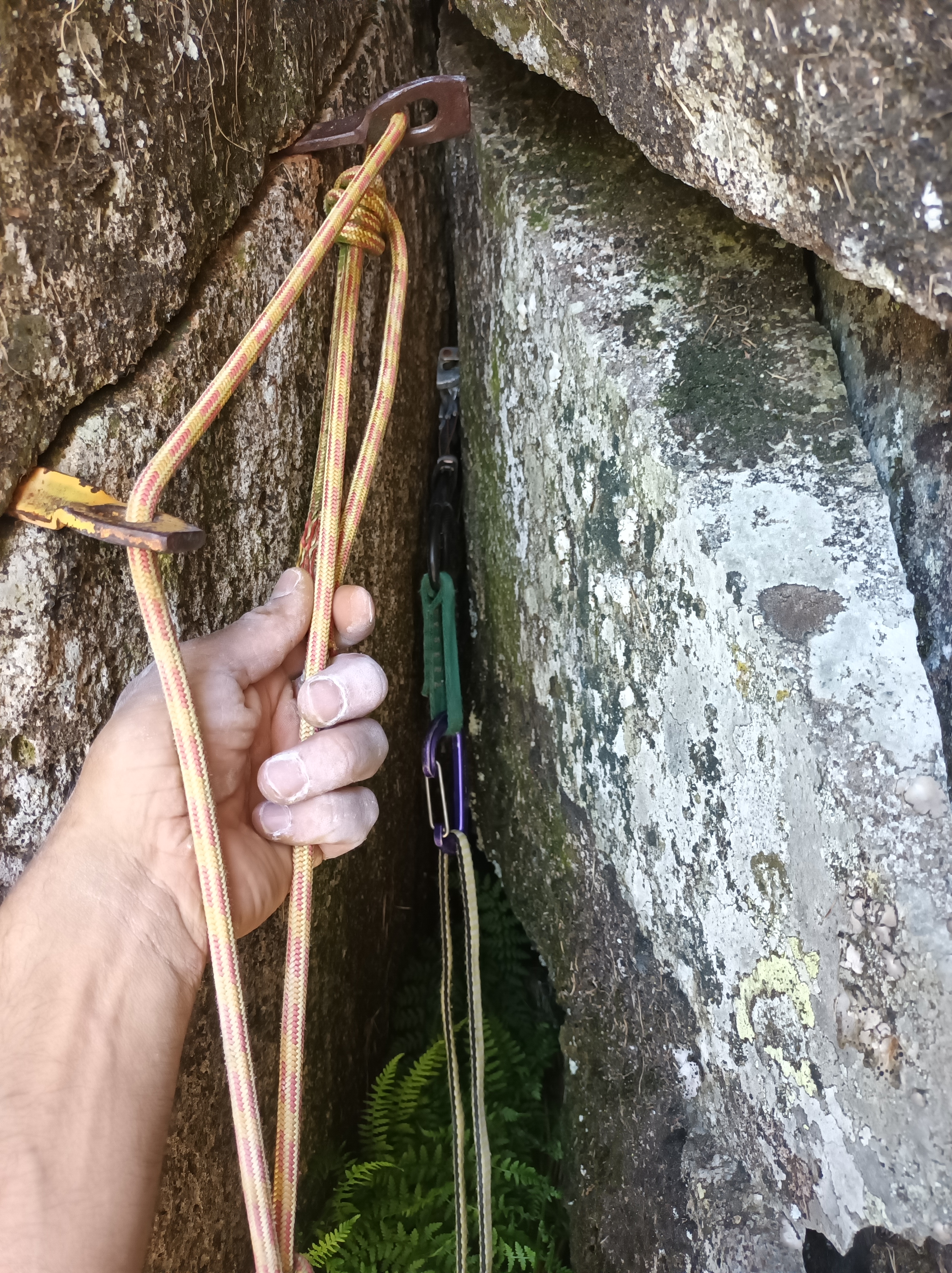 Desde esa reunión rapel de 20 metros (o destrepe de III) hasta la siguiente reunión.