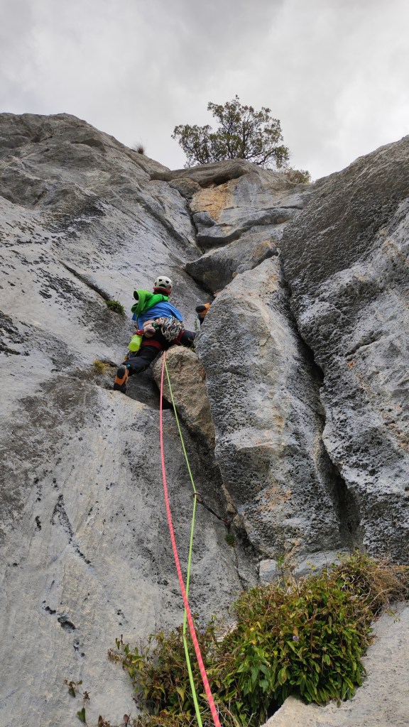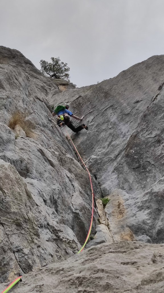 Largo 3, 6a (30 metros): Se trata de una canal que escalaremos en estilo diedro. Este largo también se encuentra libre de seguros expansivos.