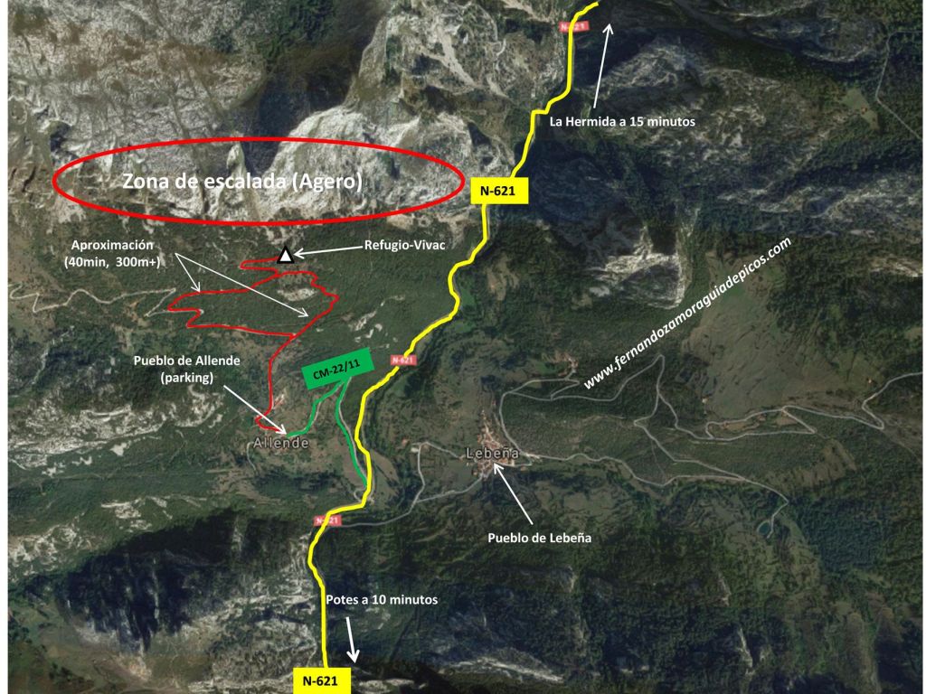 Aproximación: En la entrada de la pequeña localidad de Allende hay un aparcamiento para unos 8-10 vehículos desde el que iniciamos la aproximación.