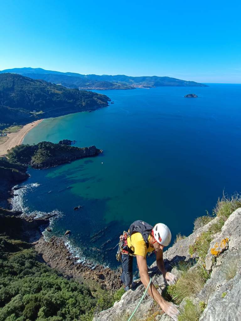 Pequeña gran aventura con unas vistas espectaculares. Una vía recia, que no tiene ningún parabolt en sus más de 300 metros de recorrido (apenas tiene 10 clavos y algún puente de roca) , en la que tendremos que realizar algún paso con pies en adherencia y con el último seguro debajo de ellos. Actividad muy alpina por su estilo de escalada y orientación (noreste). Grado ajustado, hay que tener en cuenta que se abrió en 1978, cuando no existía el 6º grado, por lo que algunos largos nos sorprenderán. La vía no es rapelable, lo que le añade compromiso a la actividad.